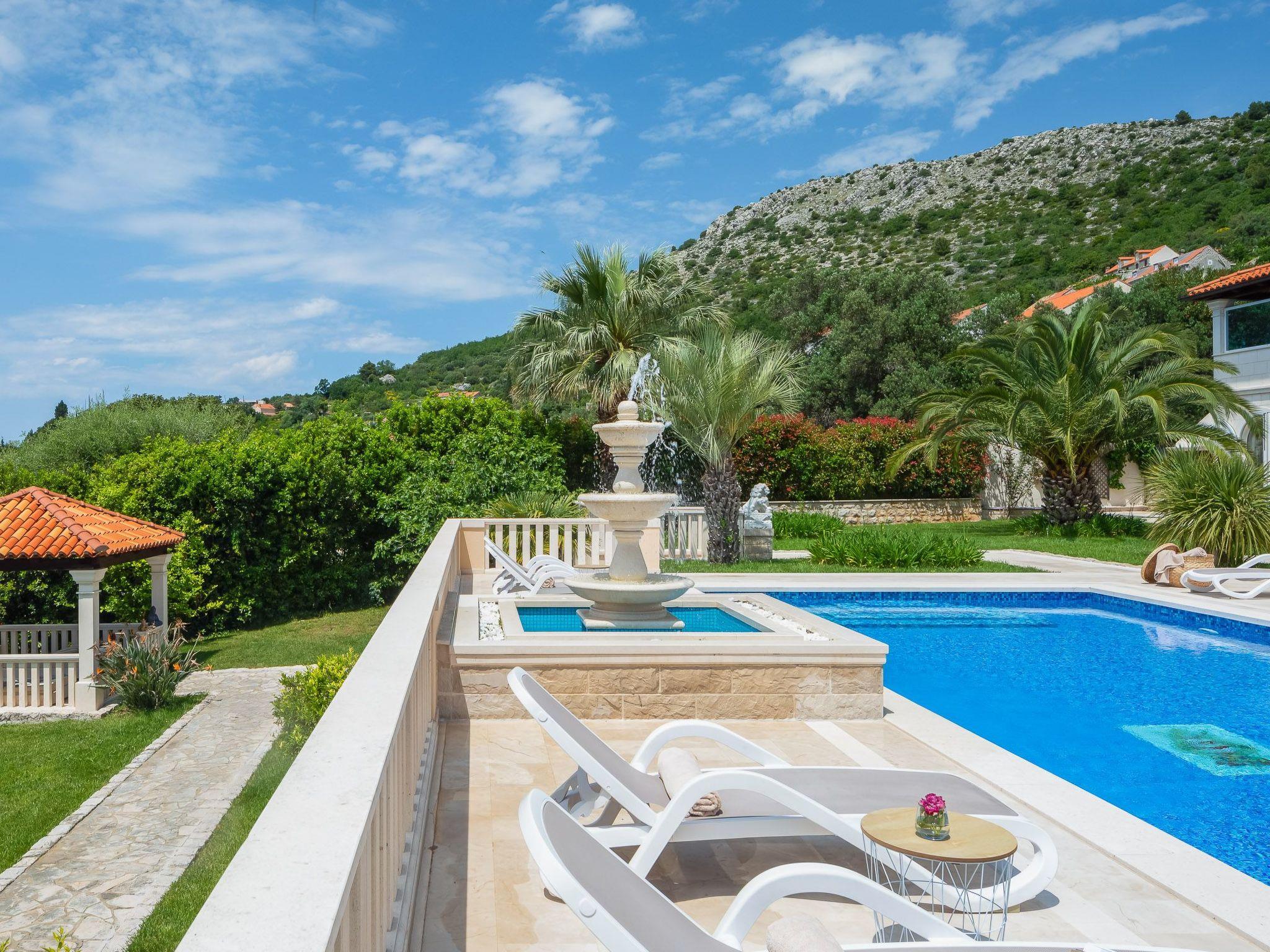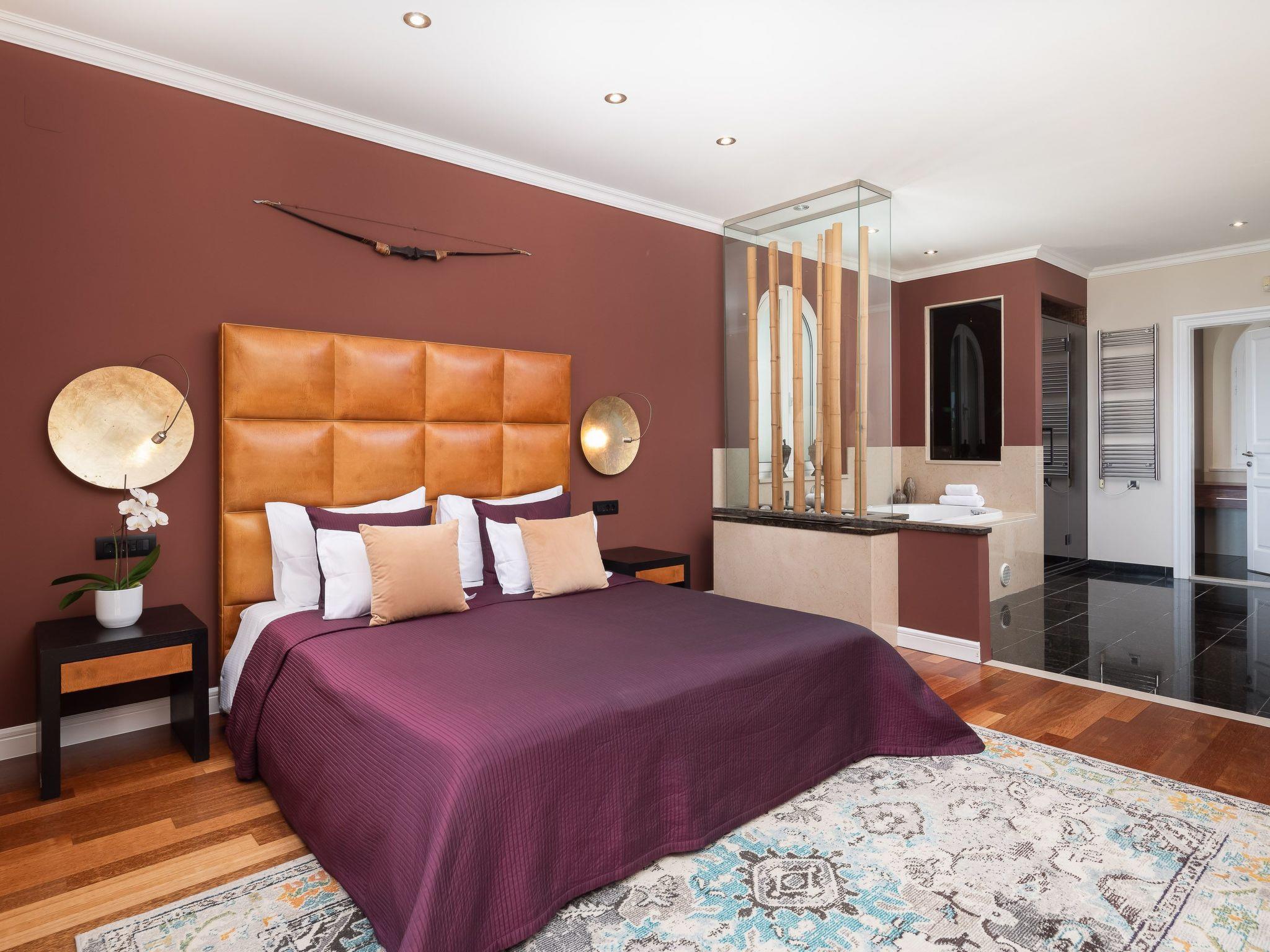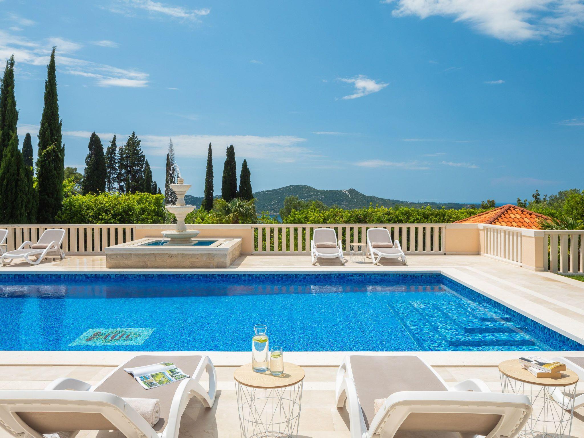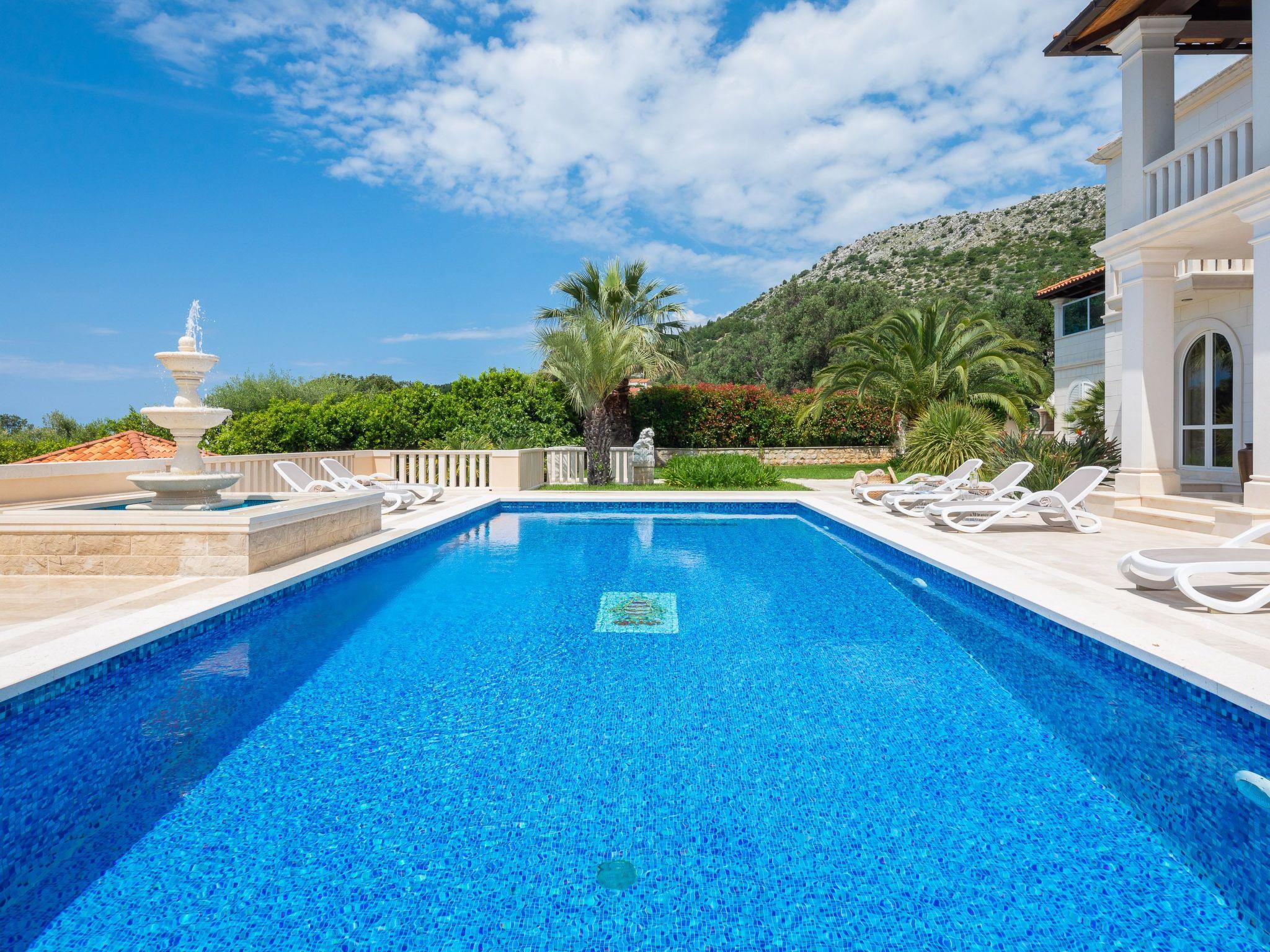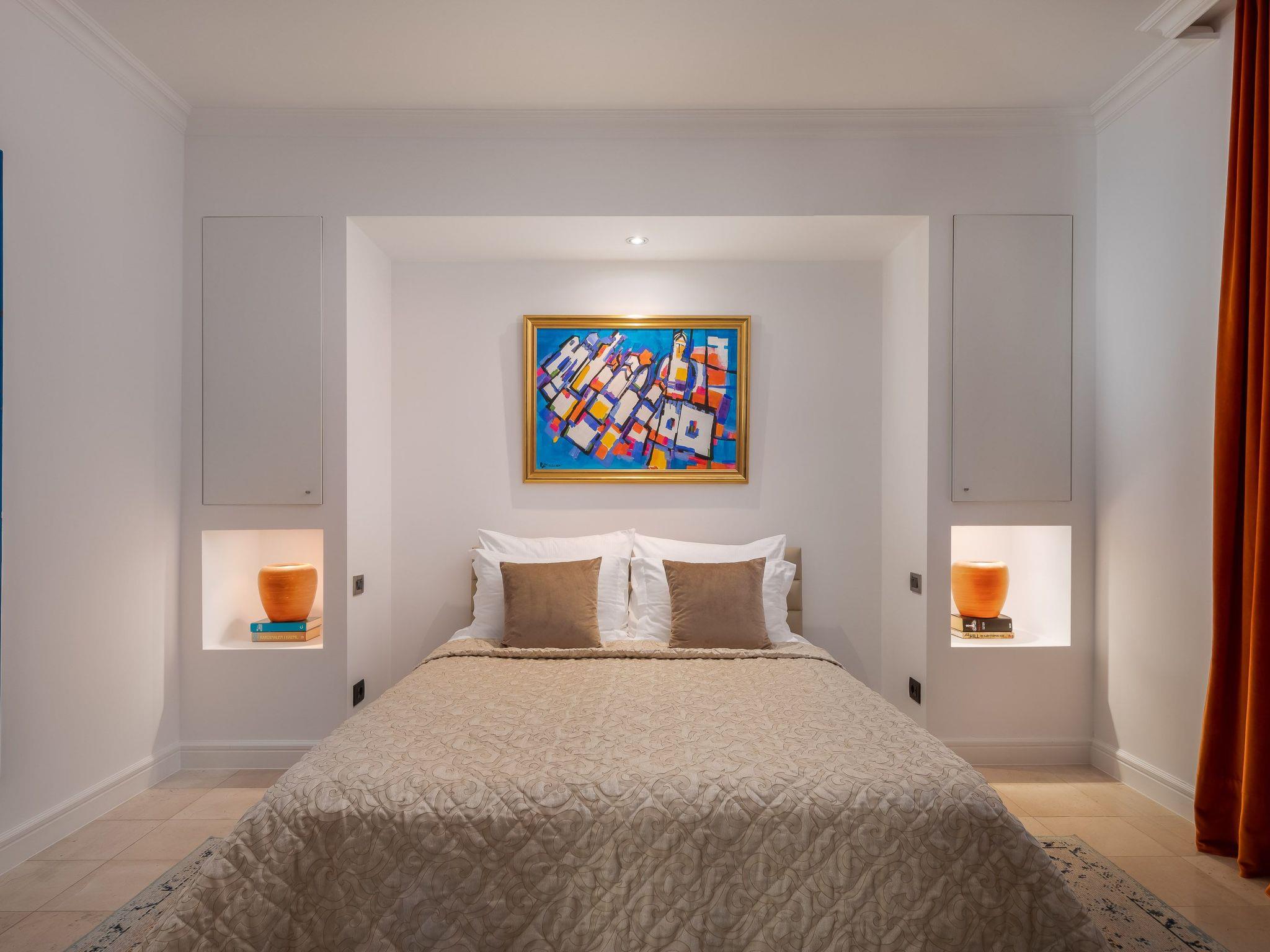 La Villa Dubrovnik offers breathtaking sea views, as well as a range of amenities to ensure complete relaxation and tranquility. Lounge by the large, heated private pool or enjoy the beautiful gardens, featuring a barbecue, fountain, and outdoor shower. The villa can accommodate up to 12 guests in 6 double rooms including 5 bathrooms. Five double rooms are in the main villa and one in the side annex. In the ground floor you can find three modern luxury rooms. One bedroom has an en suite bathroom with shower, while the other two share a bathroom with a tub. On the upper floor you can find two master bedrooms with a king size bed, a private bath with tub and shower, a walk-in wardrobe and a small balcony. To the side of the house, the villa annex holds the sixth accommodation unit including a bedroom with two twin beds which can be converted to a double and a bathroom. Our fully equipped kitchen is perfect for preparing gourmet meals. The villa also boasts high-speed Wi-Fi and a large flat-screen TV, ensuring you stay connected and entertained during your stay.