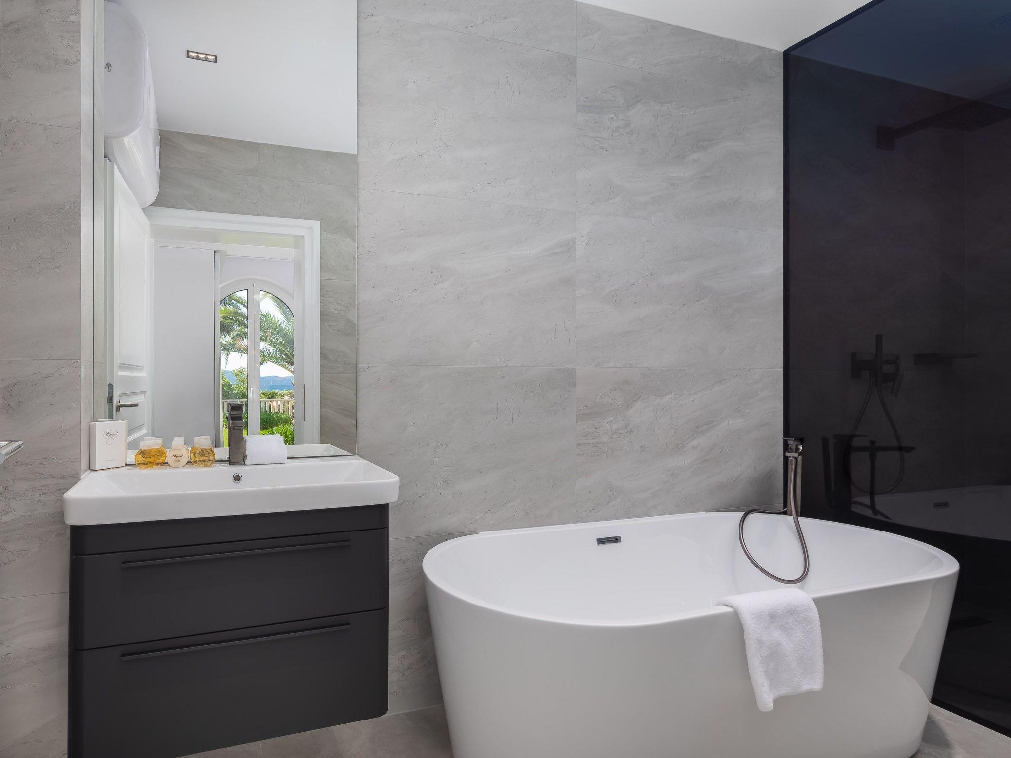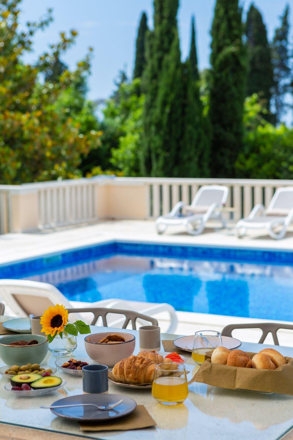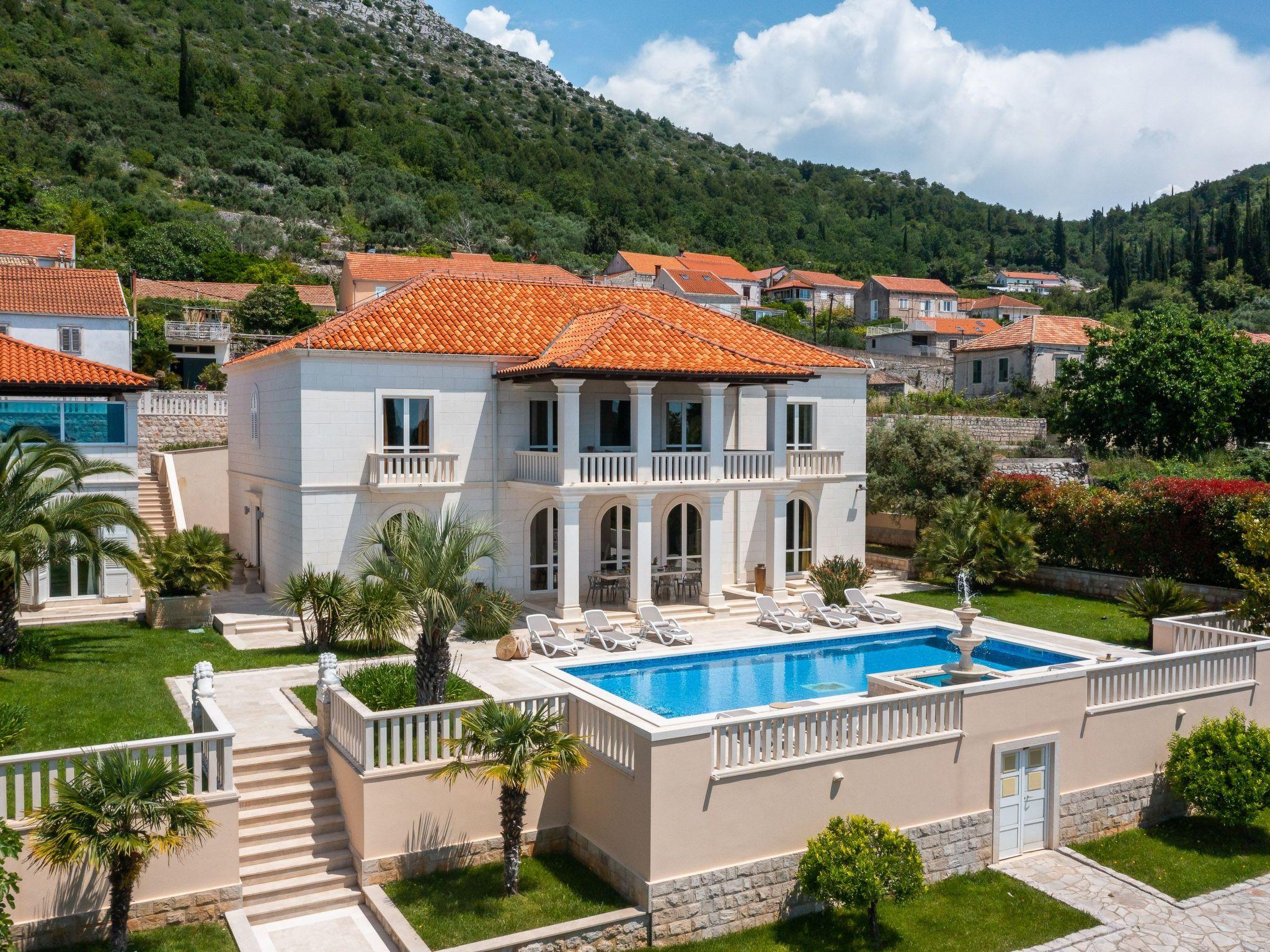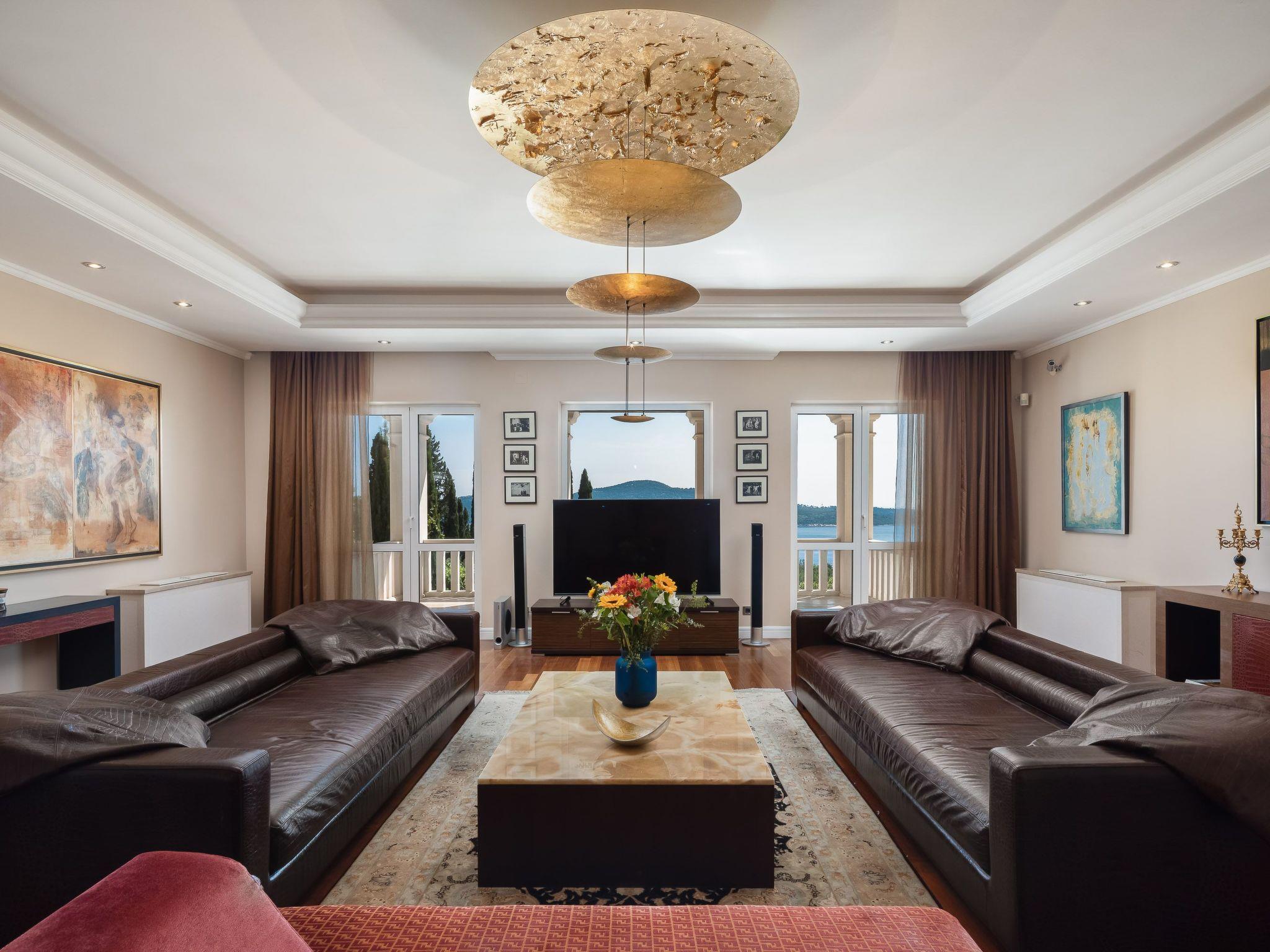 La Villa Dubrovnik offers breathtaking sea views, as well as a range of amenities to ensure complete relaxation and tranquility. Lounge by the large, heated private pool or enjoy the beautiful gardens, featuring a barbecue, fountain, and outdoor shower. The villa can accommodate up to 12 guests in 6 double rooms including 5 bathrooms. Five double rooms are in the main villa and one in the side annex. In the ground floor you can find three modern luxury rooms. One bedroom has an en suite bathroom with shower, while the other two share a bathroom with a tub. On the upper floor you can find two master bedrooms with a king size bed, a private bath with tub and shower, a walk-in wardrobe and a small balcony. To the side of the house, the villa annex holds the sixth accommodation unit including a bedroom with two twin beds which can be converted to a double and a bathroom. Our fully equipped kitchen is perfect for preparing gourmet meals. The villa also boasts high-speed Wi-Fi and a large flat-screen TV, ensuring you stay connected and entertained during your stay.