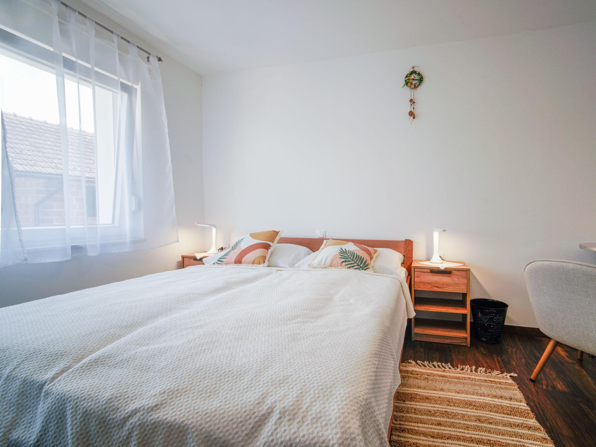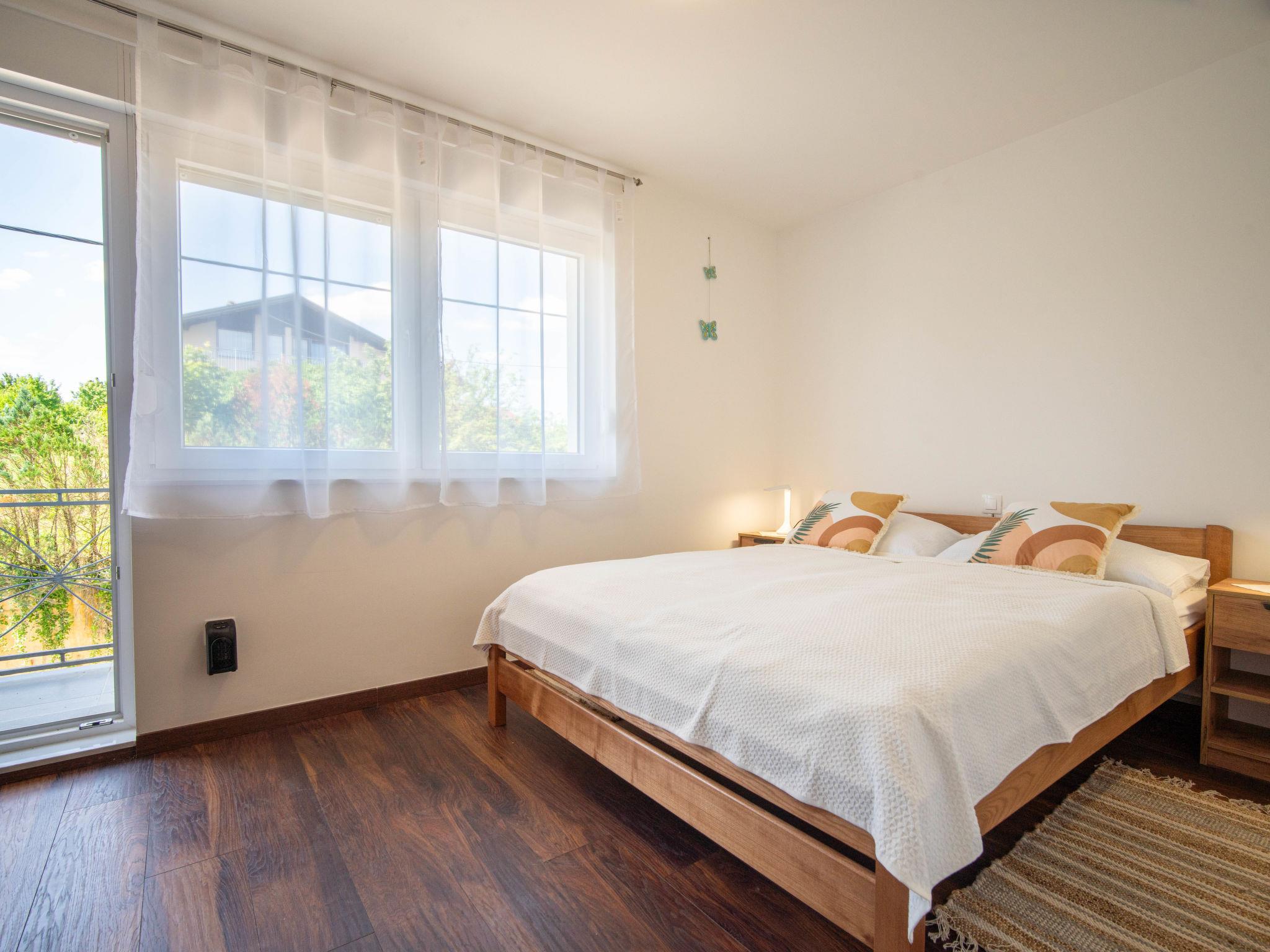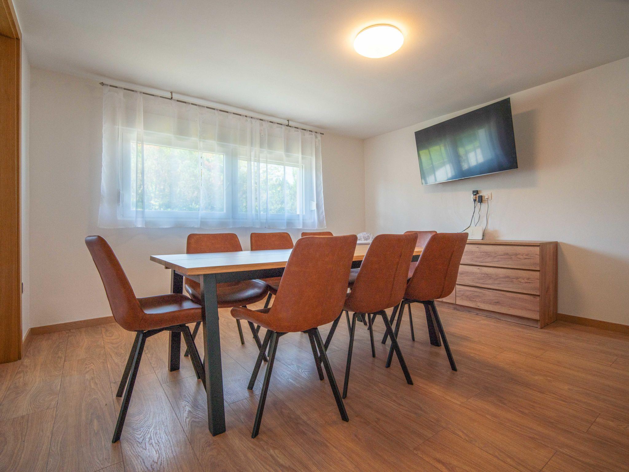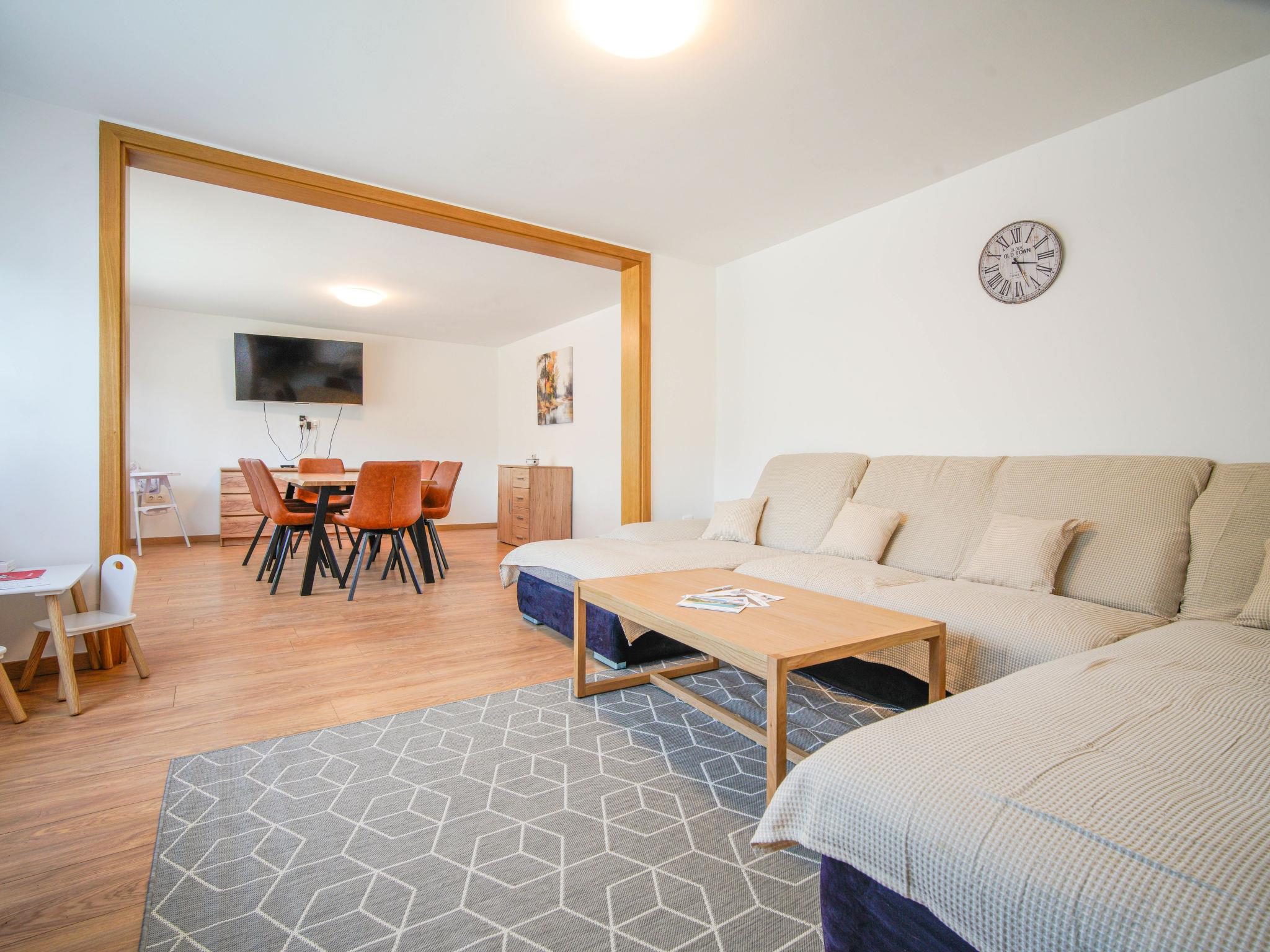 4-room house 140 m2 on 2 levels. Living/dining room with cable TV (flat screen), wood-burning stove. Open kitchen (oven, dishwasher, 4 ceramic glass hob hotplates, toaster, kettle, freezer, electric coffee machine). Shower/WC. Upper floor: 1 room with 1 double bed (2 x 80 cm, length 200 cm). 1 room with 1 bed (90 cm, length 200 cm), 1 double bed (2 x 80 cm, length 200 cm). 1 room with 1 double bed (2 x 80 cm, length 200 cm), shower/WC. Exit to the balcony. Shower/WC. Wood heating, forced-air heating. Small balcony 2 m2, balcony 4 m2. Balcony furniture. View of the countryside. Facilities: baby cot, hair dryer, logs (free). Internet (WiFi, free). Please note: non-smoking house. Maximum 1 pet/ dog allowed. Fire extinguisher.