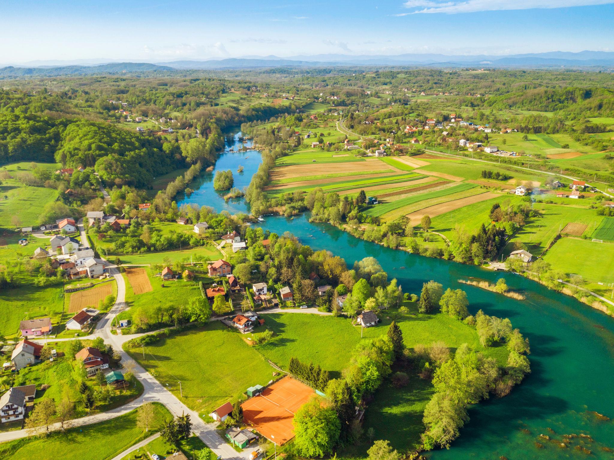 Belavici: Comfortable single-family house "Golub", 2 storeys, renovated in 2025. 4.3 km from the centre of Duga Resa, 14 km from the centre of Karlovac, 100 km from the sea, 1 km from the river, located by a road. Private: property 350 m2 with lawn 40 m2 flowers. Hot tub, pergola (20 m2), barbecue. In the house: internet access, washing machine, tumble dryer. Parking (for 4 cars) at the house on the premises. Supermarket 650 m, restaurant 600 m, bus stop, railway station 500 m. Nearby attractions: Old Town Bosiljevo 23 km, Old town Novigrad na Dobri 13 km, River Mrežnica 1 km. Please note: suitable for families. The owner lives on the same property.