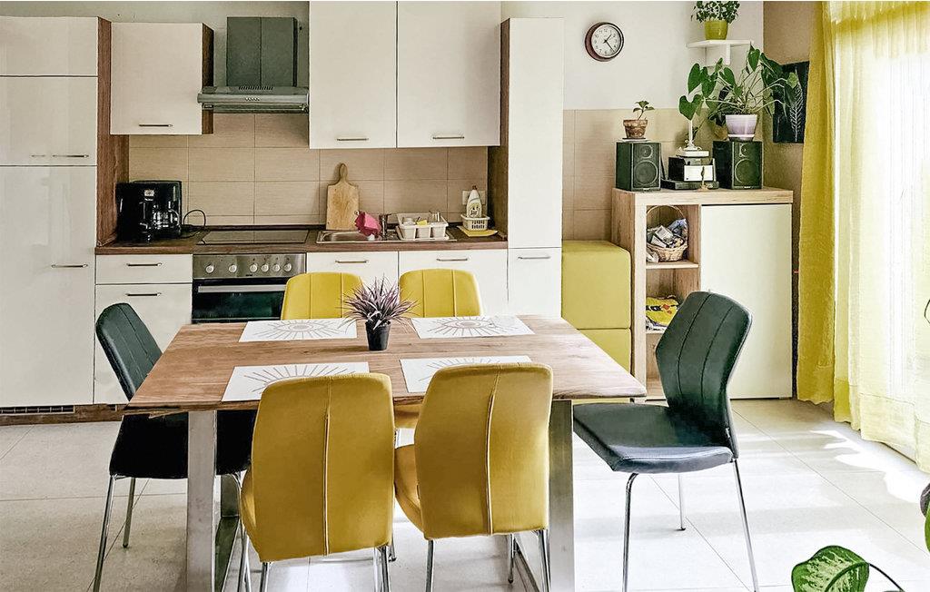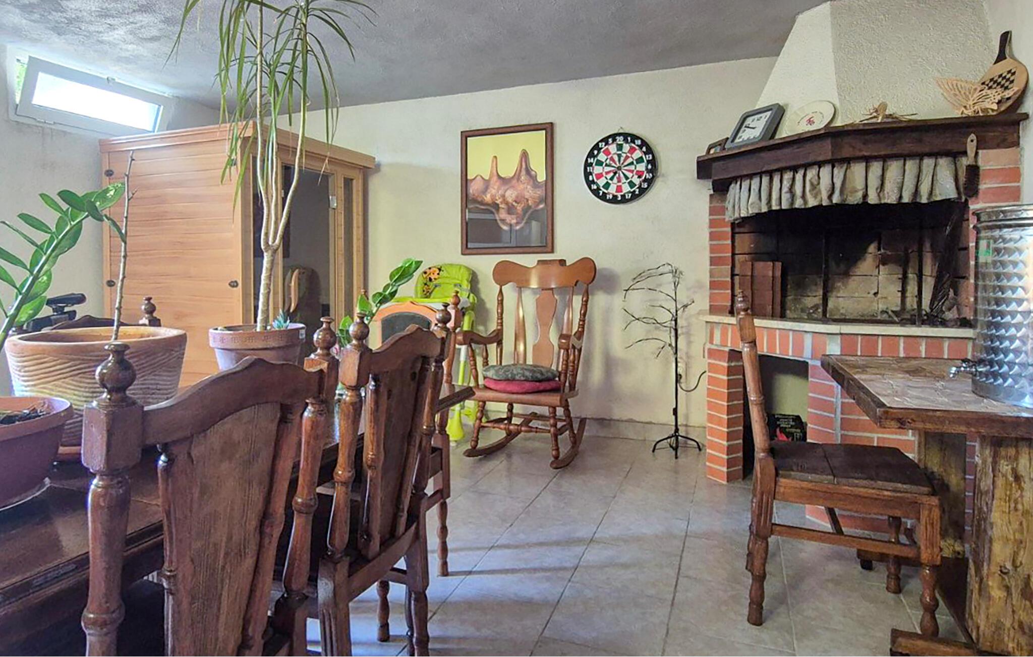I dette indbydende feriehus kan I glæde jer til en rolig beliggenhed og en magisk udsigt over landskabet. De livlige farver og den hjemlige indretning gør det nemt for jer at slappe af fra dag ét. Her kan I nyde jeres måltider sammen med en smuk udsigt til det fri og glæde jer til mange hyggelige aftener i aktivitetsrummet, hvor I blandt andet kan udfordre hinanden til et slag dart. Og skal I gøre det rigtig lækkert for jer selv, kan I svede bekymringerne ud i saunaen.