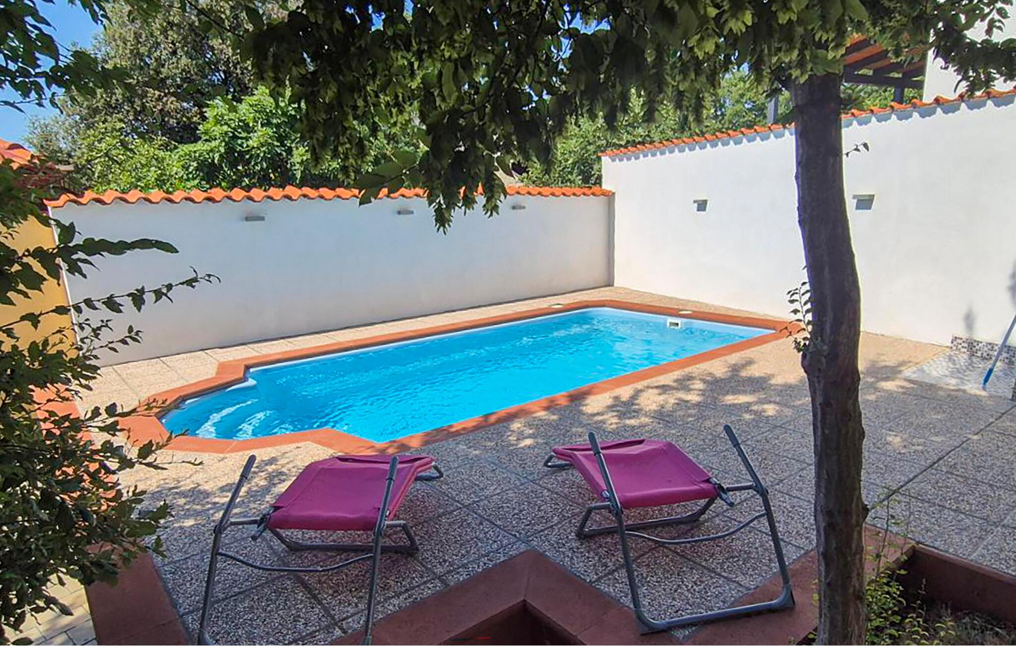 I kan tage nogle friske dyp i poolen og slappe af i liggestolen; senere kan I runde en dejlig dag af med et lækkert måltid fra grillen.