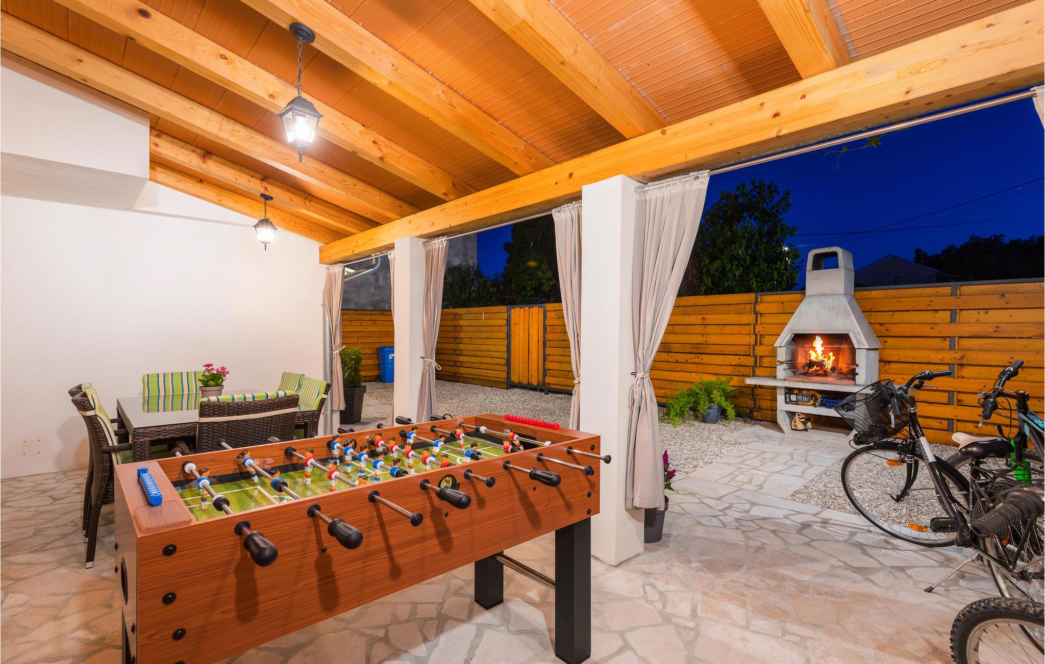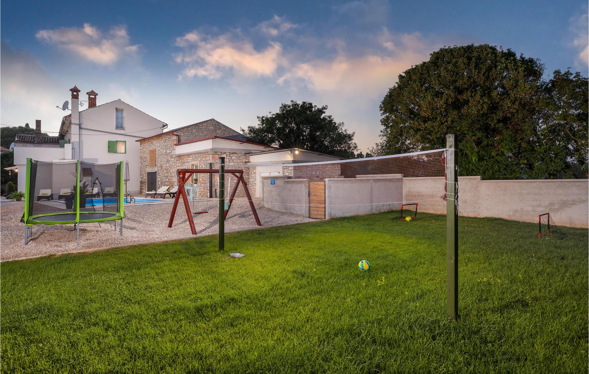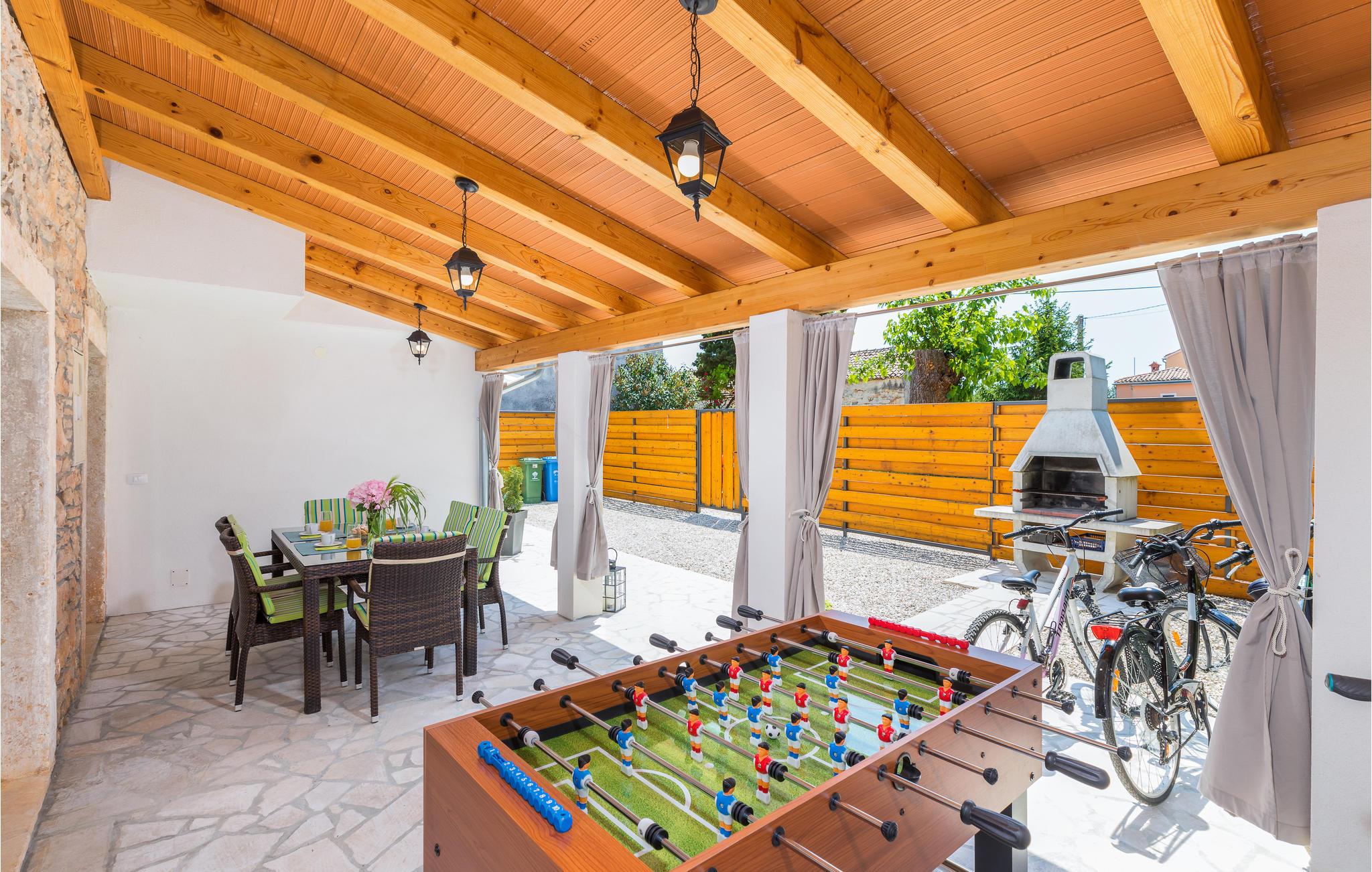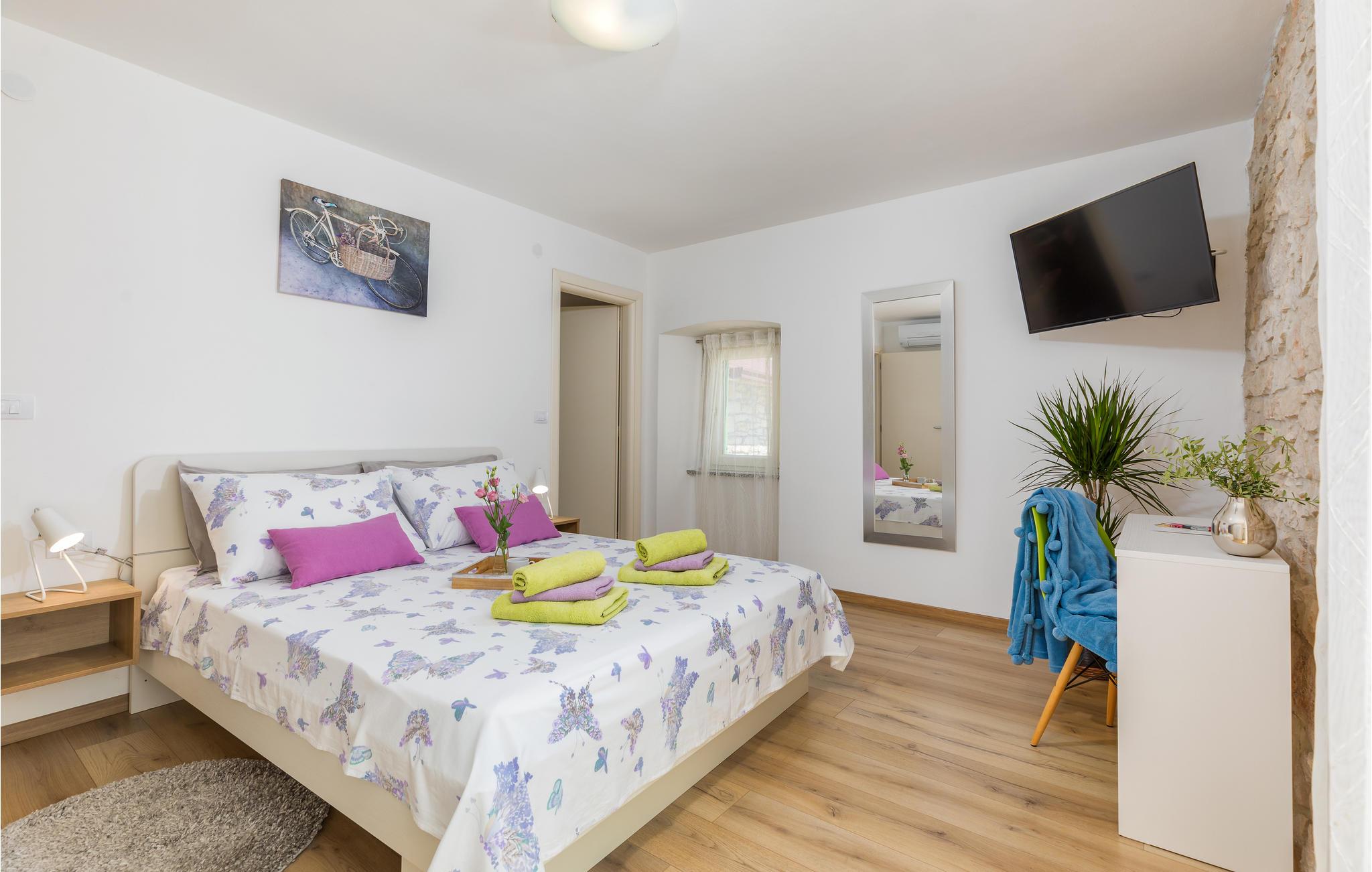 Hold jeres velfortjente ferie i den lille by Jovici i dette skønne feriehus med pool. Dette indbydende indrettede indre består af to soveværelser med egne badeværelser på øverste etage, mens stuerne ligger i stueplan. Herfra er der dør ud til den overdækkede terrasse med grill, som sikkert vil blive der, hvor I opholder jer mest. Det er skønt at hoppe i poolen når det er rigtigt varmt. I den indhegnede have er der legeplads hvor børnene kan få mange timer til at gå. Der er skønne strande i byen Peruski, desuden ligger den populære turistby Duga Uvala kun få minutter væk i bil. Aktive feriegæster bør benytte den korte afstand til adrenalinparken Glavani hvor der venter flere underholdende forlystelser, ligesom I kan tage på rideture på Ranch Barba Tone eller køre quad MC i Draguzeti.