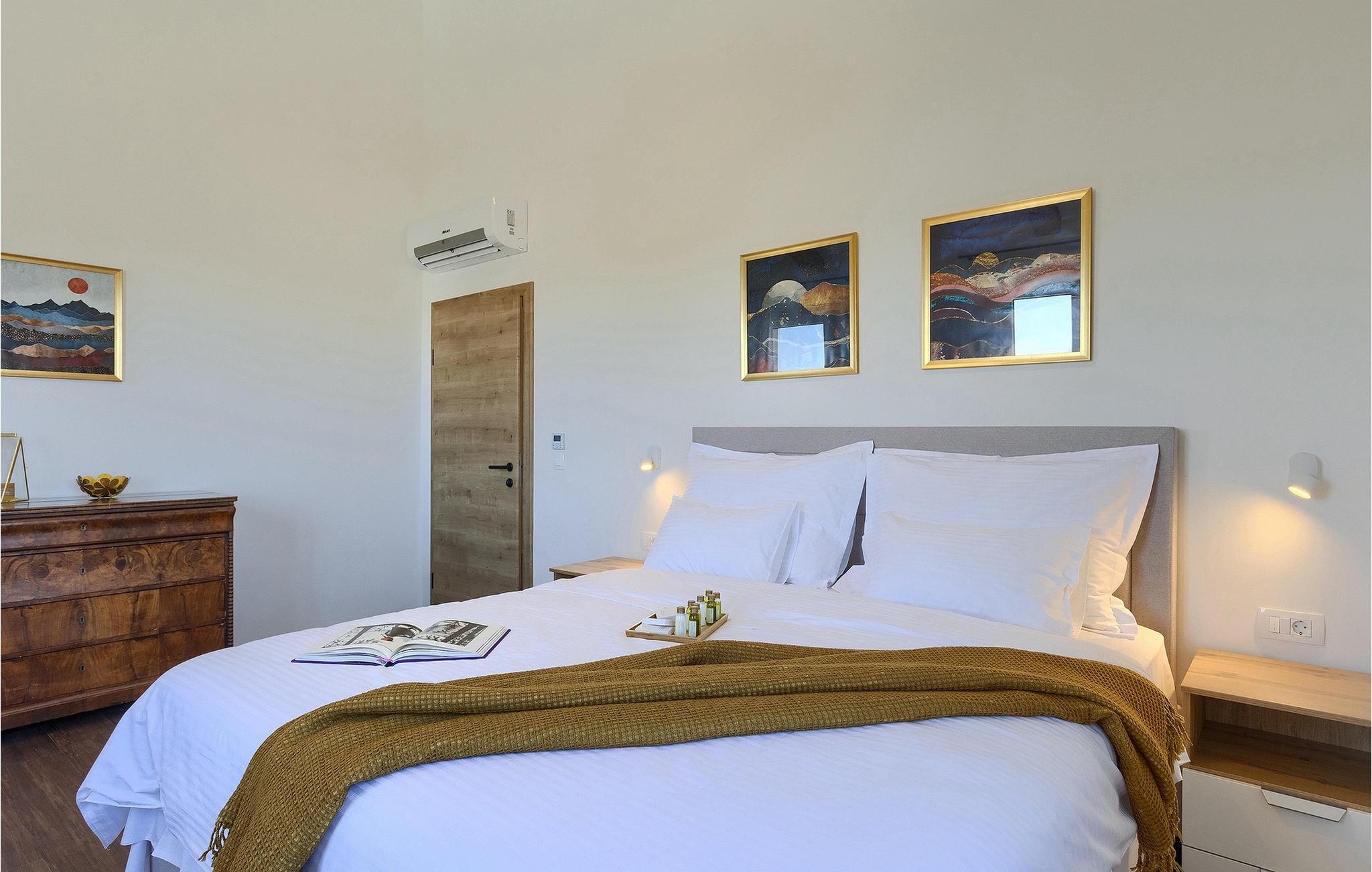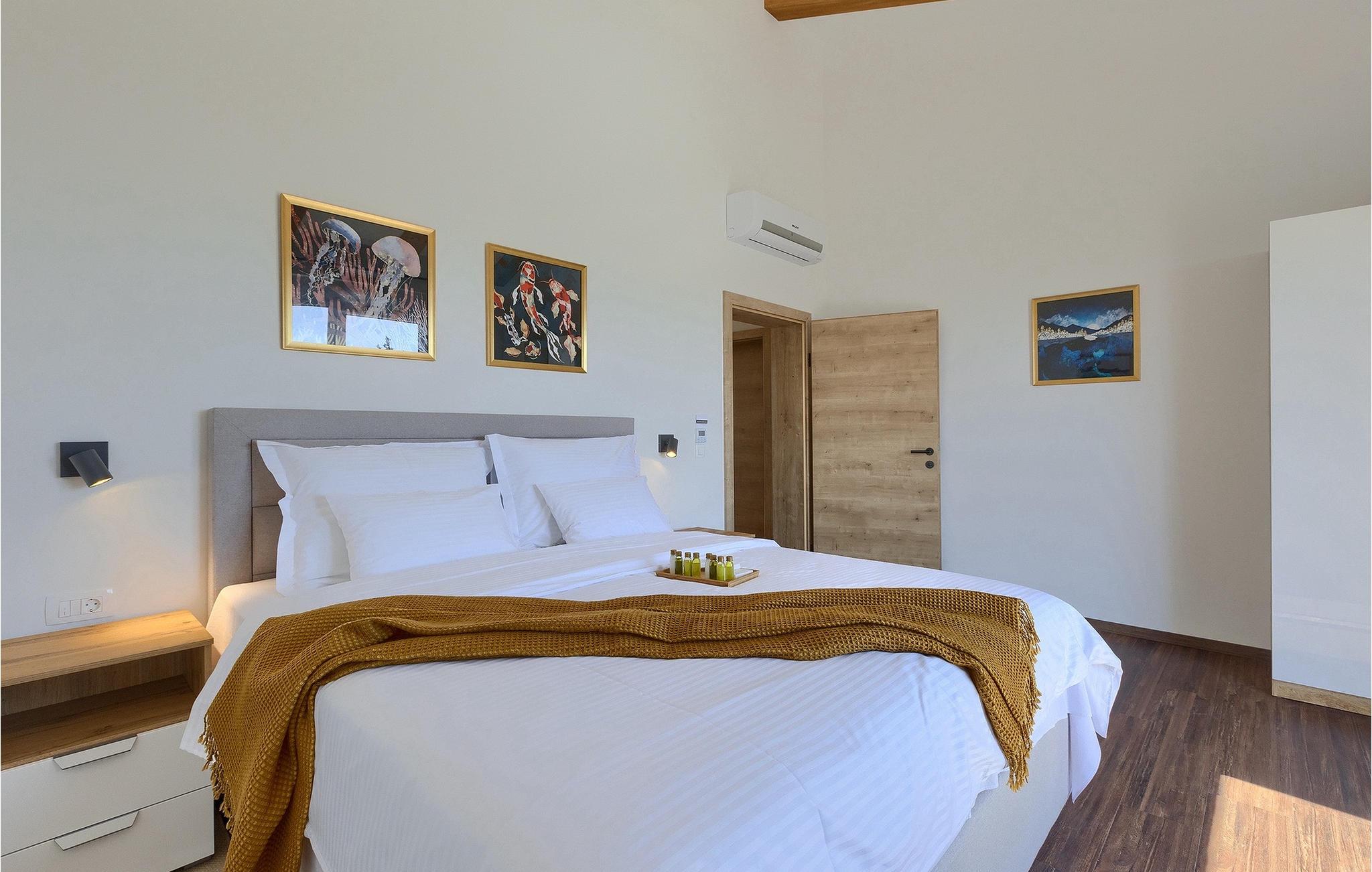 Villa Dolce Bacio er en drømmevilla i en idyllisk beliggenhed, der tilbyder dig den komfort, ro og privatliv, du leder efter! Dette luksuriøst indrettede hus ligger på en grund på 2000m2, kun 1 km i luftlinje fra havet. Så snart du træder ind i ejendommen, venter den omhyggeligt plejede have dig med sin store pool, som på magisk vis vil tiltrække dig med sit turkisblå vand. Her finder du den nødvendige forfriskning på varme sommerdage og du vil helt sikkert hygge dig med dine nærmeste. Liggestole og en solseng med baldakin inviterer dig til at slappe af og solbade. Den rummelige, overdækkede terrasse er det perfekte sted at grille med familie og venner, tilberede lækre måltider og derefter nyde dem sammen ved det store udendørs spisebord. Afslut dine milde sommeraftener med et glas af din yndlingsdrink i den hyggelige lounge med udsigt til poolen og det omkringliggende område.
