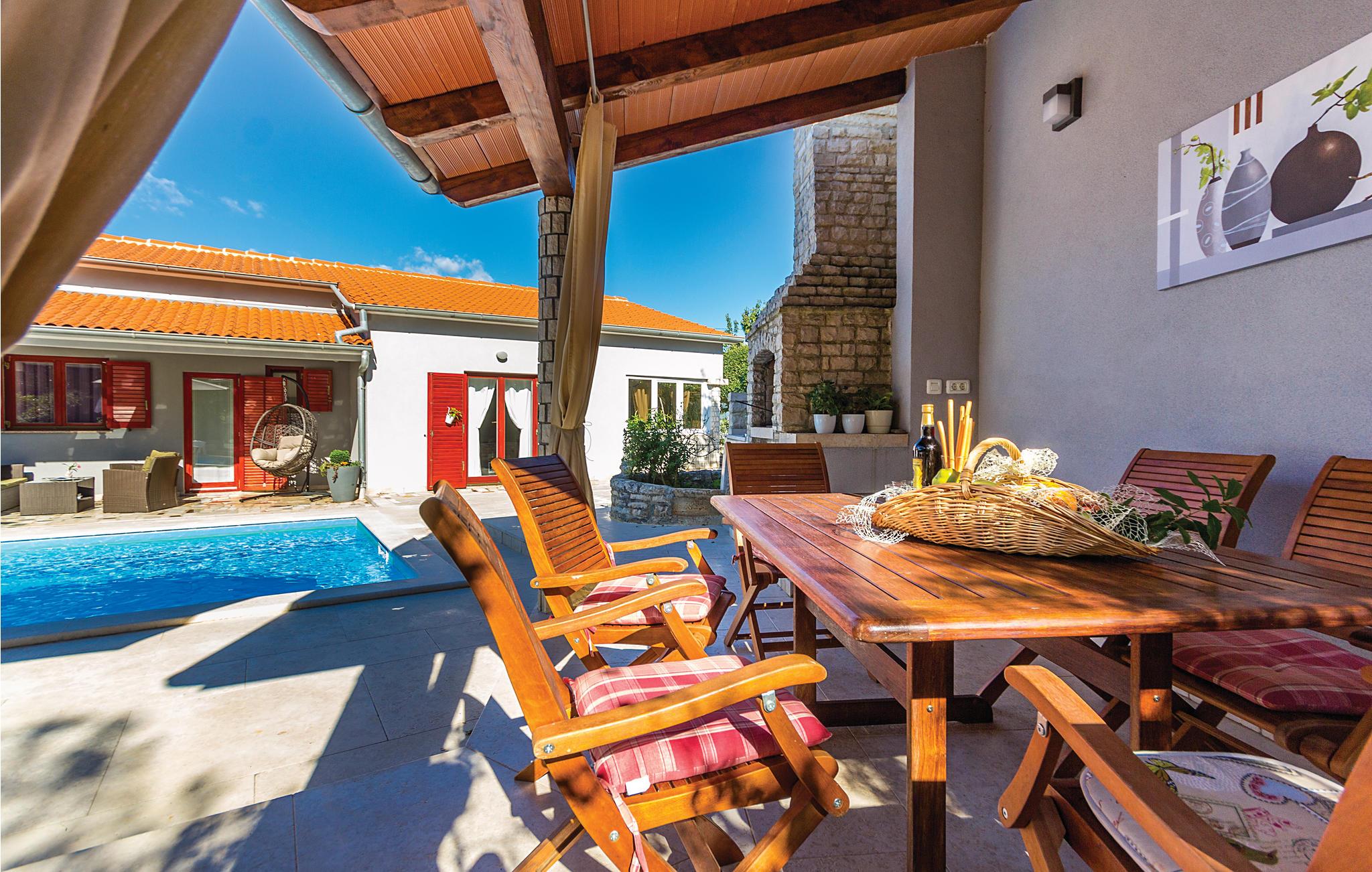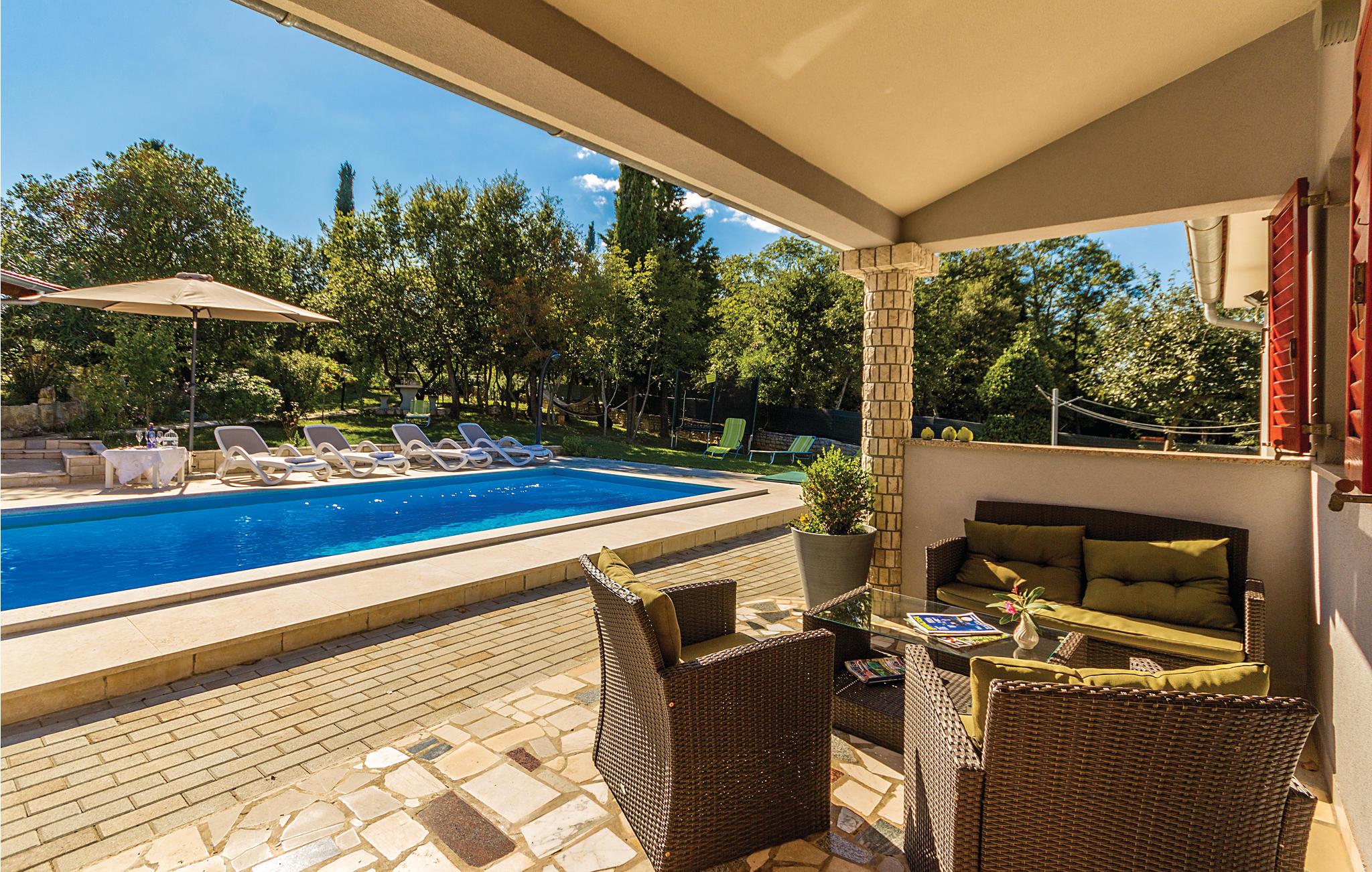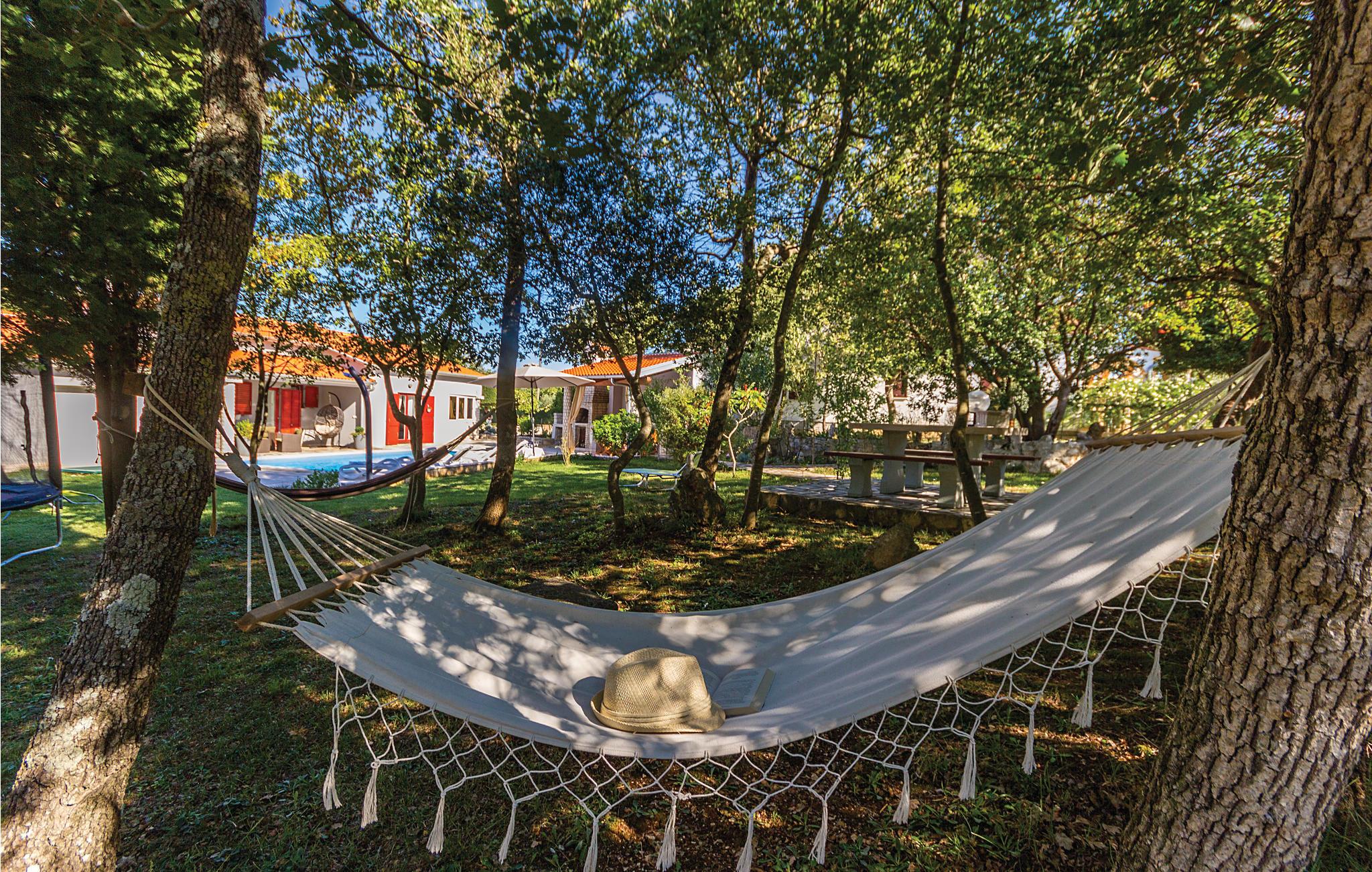I den velplejede have kan dine børn lege ubekymret og have det sjovt udendørs. Her er der underholdning med blandt andet trampolin, gynger og bordtennis. Feriehusets interiør er veludstyret og behageligt, ligesom de to terrasser, hvor I komfortabelt kan drikke jeres morgenkaffe eller et glas vin om aftenen. I kan finde forfriskninger fra sommervarmen i poolen eller på en af ??de smukke strande i Duga Uvala.