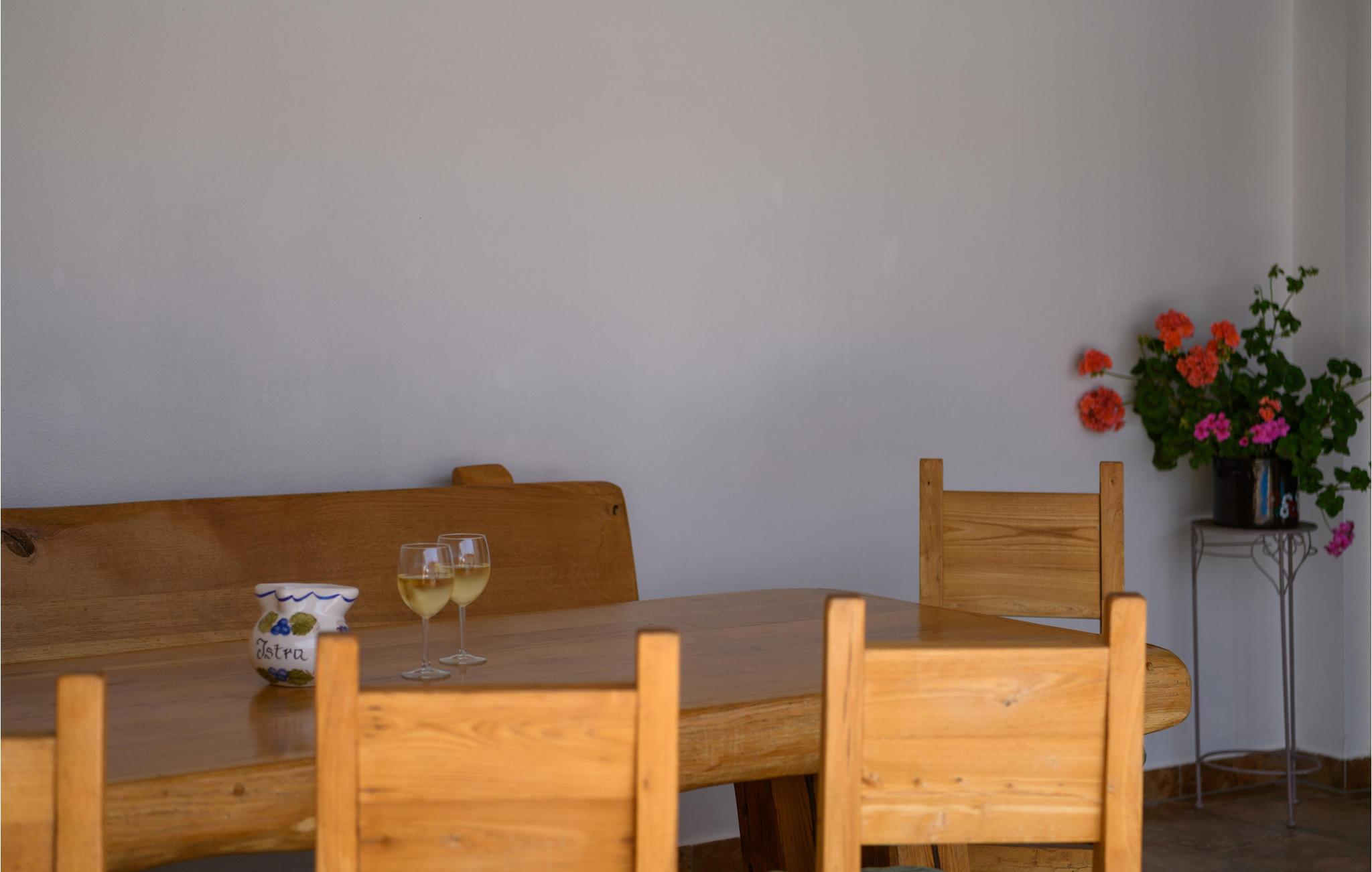 I den lille by Peruški, i det sydlige Istrien, ligger dette traditionelle istriske hus, ført op til nutidens krav til komfort. Huset er indrettet omhyggeligt helt ned i de små detaljer, med tanke på jeres behagelige ferie. På den indhegnede grund er der en pool til en forfriskende svømmetur og den overdækkede terrasse er ideel til måltider med mad frisk fra grillen. De nærmeste strande ud til det krystalklare hav, ligger i selve byen, hvor der er dejligt fredeligt. Besøg den historiske by Pula, der vil fortrylle jer, med sine utallige romerske seværdigheder, men besøg også de mange andre feriebyer Istrien.