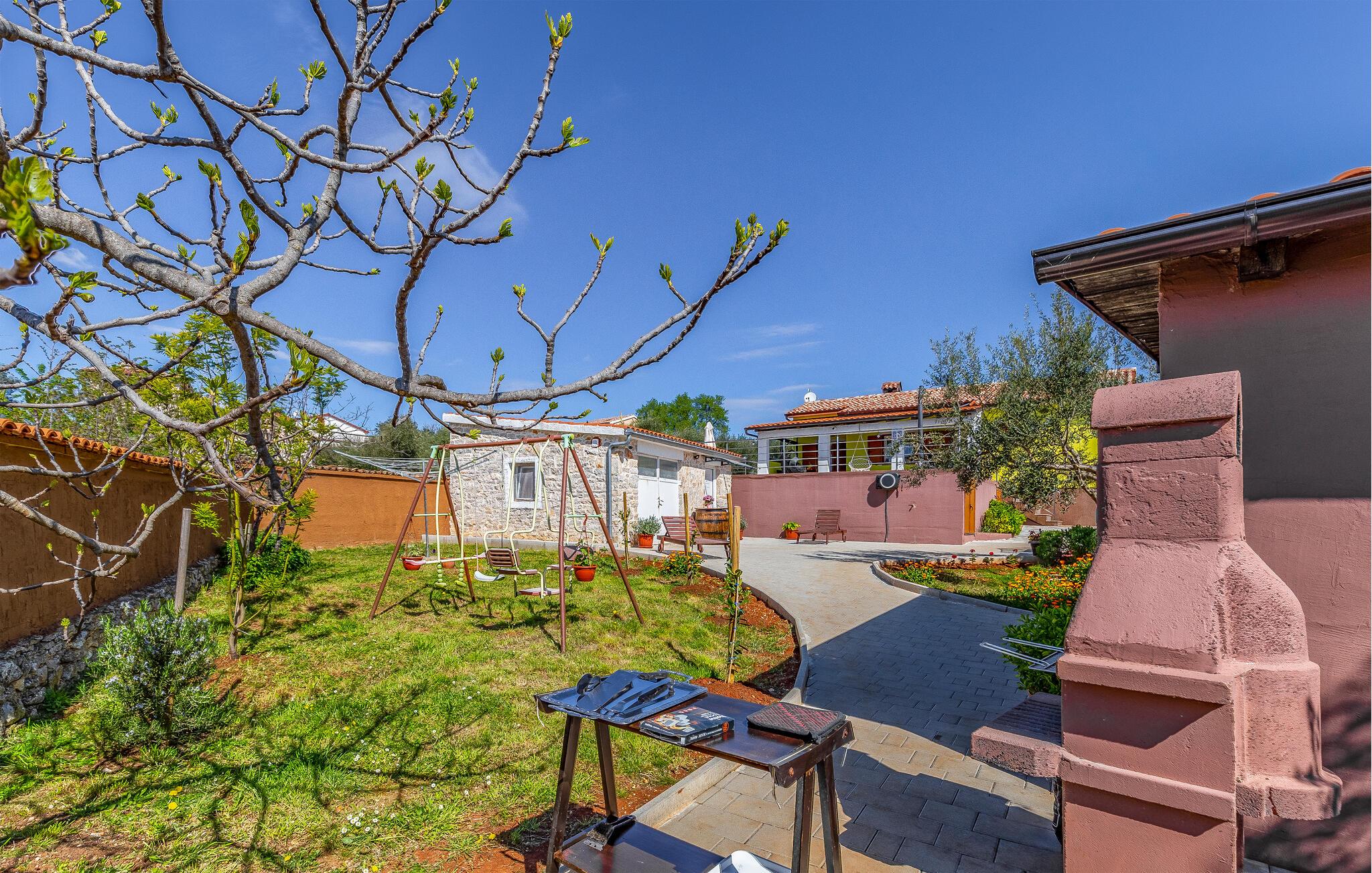 Dette skønne feriehus er beliggende i Peruški, en rolig Middelhavslandsby ved Istriens østkyst. Ikke langt fra huset findes mange naturstrande, mens I finder de rigtig flotte strande i den nærliggende ferieby Duga Uvala. Husejeren har sørget for, at de yngste gæster har mange aktiviteter såsom en trampolin, rutsjebane og gynge mens de voksne tilbereder måltiderne med grillede lækkerier.