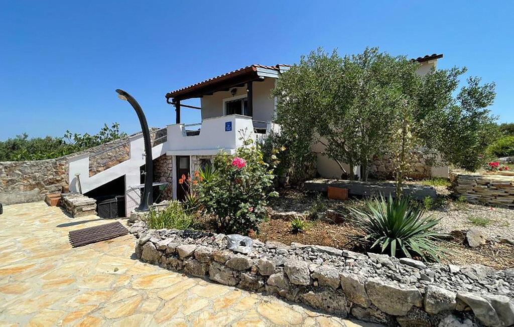 Udenfor finder I en have i middelhavsstil med terrasser, liggestole og en overdækket spiseplads. Slap af i hængestolen, nyd udsigten over det krystalklare hav og lyt til naturens lyde. Det omkringliggende landskab med oliventræer og stenmure tilbyder en idyllisk atmosfære til rolige timer.