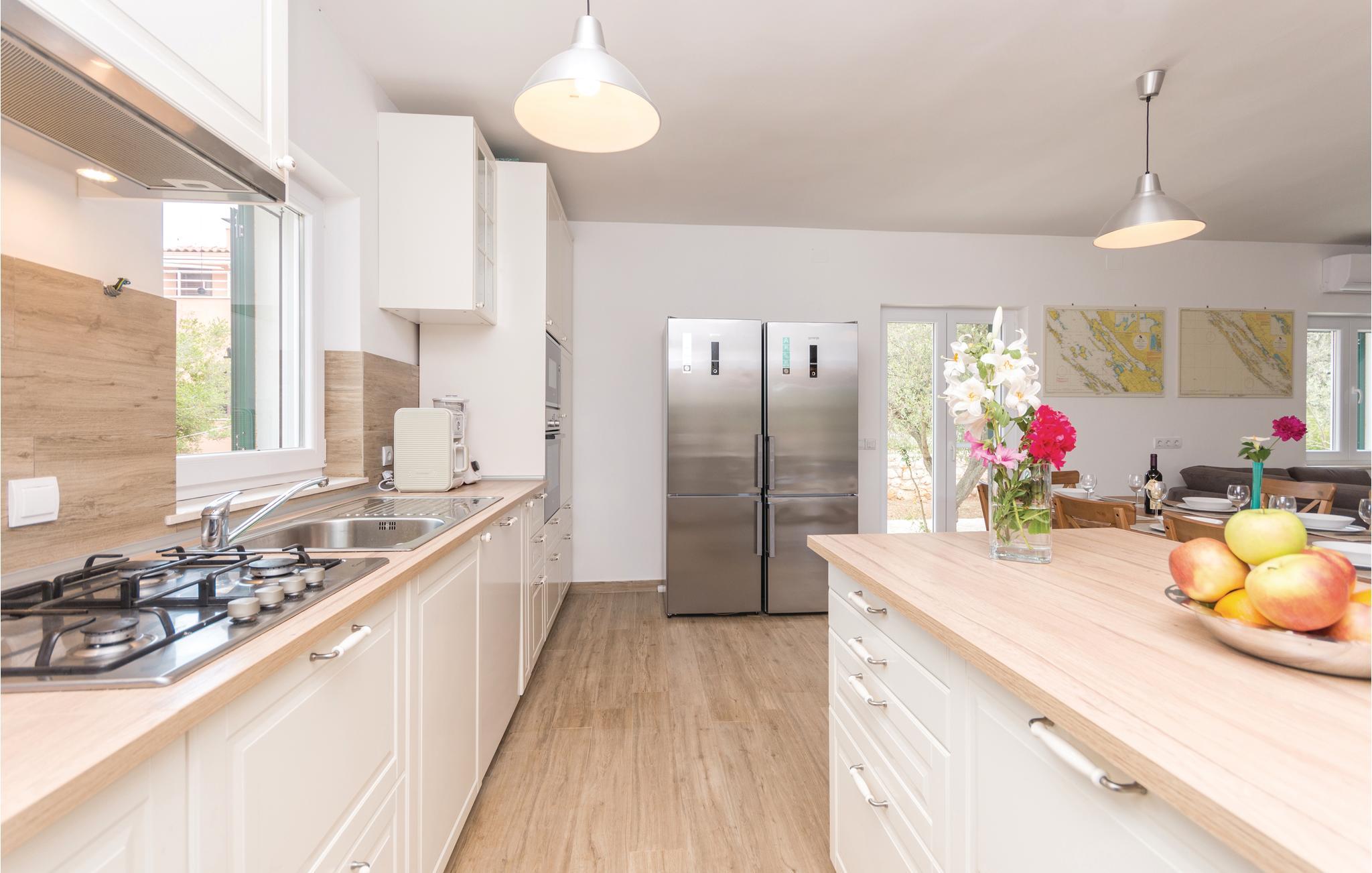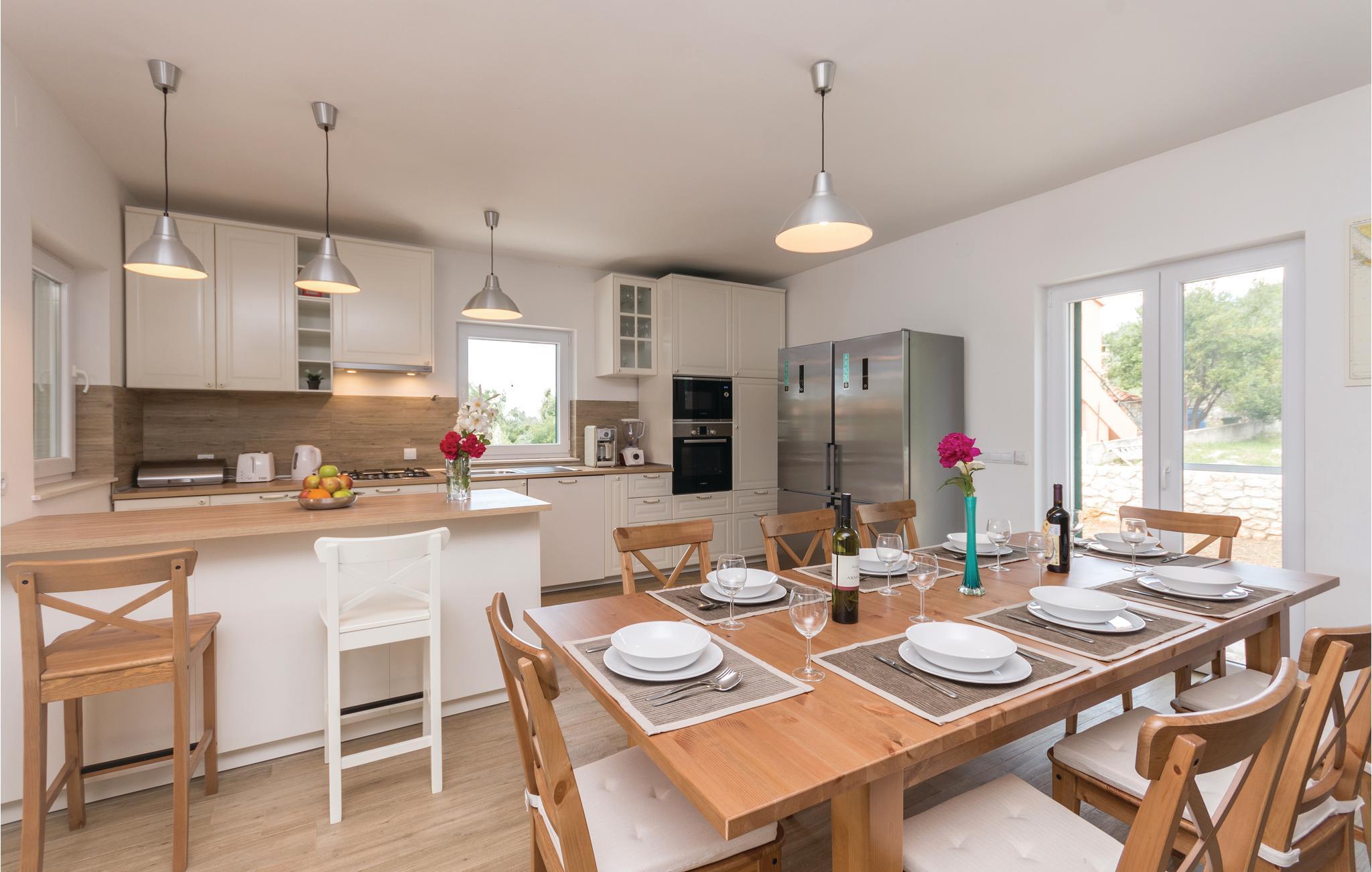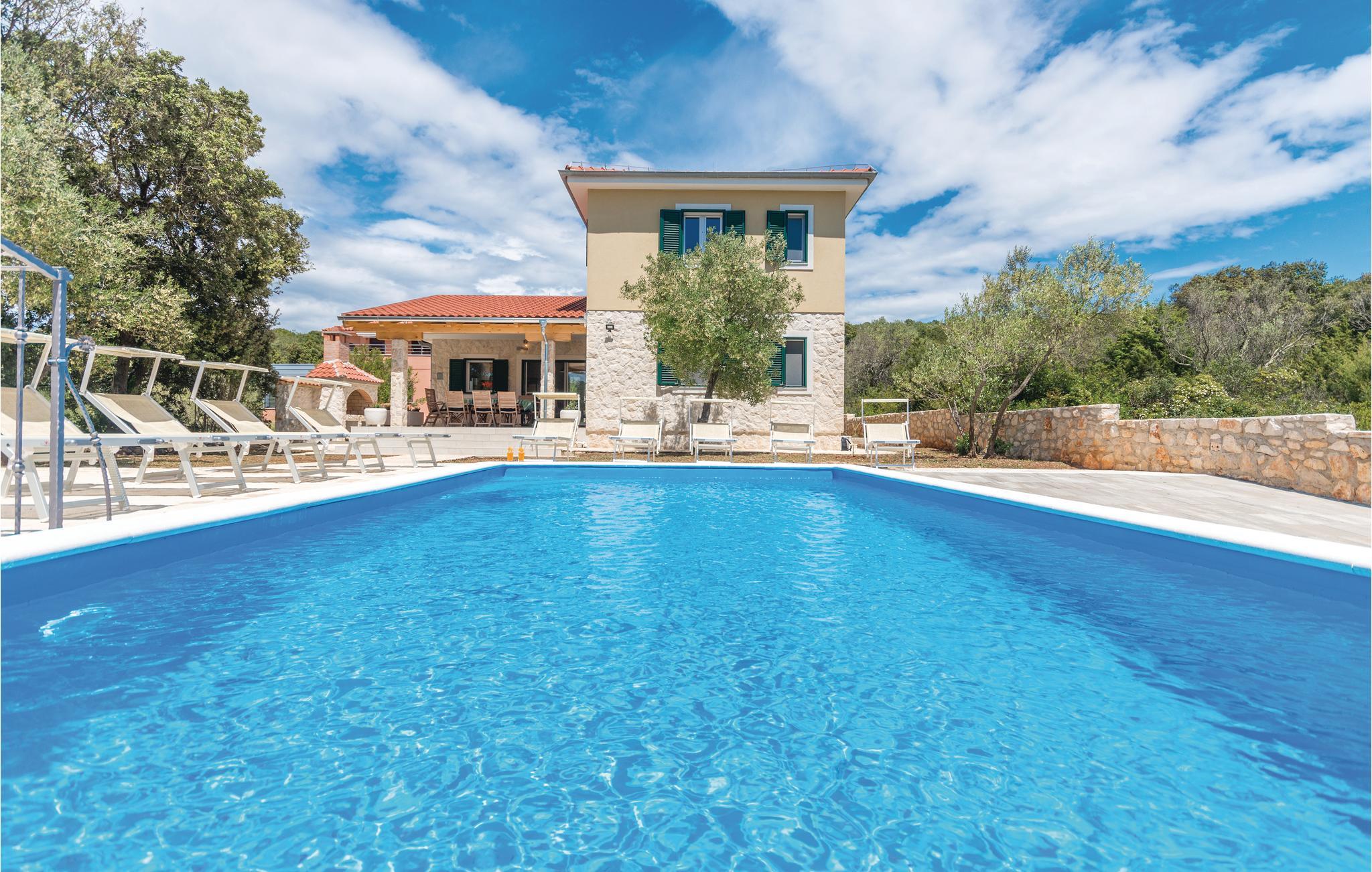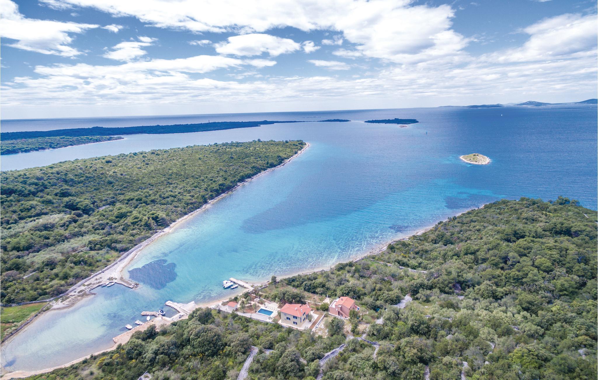 Dette skønne feriehus med pool ligger lige ud til havet, på en indhegnet og frodig grund. Nærmeste nabo ligger ca. 20 m væk. Huset rummer fem soveværelser, køkken og spisestue og er et rent ferieparadis, til alle, der gerne vil slappe af og glemme alle hverdagens problemer. Nyd at bo tæt på havet og i komfortable omgivelser. Dugi Otok er en af de skønneste øer i Adriaterhavet. Sandstranden Sakarun, som indbyder til en dejlig badedag, ligger kun ca. 1,8 km fra huset. Besøg også naturparken Telašcica med unik flora og fauna. Gå på opdagelse og find jeres helt egen fredelige badebugt.