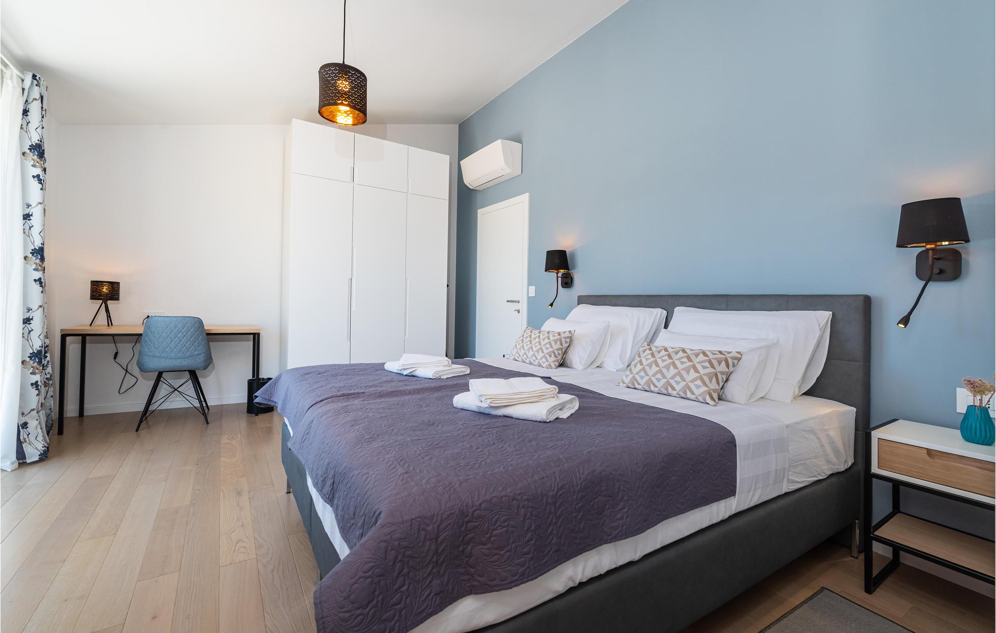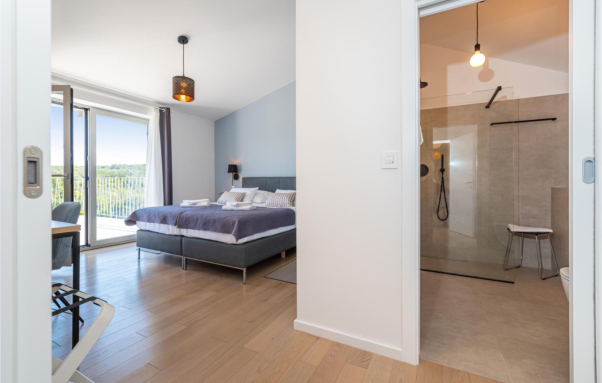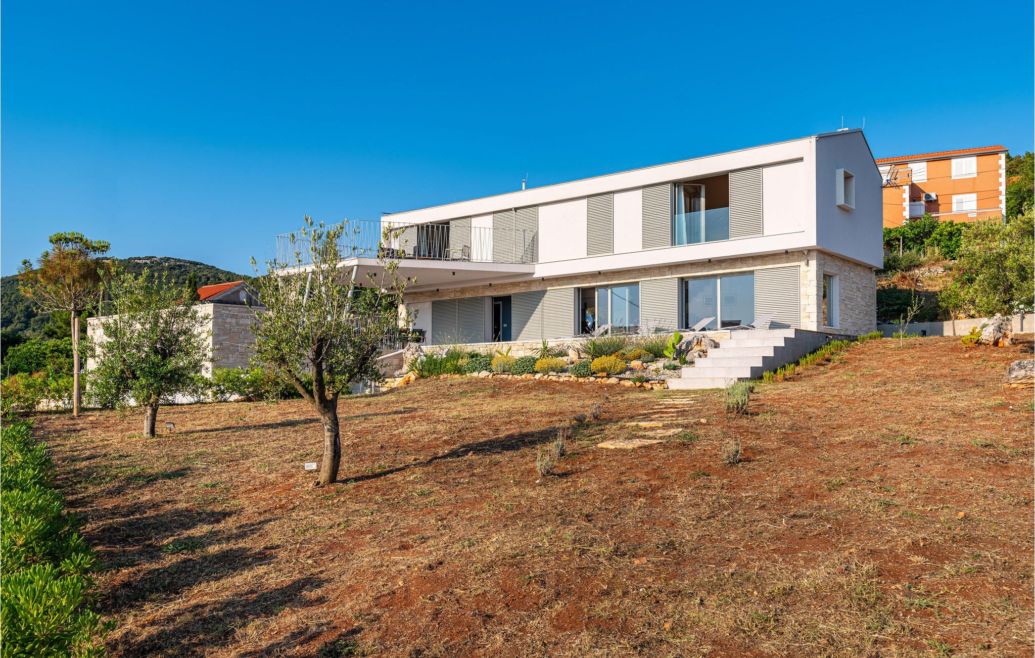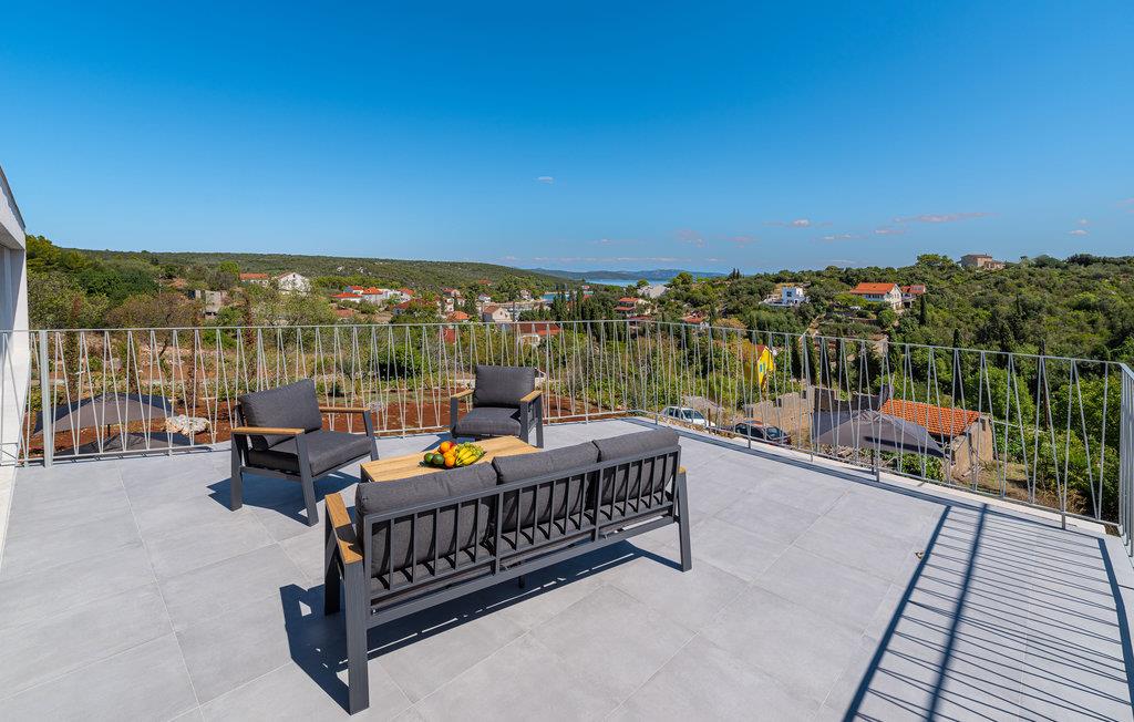 Denne ekstraordinære villa med moderne arkitektur lægger op til en uforglemmelig ferie. Den åbne planløsning i stueetagen kombinerer køkkenet, spisestuen og stuen for at skabe en luftig ramme, der fører direkte ud til solterrassen med pool. Hver etage har sin egen terrasse, hvor I kan nyde de rolige omgivelser. Poolen lover en forfriskning på varme dage, mens børnene leger i haven. Om aftenen kan I tilberede grillede specialiteter udendørs og afslutte dagen med at slappe af.