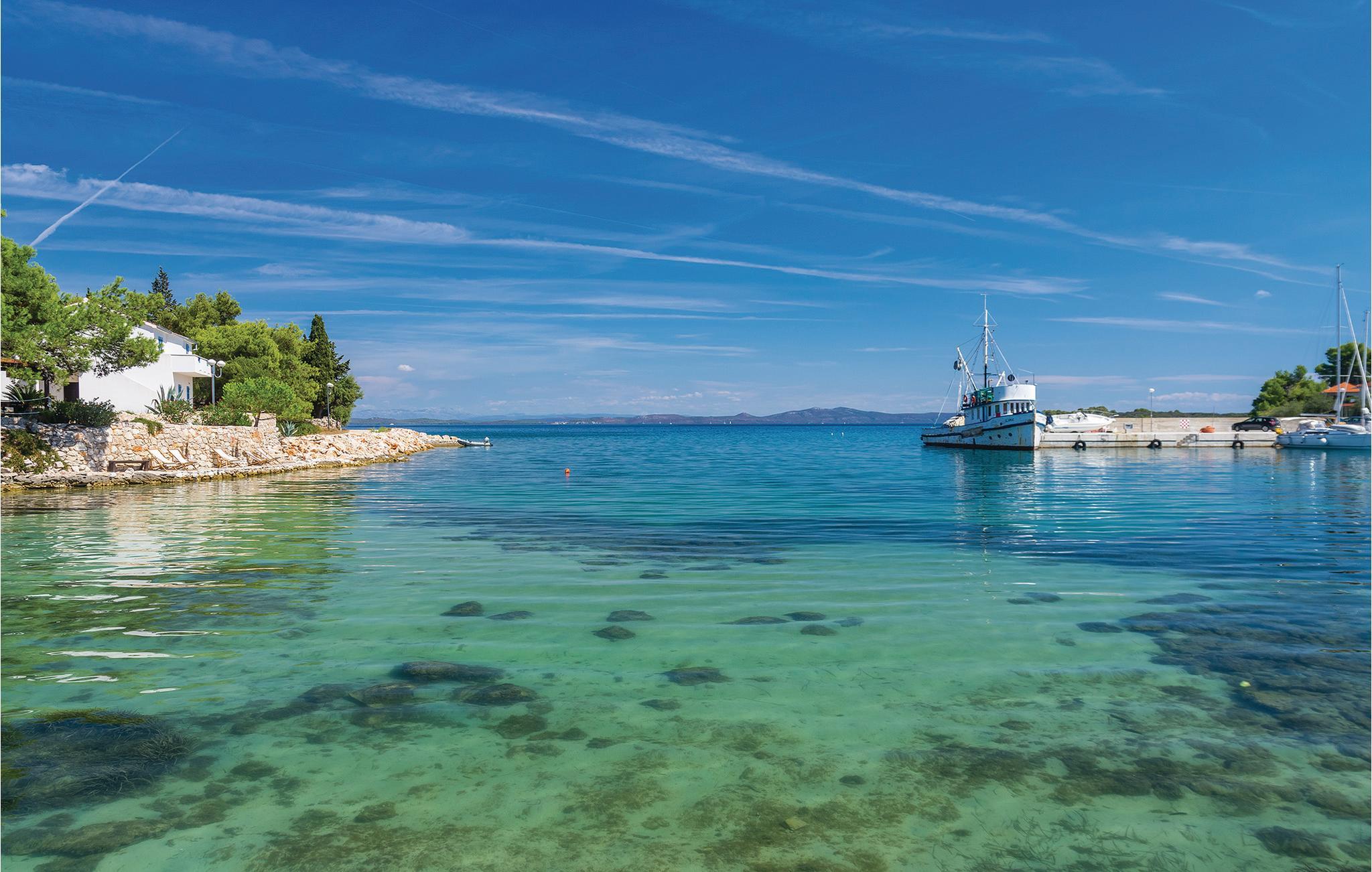 Dette charmerende feriehus er beliggende direkte ud til vandet og omgivet af fyrreskov. Her bor I i den lille landsby Zman Sali, hvor alt summer af idyllisk middelhavsatmosfære. Det er det perfekte sted til en afslappende ferie langt væk fra byens støj og stress. Husets indretning og møblering er komfortabel og funktionel. Den imponerende havvendte terrasse er et skønt sted at nyde morgenkaffen eller et glas vin ved solnedgangen. Besøg også sandstranden Sakarun på den nordlige del af øen - en af de smukkeste strande ved Adriaterhavet. Det kan varmt anbefales at tage en bådtur ud til den vidunderlige nationalpark Kornatiøerne, som omfatter hele 89 øer og rev, og ligger mellem øerne Dugi Otok og Žirje.