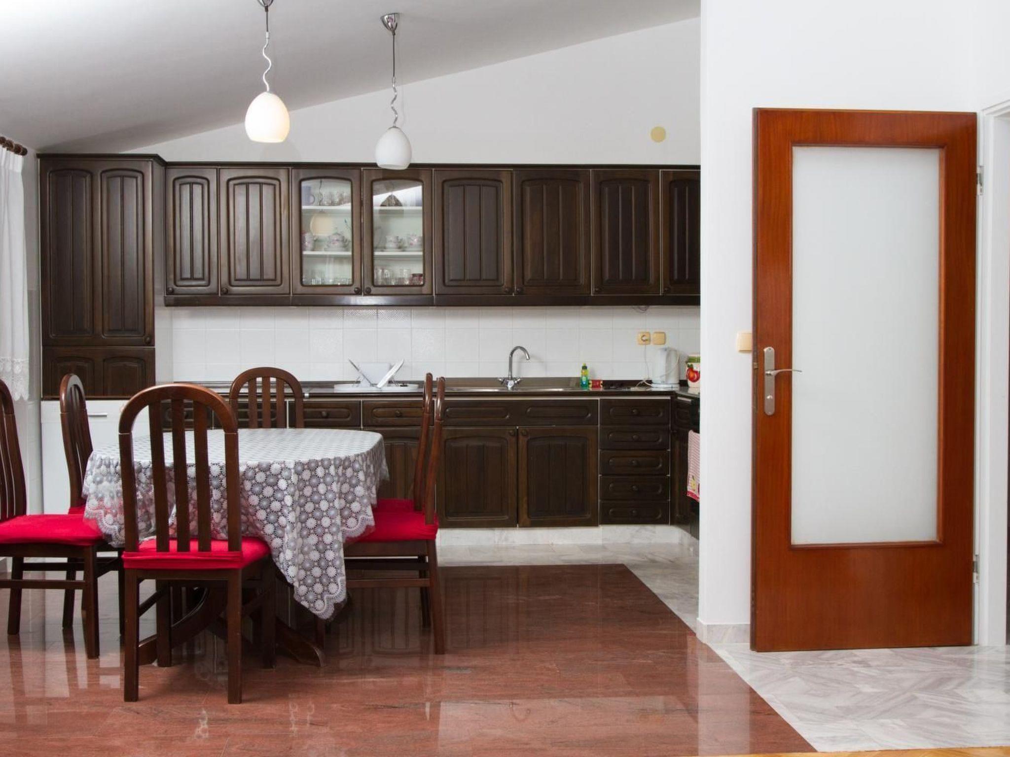 The location of this apartment is a true highlight. Situated just 10 meters from the beach and the sea, it promises days filled with sunbathing, swimming, and engaging in water sports available merely 50 meters away. The nearest town center, only 2000 meters from the property, invites for leisurely walks, dining in charming local restaurants, and experiencing the vibrant culture of Dalmatia. A grocery store also located 2000 meters away ensures that all your essentials are conveniently within reach.