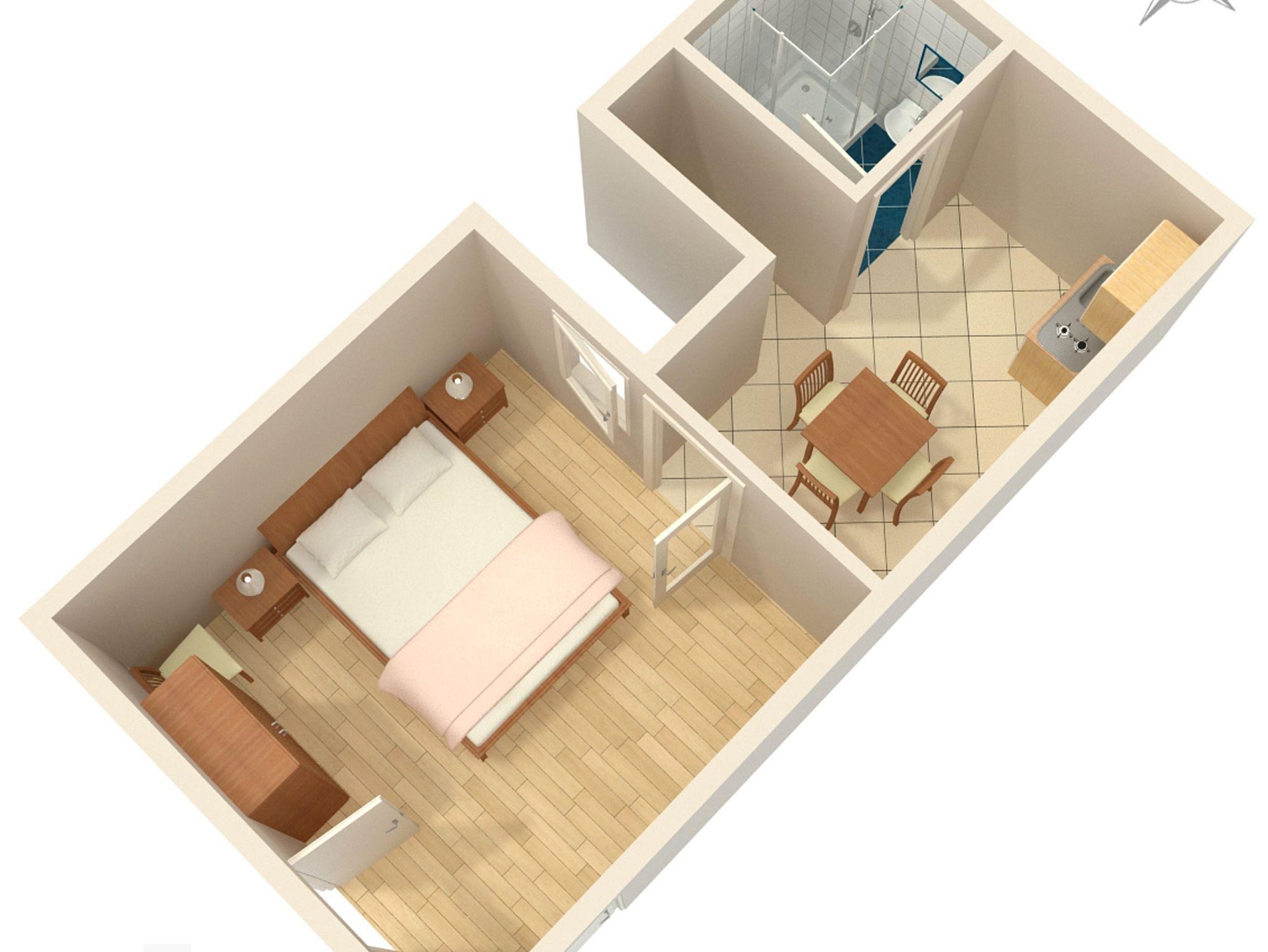 Studio bietet Platz für 2 Gäste. Die Betten sind in Schlafzimmern, die es 1 gibt, innerhalb einer Gesamtfläche von 23m2, angeordnet. Es ist erlaubt, Speisen auf dem Gemeinschafts-Grill vorzubereiten. Die reservierte Unterkunftseinheit hat keinen Balkon und keine Terrasse. In der gebuchten Unterkunftseinheit zahlt man am Ort ein Depositum ( der Preis ist an der Internetseite angeführt ). IM PREIS INBEGRIFFEN: Kurtaxe, Endreinigung, Klimatisierung, Parkplatz, Internet, Föhn. VERBINDLICHE ZUSÄTZLICHE KOSTEN: Kaution (100,00 € Einmalzahlung), Aufzahlung für Kurzaufenthalte (prozentualer Zuschlag pro Nächtigungsanzahl: 30% - 1, 20% - 2, 10% - 3). Die Verfügbarkeit zusätzlicher Dienstleistungen in Ihrem reservierten Termin und die Preise derselben (falls nicht aufgeführt) müssen im Voraus überprüft werden. Zusätzliche Dienstleistungen die in der Zahlungsaufforderung nicht aufgeführt sind werden direkt beim Vermieter bezahlt, angenommen der Gast nutzt auch diese.