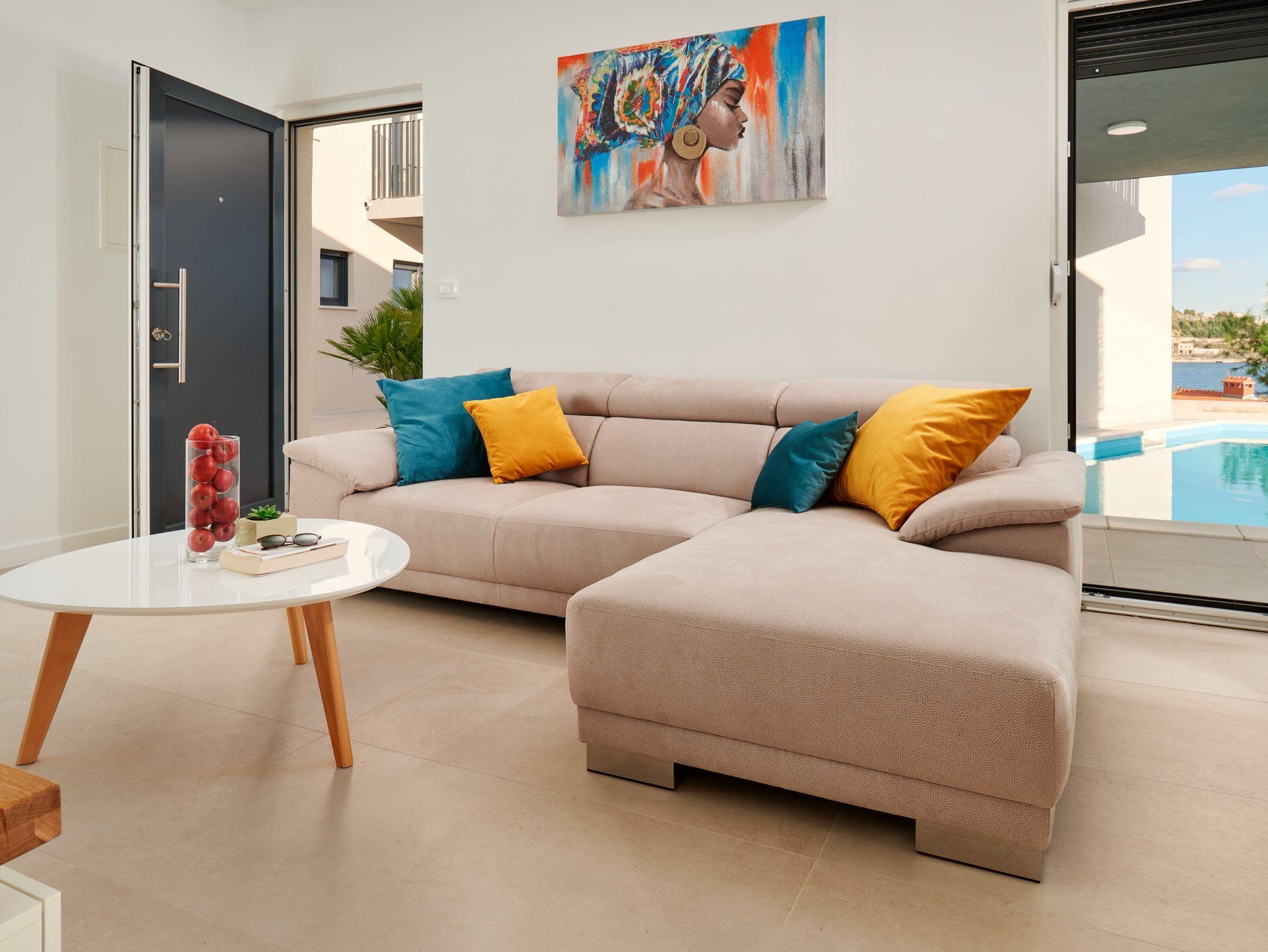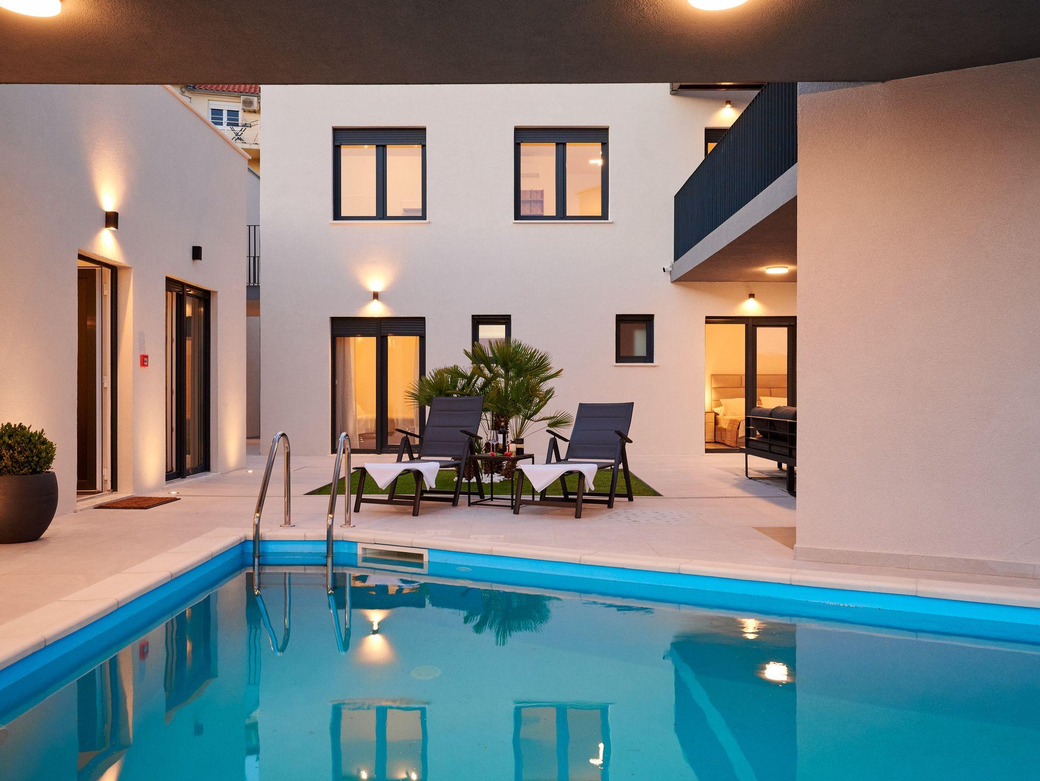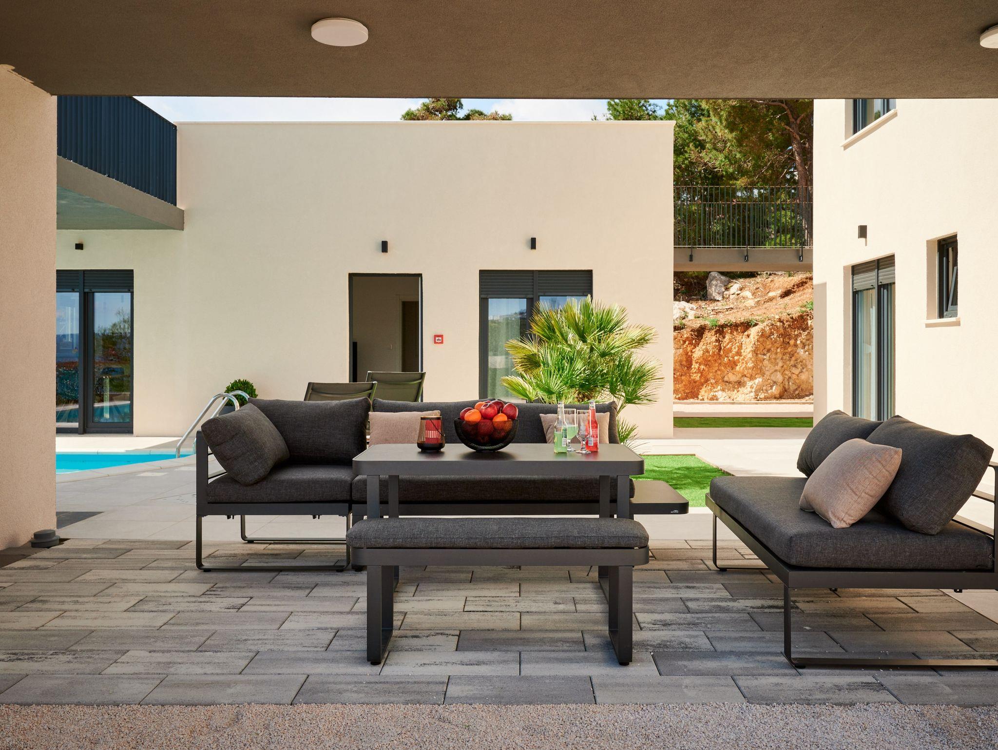 Haus bietet Platz für 12 Gäste. Die Betten sind in Schlafzimmern, die es 6 gibt, innerhalb einer Gesamtfläche von 158m2, angeordnet. Die Gäste haben eine eigene Terrasse zur Verfügung, auf der sie in warmen Sommernächten genießen können. Das Haus bietet Meerblick. Für vollen Genuss und Entspannung gibt es einen privaten Grill für Gäste dieser Unterkunft. Während ihres Aufenthalts können sich Gäste im privaten Schwimmbad entspannen. In der Unterkunftseinheit besteht die Möglichkeit des Mitbringens von Haustieren, und die Dienstleistung ist im Preis der Unterkunft enthalten. In der gebuchten Unterkunftseinheit zahlt man am Ort ein Depositum ( der Preis ist an der Internetseite angeführt ). IM PREIS INBEGRIFFEN: Kurtaxe, Endreinigung, Klimatisierung, Pool, Parkplatz, Internet, Haustiere, Kinderbett, Bügeleisen, Bügelbrett, Föhn, Liegestühle. VERBINDLICHE ZUSÄTZLICHE KOSTEN: Kaution (400,00 € Einmalzahlung). Die Verfügbarkeit zusätzlicher Dienstleistungen in Ihrem reservierten Termin und die Preise derselben (falls nicht aufgeführt) müssen im Voraus überprüft werden. Zusätzliche Dienstleistungen die in der Zahlungsaufforderung nicht aufgeführt sind werden direkt beim Vermieter bezahlt, angenommen der Gast nutzt auch diese.