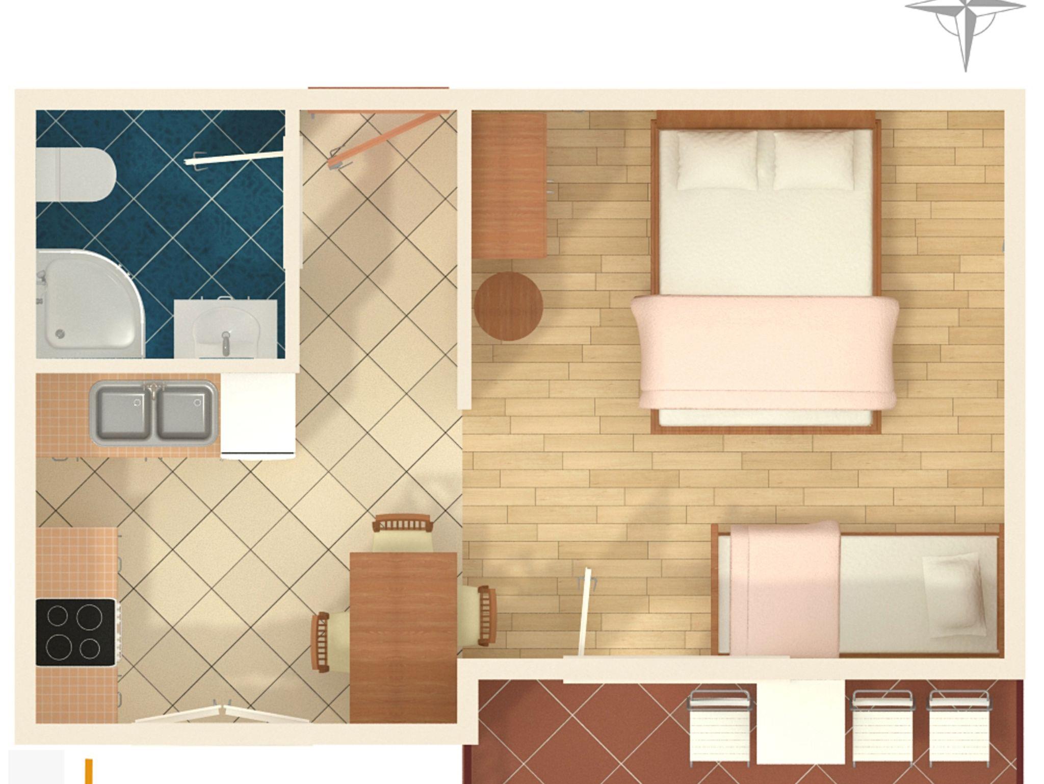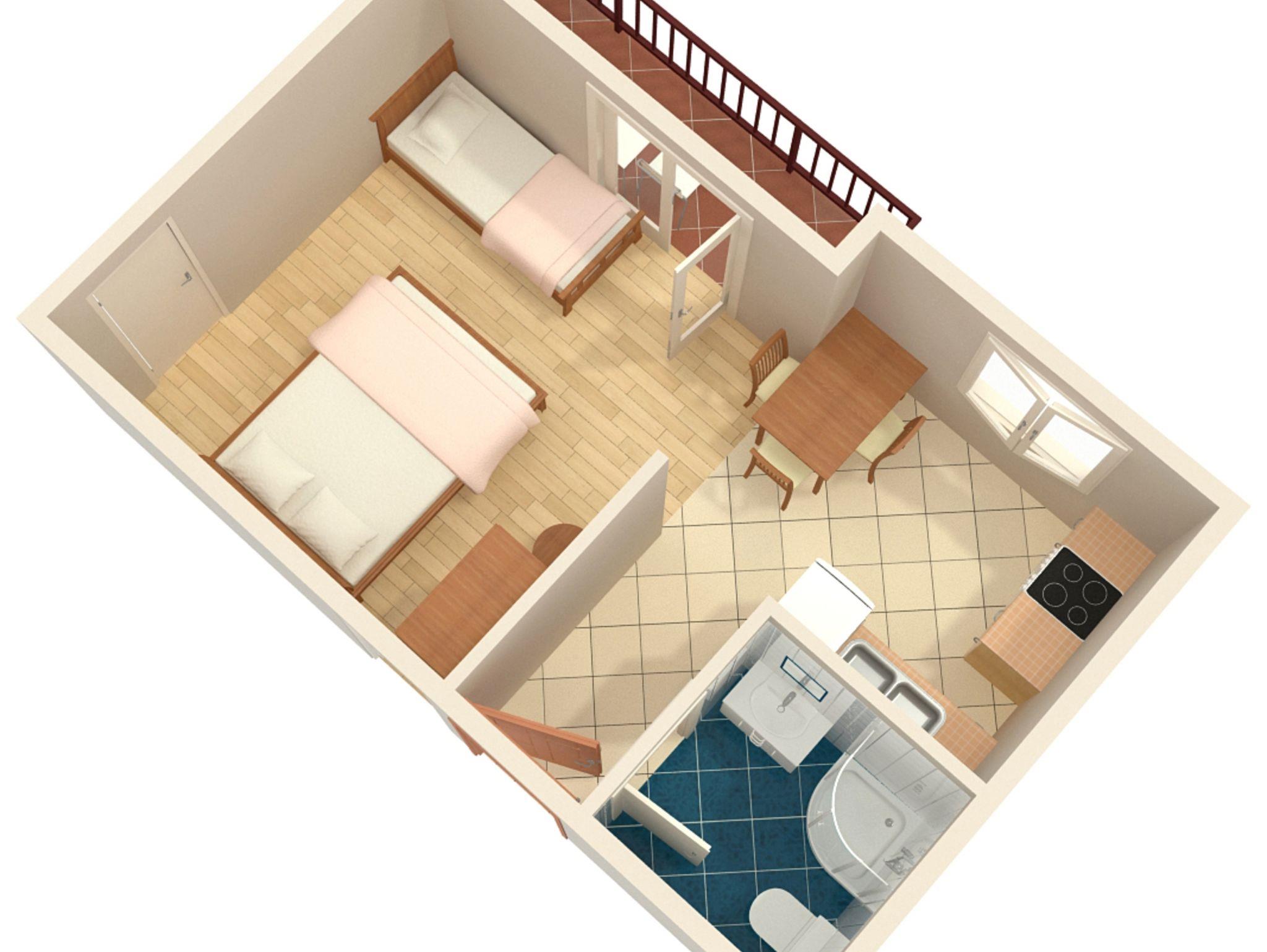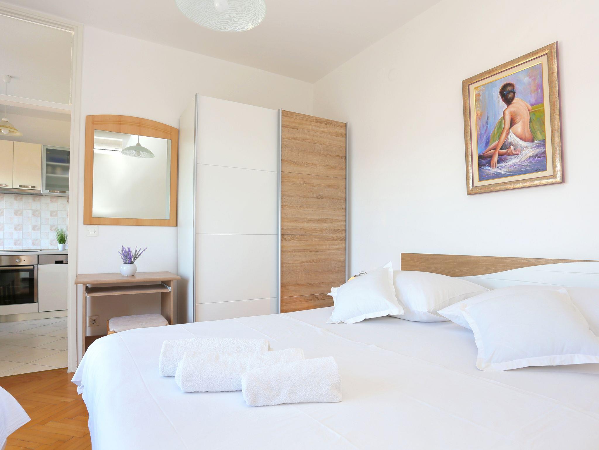 Studio bietet Platz für 3 Gäste. Die Betten sind in Schlafzimmern, die es 1 gibt, innerhalb einer Gesamtfläche von 21m2, angeordnet. Die Gäste haben einen eigenen Balkon zur Verfügung, auf der sie in warmen Sommernächten genießen können. Das Studio-Apartment bietet Meerblick. Es ist erlaubt, Speisen auf dem Gemeinschafts-Grill vorzubereiten. In der gebuchten Unterkunftseinheit zahlt man am Ort ein Depositum ( der Preis ist an der Internetseite angeführt ). IM PREIS INBEGRIFFEN: Kurtaxe, Endreinigung, Klimatisierung, Parkplatz, Internet, Föhn. VERBINDLICHE ZUSÄTZLICHE KOSTEN: Kaution (100,00 € Einmalzahlung), Aufzahlung für Kurzaufenthalte (prozentualer Zuschlag pro Nächtigungsanzahl: 30% - 1, 20% - 2, 10% - 3). Die Verfügbarkeit zusätzlicher Dienstleistungen in Ihrem reservierten Termin und die Preise derselben (falls nicht aufgeführt) müssen im Voraus überprüft werden. Zusätzliche Dienstleistungen die in der Zahlungsaufforderung nicht aufgeführt sind werden direkt beim Vermieter bezahlt, angenommen der Gast nutzt auch diese.
