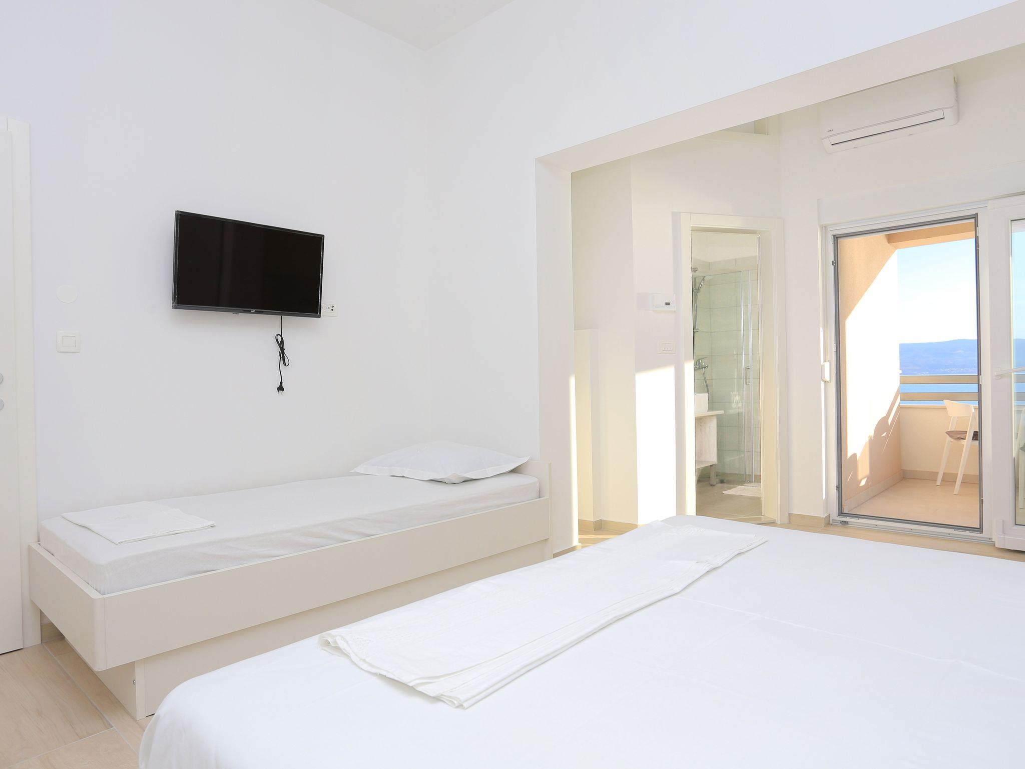 Studio bietet Platz für 3 Gäste. Die Betten sind in Schlafzimmern, die es 1 gibt, innerhalb einer Gesamtfläche von 24m2, angeordnet. Die Gäste haben eine eigene Terrasse zur Verfügung, auf der sie in warmen Sommernächten genießen können. Das Studio-Apartment bietet Meerblick. Es ist erlaubt, Speisen auf dem Gemeinschafts-Grill vorzubereiten. IM PREIS INBEGRIFFEN: Kurtaxe, Endreinigung, Parkplatz, Internet. VERBINDLICHE ZUSÄTZLICHE KOSTEN: Aufzahlung für Kurzaufenthalte (prozentualer Zuschlag pro Nächtigungsanzahl: 30% - 1, 20% - 2, 10% - 3). UNVERBINDLICHE ZUSÄTZLICHE KOSTEN: Klimatisierung (0,80 € pro Stunde), Wäschewaschen (5,00 € Waschen). Die Verfügbarkeit zusätzlicher Dienstleistungen in Ihrem reservierten Termin und die Preise derselben (falls nicht aufgeführt) müssen im Voraus überprüft werden. Zusätzliche Dienstleistungen die in der Zahlungsaufforderung nicht aufgeführt sind werden direkt beim Vermieter bezahlt, angenommen der Gast nutzt auch diese.