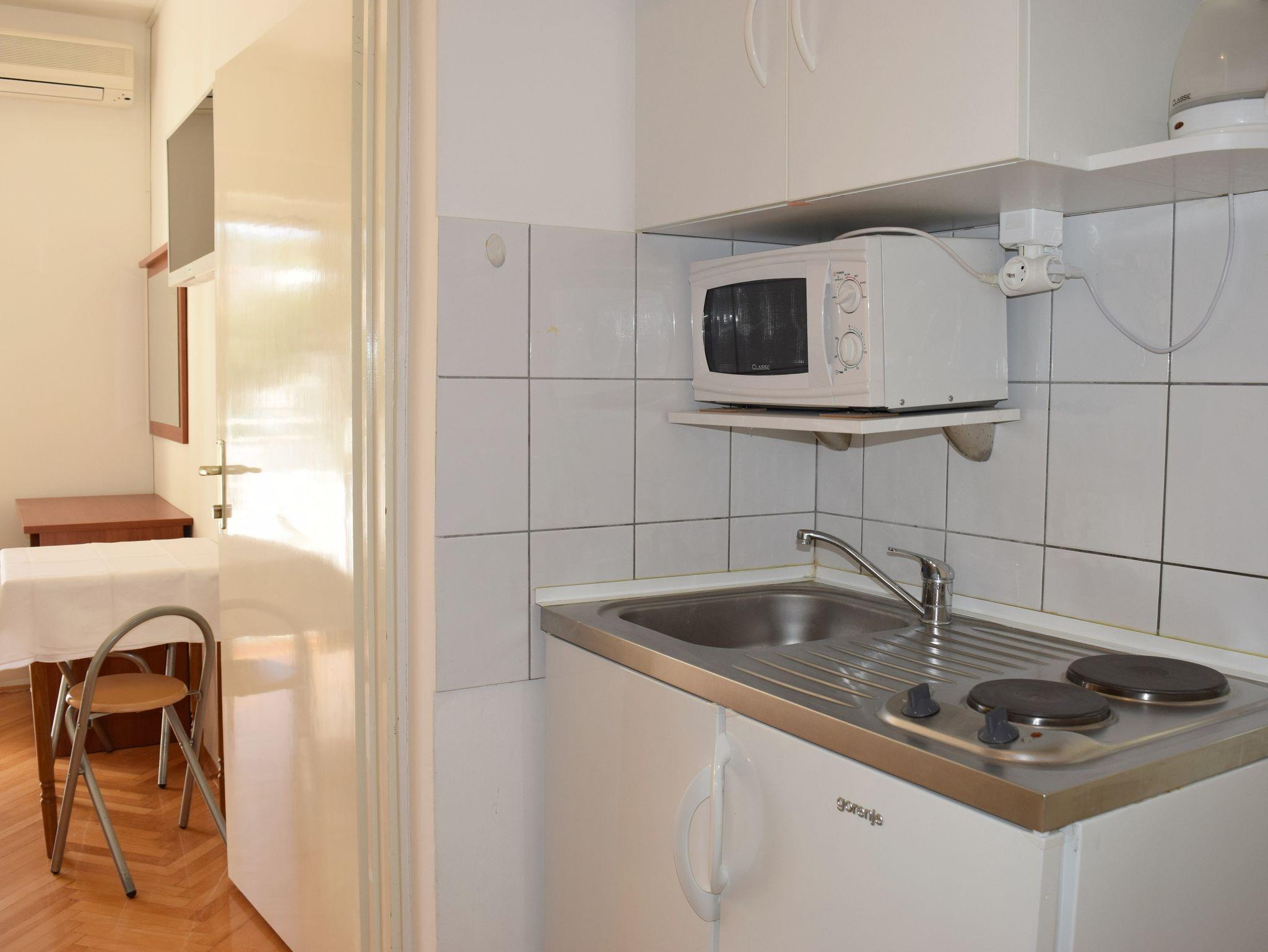 Studio bietet Platz für 2 Gäste. Die Betten sind in Schlafzimmern, die es 1 gibt, innerhalb einer Gesamtfläche von 21m2, angeordnet. Die Gäste haben eine eigene Terrasse zur Verfügung, auf der sie in warmen Sommernächten genießen können. Das Studio-Apartment bietet Meerblick. Es ist erlaubt, Speisen auf dem Gemeinschafts-Grill vorzubereiten. In der gebuchten Unterkunftseinheit zahlt man am Ort ein Depositum ( der Preis ist an der Internetseite angeführt ). IM PREIS INBEGRIFFEN: Kurtaxe, Endreinigung, Klimatisierung, Parkplatz, Internet, Föhn. VERBINDLICHE ZUSÄTZLICHE KOSTEN: Kaution (100,00 € Einmalzahlung), Aufzahlung für Kurzaufenthalte (prozentualer Zuschlag pro Nächtigungsanzahl: 30% - 1, 20% - 2, 10% - 3). Die Verfügbarkeit zusätzlicher Dienstleistungen in Ihrem reservierten Termin und die Preise derselben (falls nicht aufgeführt) müssen im Voraus überprüft werden. Zusätzliche Dienstleistungen die in der Zahlungsaufforderung nicht aufgeführt sind werden direkt beim Vermieter bezahlt, angenommen der Gast nutzt auch diese.