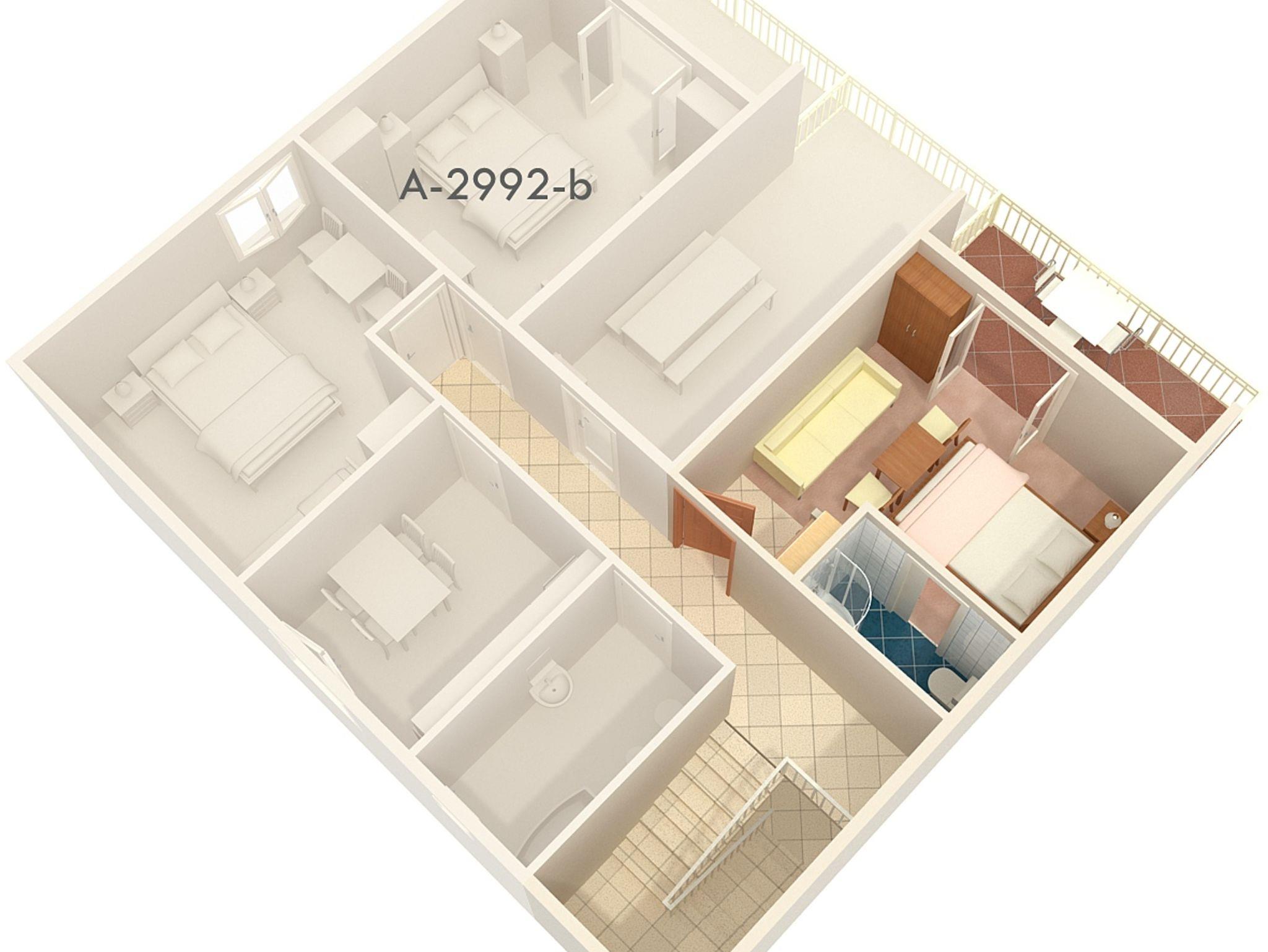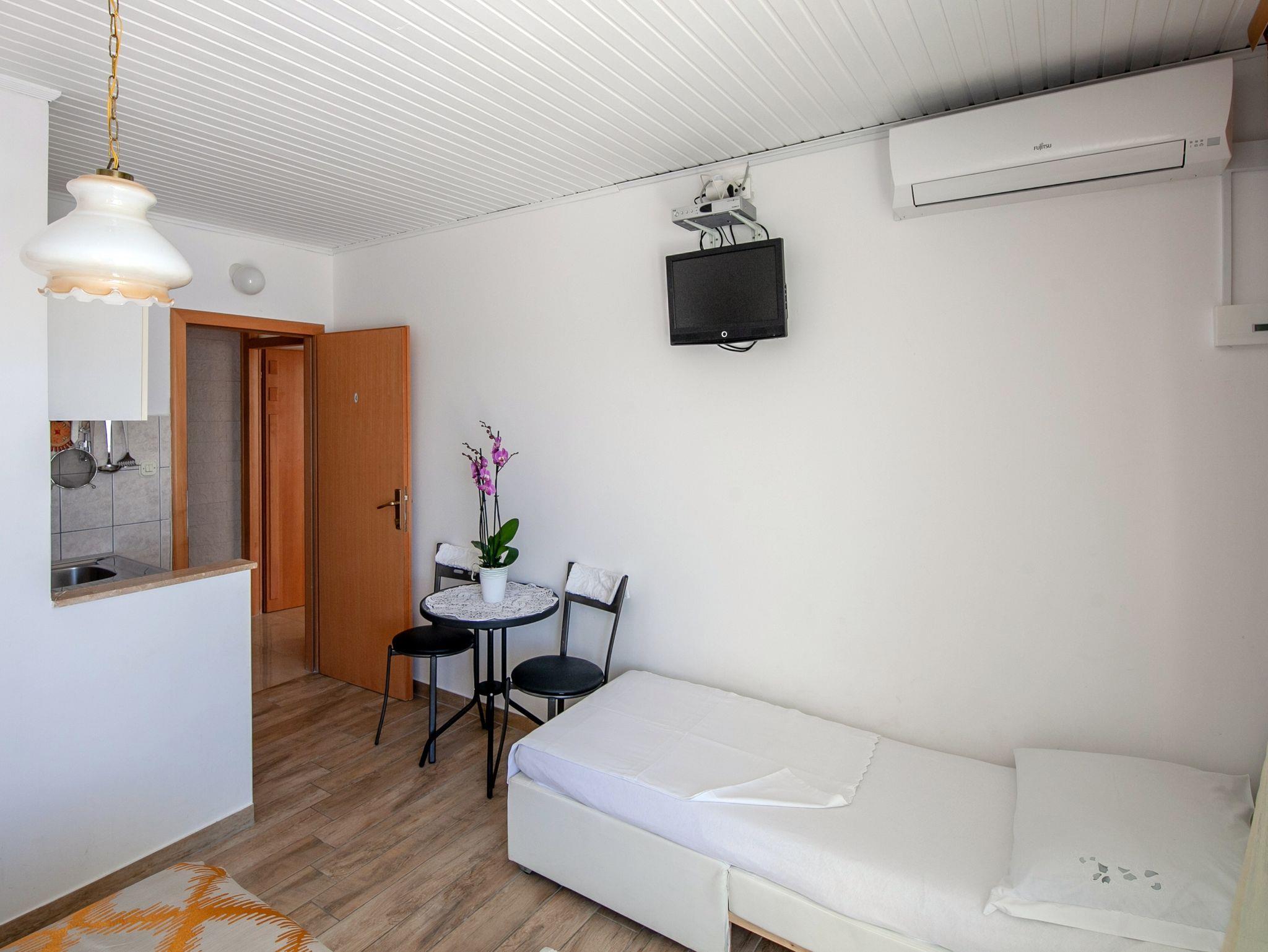 Studio bietet Platz für 3 Gäste. Die Betten sind in Schlafzimmern, die es 1 gibt, innerhalb einer Gesamtfläche von 18m2, angeordnet. Die Gäste haben eine eigene Terrasse zur Verfügung, auf der sie in warmen Sommernächten genießen können. Das Studio-Apartment bietet Meerblick. Es ist erlaubt, Speisen auf dem Gemeinschafts-Grill vorzubereiten. IM PREIS INBEGRIFFEN: Kurtaxe, Endreinigung, Parkplatz, Internet. UNVERBINDLICHE ZUSÄTZLICHE KOSTEN: Klimatisierung (0,25 € pro Stunde), Wäschewaschen (5,00 € Waschen). Die Verfügbarkeit zusätzlicher Dienstleistungen in Ihrem reservierten Termin und die Preise derselben (falls nicht aufgeführt) müssen im Voraus überprüft werden. Zusätzliche Dienstleistungen die in der Zahlungsaufforderung nicht aufgeführt sind werden direkt beim Vermieter bezahlt, angenommen der Gast nutzt auch diese. Ermäßigung auf den Grundpreis: Gratistag 14=13 (bei einem Aufenthalt von 14 Tagen oder mehr erhalten Sie einen Gratistag für den Aufenthalt bis 31.12.26).