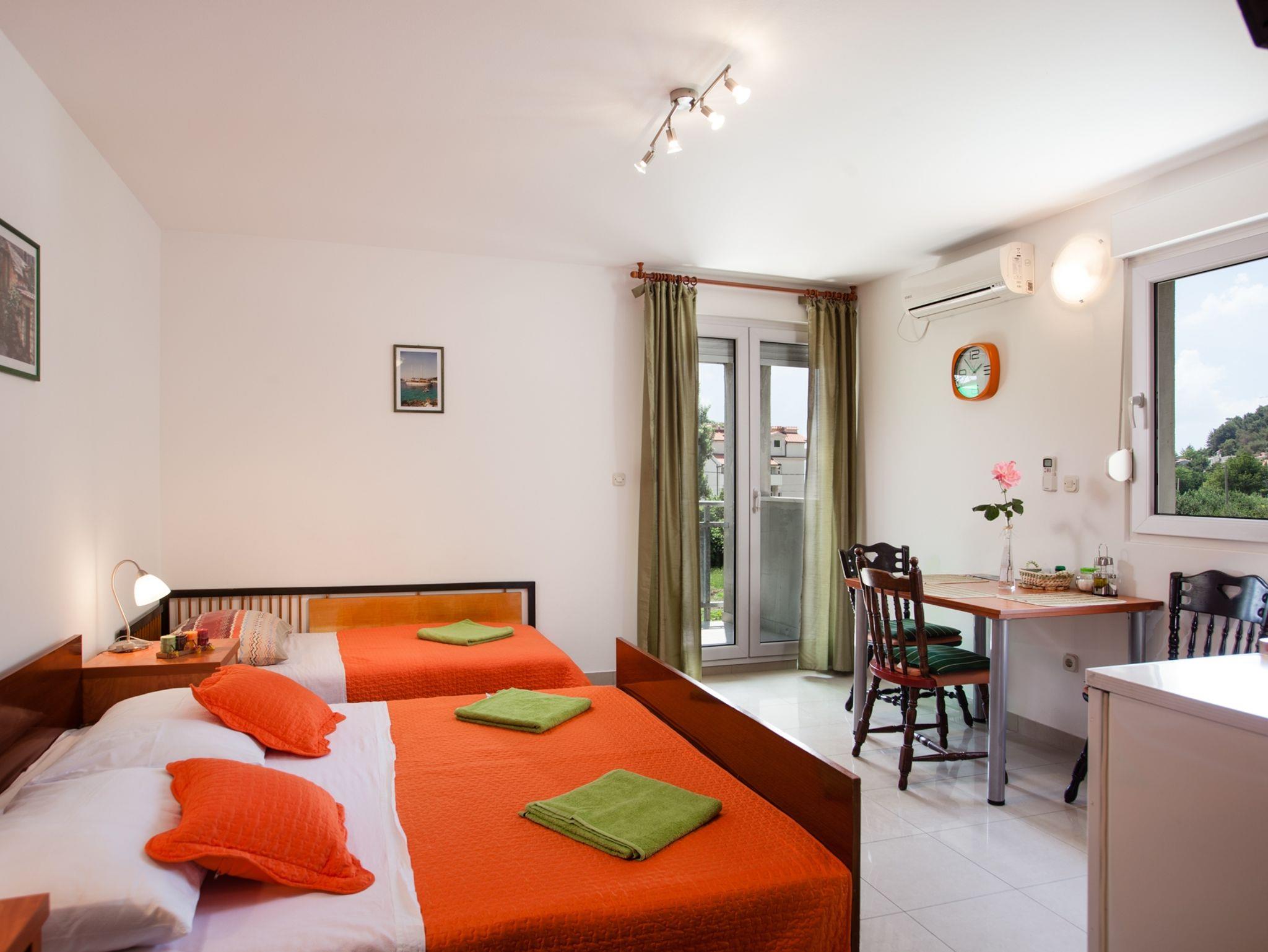 Studio bietet Platz für 3 Gäste. Die Betten sind in Schlafzimmern, die es 1 gibt, innerhalb einer Gesamtfläche von 24m2, angeordnet. Die Gäste haben eine eigene Terrasse zur Verfügung, auf der sie in warmen Sommernächten genießen können. Das Studio-Apartment bietet Meerblick. Es ist erlaubt, Speisen auf dem Gemeinschafts-Grill vorzubereiten. In der Unterkunftseinheit besteht die Möglichkeit des Mitbringens von Haustieren gegen Aufpreis. IM PREIS INBEGRIFFEN: Kurtaxe, Endreinigung, Klimatisierung, Parkplatz, Internet, Wäschewaschen, Boot, Fahrrad, Kinderbett, Bügeleisen, Föhn. VERBINDLICHE ZUSÄTZLICHE KOSTEN: Aufzahlung für Kurzaufenthalte (prozentualer Zuschlag pro Nächtigungsanzahl: 30% - 1, 20% - 2, 10% - 3). UNVERBINDLICHE ZUSÄTZLICHE KOSTEN: Haustiere (5,00 € pro Nacht). Die Verfügbarkeit zusätzlicher Dienstleistungen in Ihrem reservierten Termin und die Preise derselben (falls nicht aufgeführt) müssen im Voraus überprüft werden. Zusätzliche Dienstleistungen die in der Zahlungsaufforderung nicht aufgeführt sind werden direkt beim Vermieter bezahlt, angenommen der Gast nutzt auch diese. Ermäßigung auf den Grundpreis: Gratistag 14=13 (bei einem Aufenthalt von 14 Tagen oder mehr erhalten Sie einen Gratistag für den Aufenthalt bis 31.12.26).