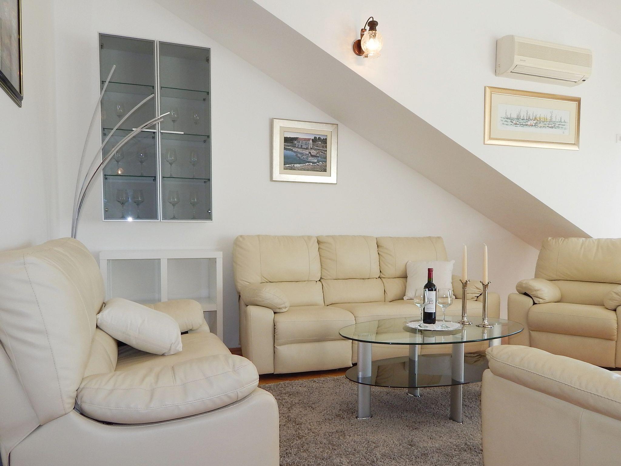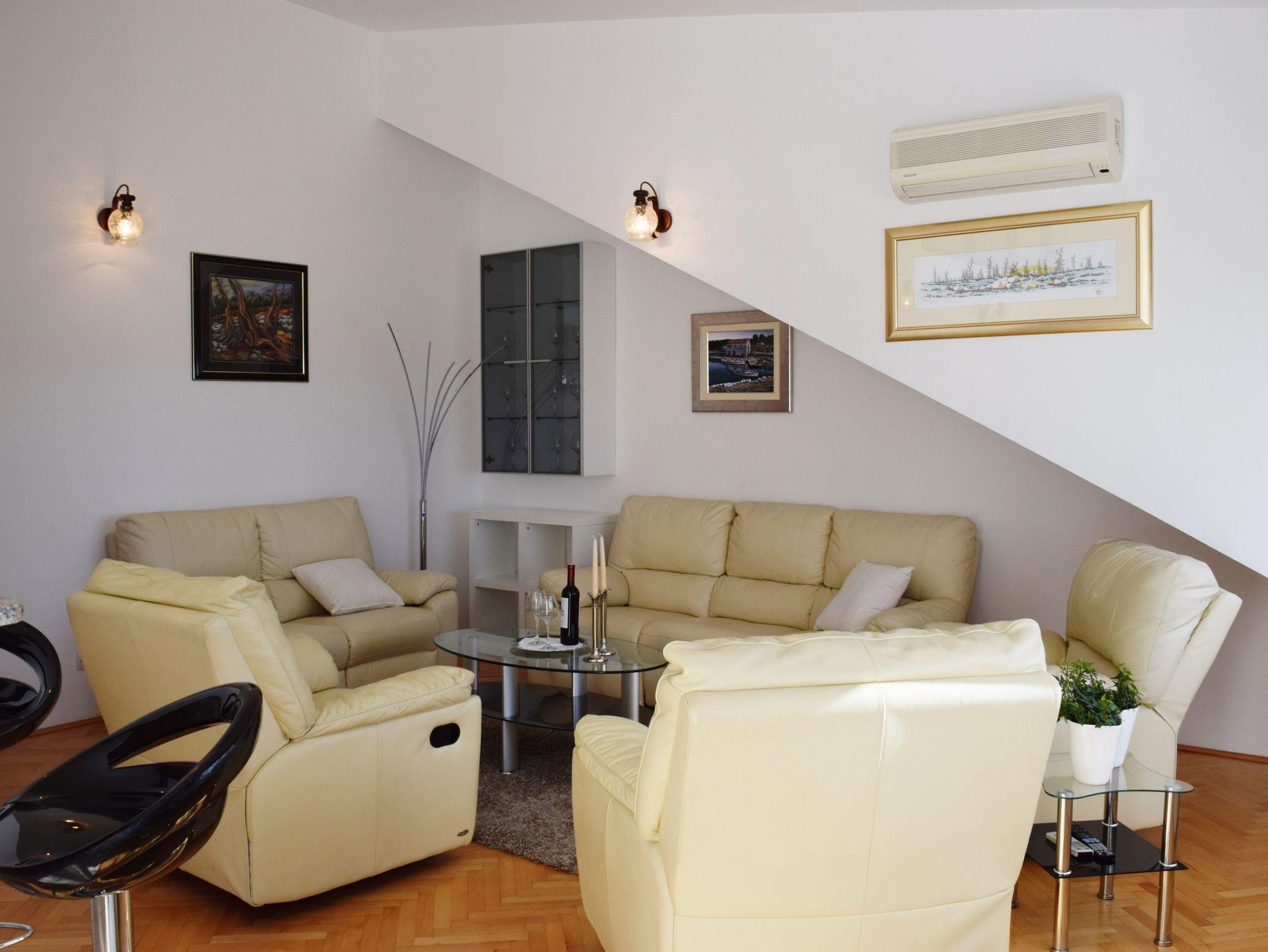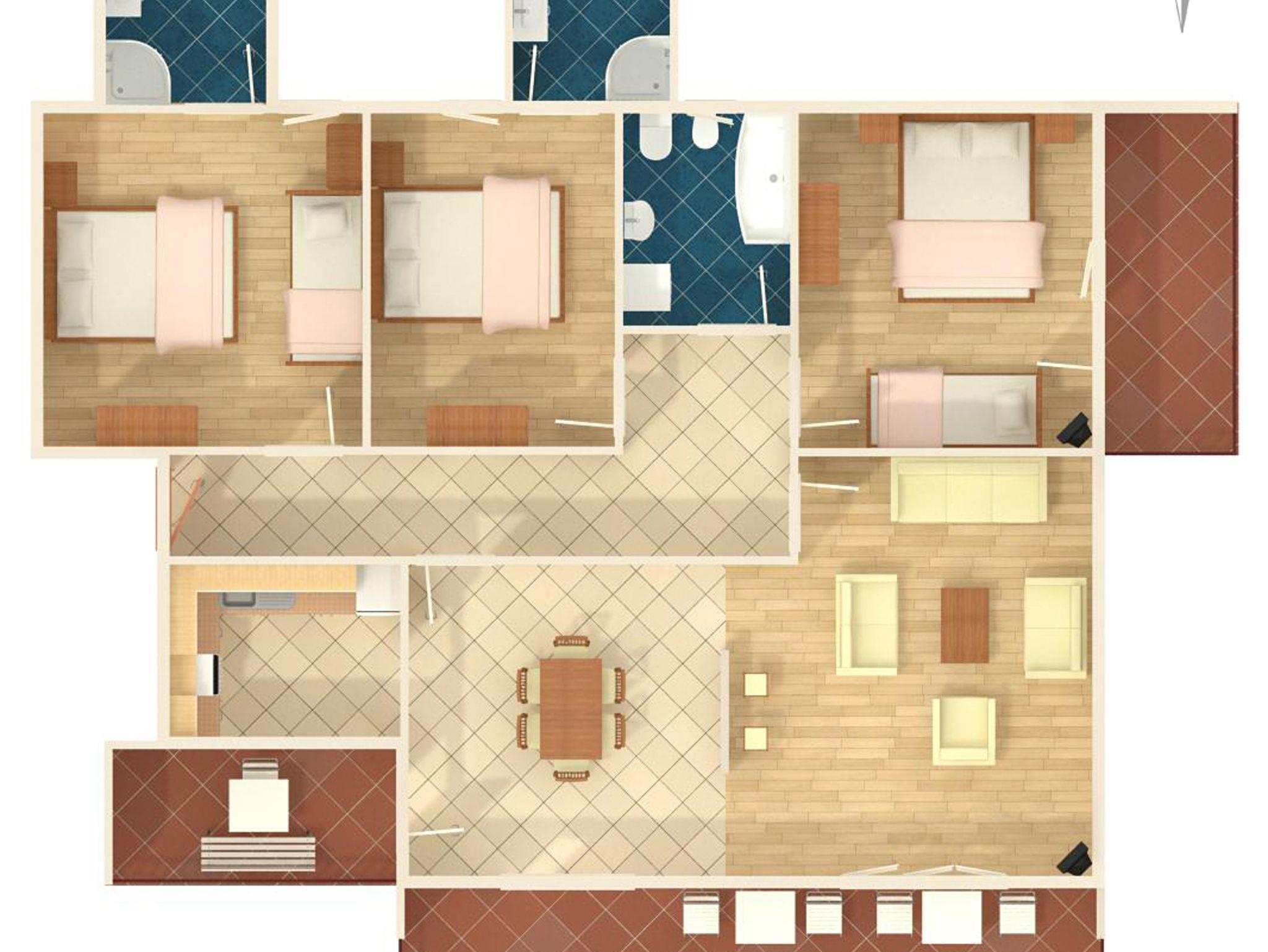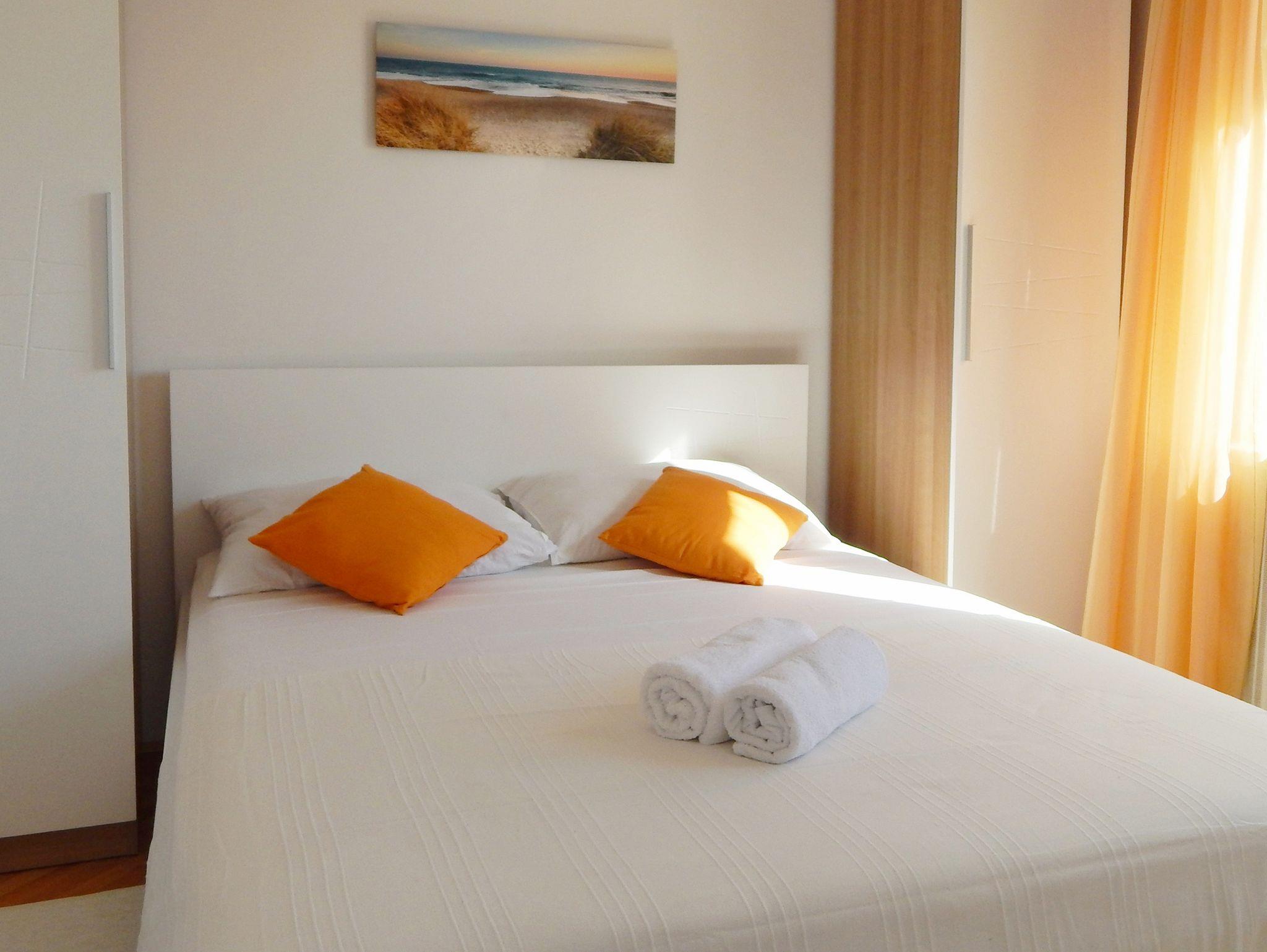 Ferienwohnung bietet Platz für 10 Gäste. Die Betten sind in Schlafzimmern, die es 3 gibt, und in Wohnzimmer, innerhalb einer Gesamtfläche von 103m2, angeordnet. Die Gäste haben eine eigene Terrasse zur Verfügung, auf der sie in warmen Sommernächten genießen können. Das Apartment bietet Meerblick. Es ist erlaubt, Speisen auf dem Gemeinschafts-Grill vorzubereiten. In der gebuchten Unterkunftseinheit zahlt man am Ort ein Depositum ( der Preis ist an der Internetseite angeführt ). IM PREIS INBEGRIFFEN: Kurtaxe, Endreinigung, Klimatisierung, Zentralheizung, Parkplatz, Internet, Föhn. VERBINDLICHE ZUSÄTZLICHE KOSTEN: Kaution (200,00 € Einmalzahlung), Aufzahlung für Kurzaufenthalte (prozentualer Zuschlag pro Nächtigungsanzahl: 30% - 1, 20% - 2, 10% - 3). Die Verfügbarkeit zusätzlicher Dienstleistungen in Ihrem reservierten Termin und die Preise derselben (falls nicht aufgeführt) müssen im Voraus überprüft werden. Zusätzliche Dienstleistungen die in der Zahlungsaufforderung nicht aufgeführt sind werden direkt beim Vermieter bezahlt, angenommen der Gast nutzt auch diese.