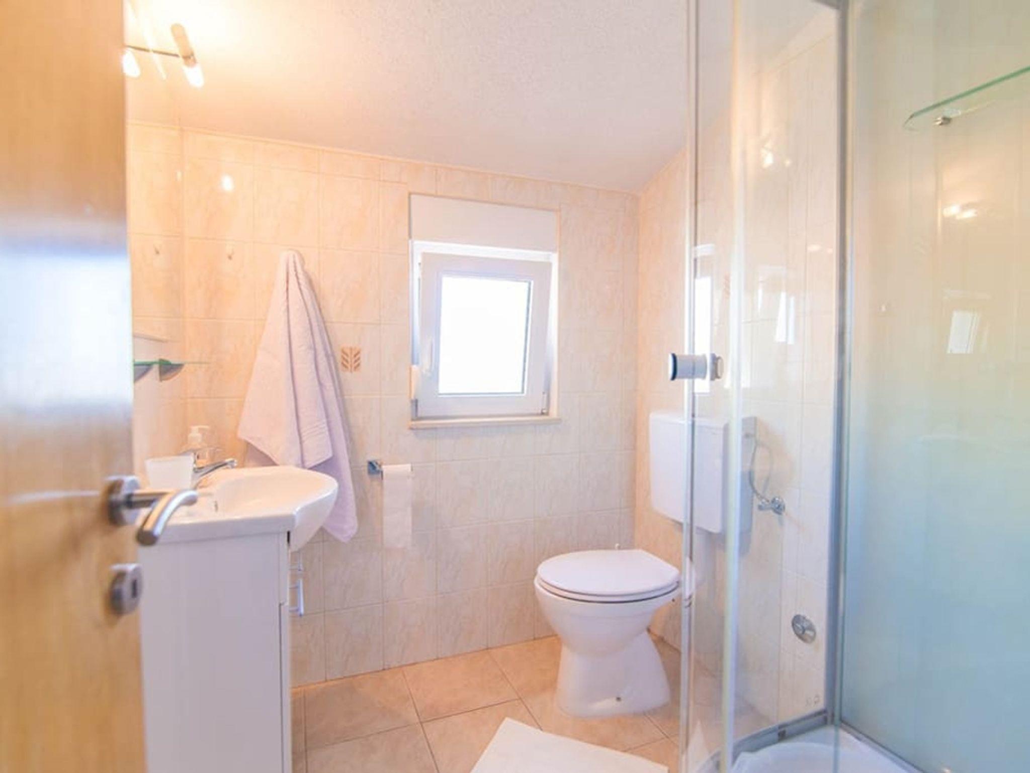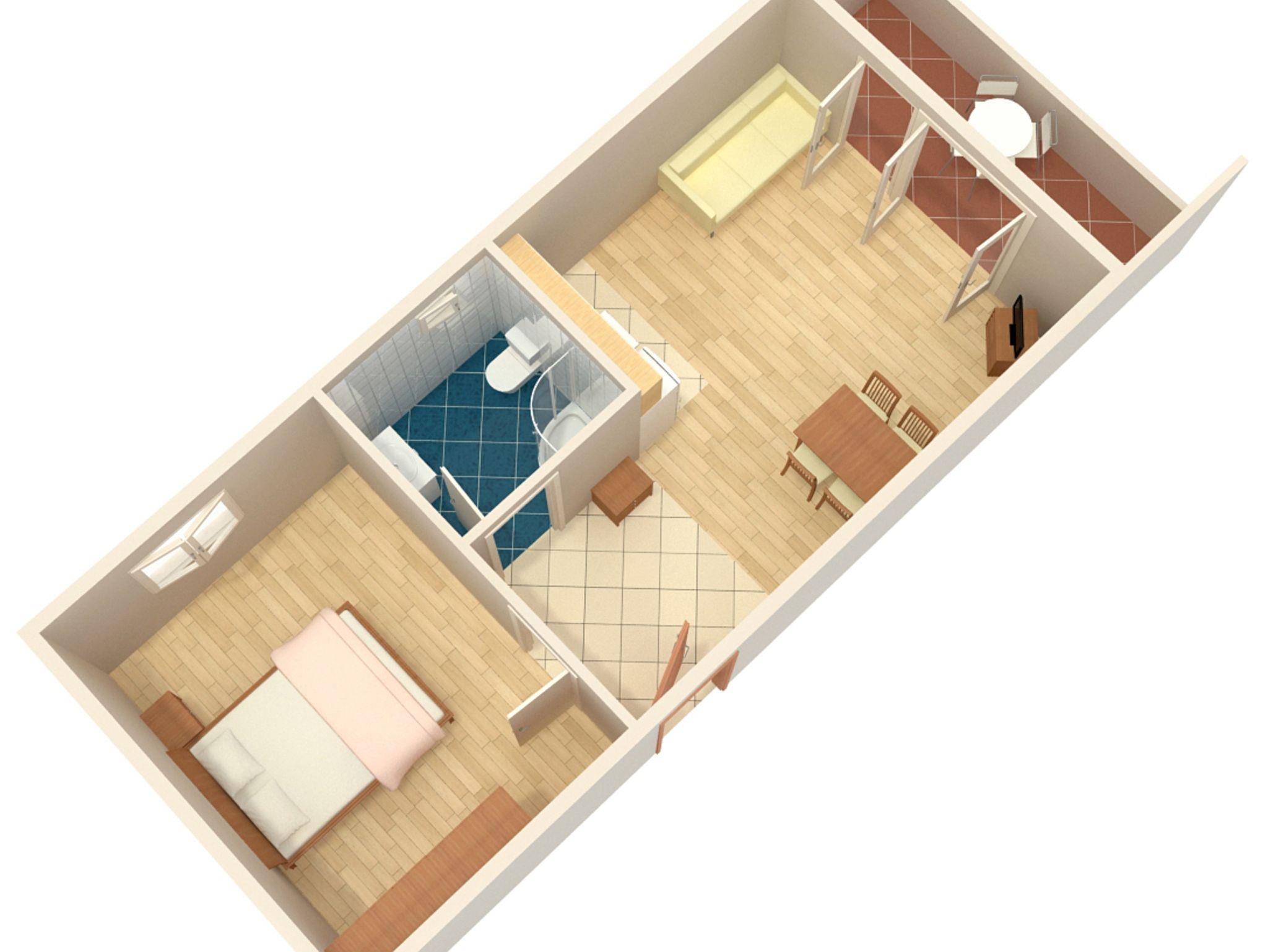Ferienwohnung bietet Platz für 4 Gäste. Die Betten sind in Schlafzimmern, die es 1 gibt, und in Wohnzimmer, innerhalb einer Gesamtfläche von 35m2, angeordnet. Die Gäste haben eine eigene Terrasse zur Verfügung, auf der sie in warmen Sommernächten genießen können. Das Apartment bietet Meerblick. Es ist erlaubt, Speisen auf dem Gemeinschafts-Grill vorzubereiten. IM PREIS INBEGRIFFEN: Kurtaxe, Endreinigung, Klimatisierung, Parkplatz, Internet, Wäschewaschen, tragbarer Grill. VERBINDLICHE ZUSÄTZLICHE KOSTEN: Aufzahlung für Kurzaufenthalte (prozentualer Zuschlag pro Nächtigungsanzahl: 30% - 1, 20% - 2, 10% - 3). UNVERBINDLICHE ZUSÄTZLICHE KOSTEN: Bootsanlegeplatz (10,00 € pro Nacht), Zusatzbett (10,00 € pro Nacht). Die Verfügbarkeit zusätzlicher Dienstleistungen in Ihrem reservierten Termin und die Preise derselben (falls nicht aufgeführt) müssen im Voraus überprüft werden. Zusätzliche Dienstleistungen die in der Zahlungsaufforderung nicht aufgeführt sind werden direkt beim Vermieter bezahlt, angenommen der Gast nutzt auch diese.