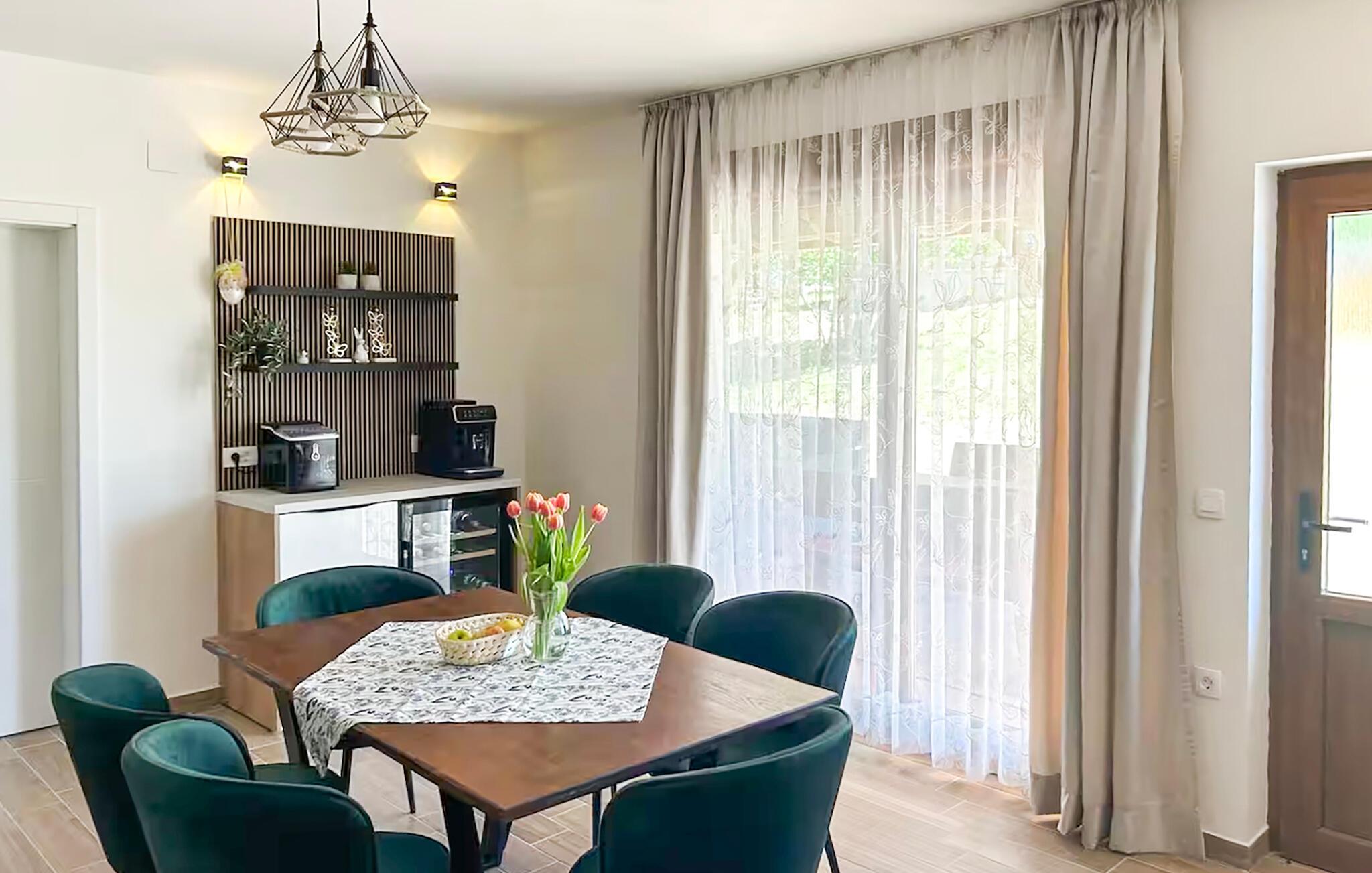 Velkommen til dette smagfuldt indrettede feriehus, hvor børnene vil nyde det lige så meget som du. Nyd den hyggelige atmosfære med hyggelige måltider, hyggelige spilleaftener eller en spændende film på sofaen.