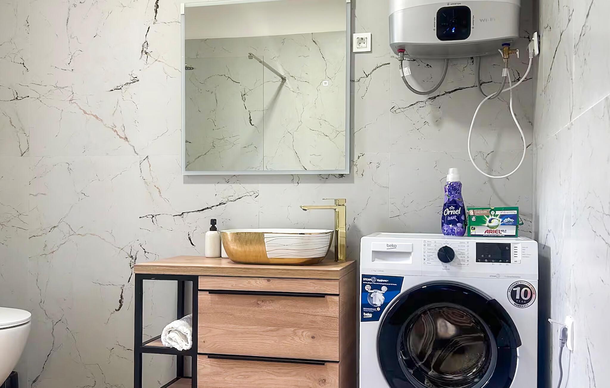 - WC. Varmt og koldt vand, Bruser