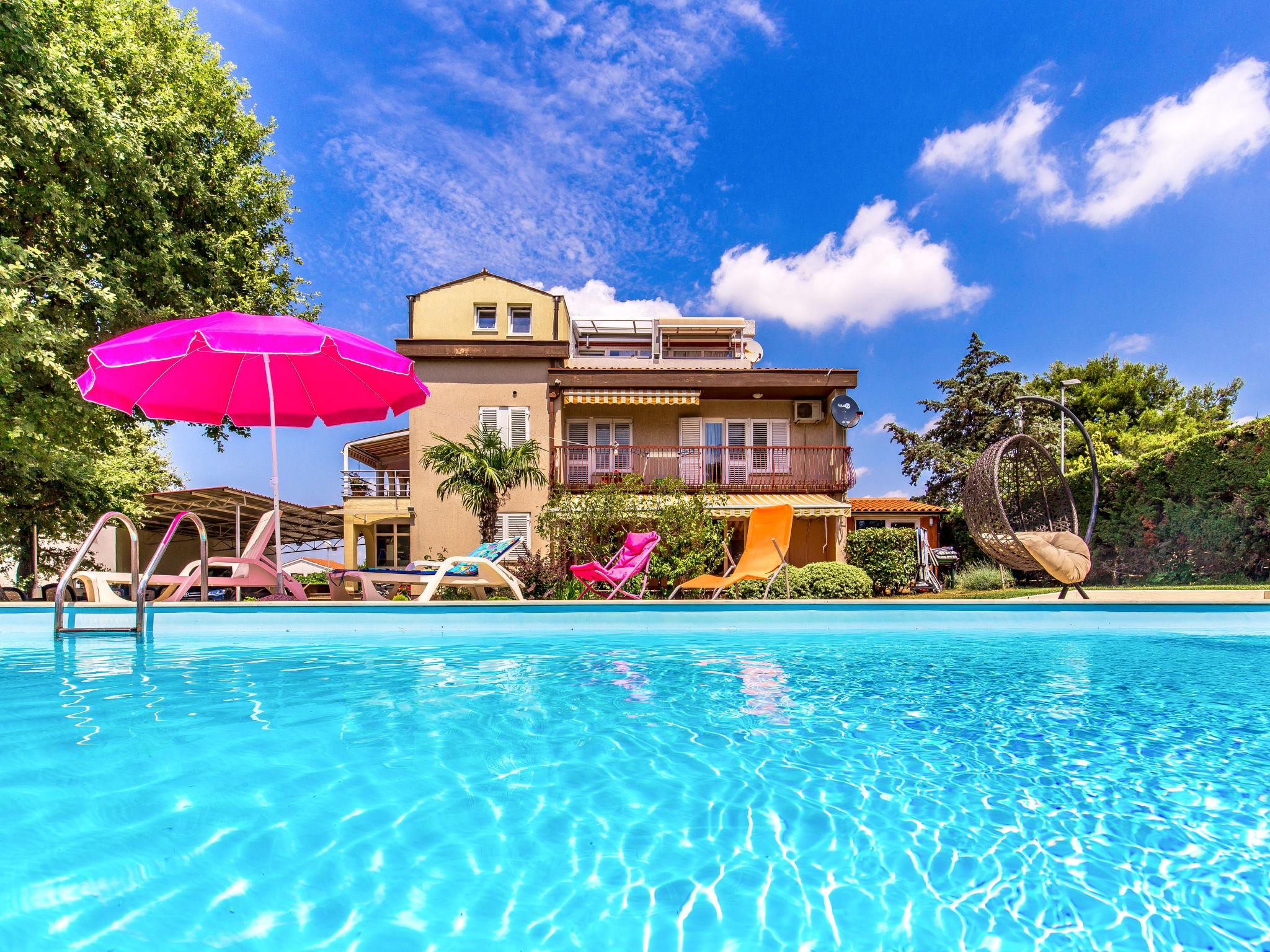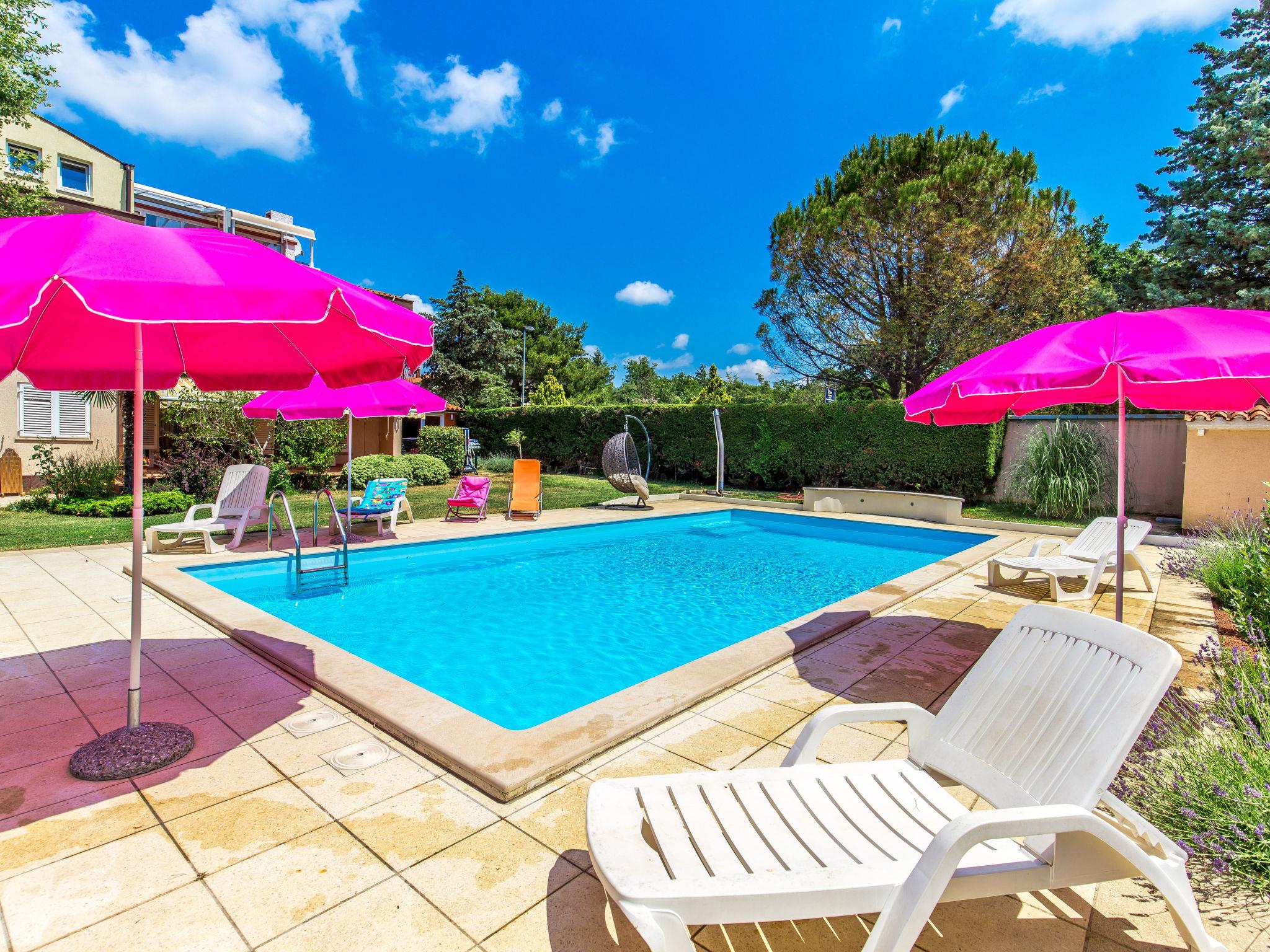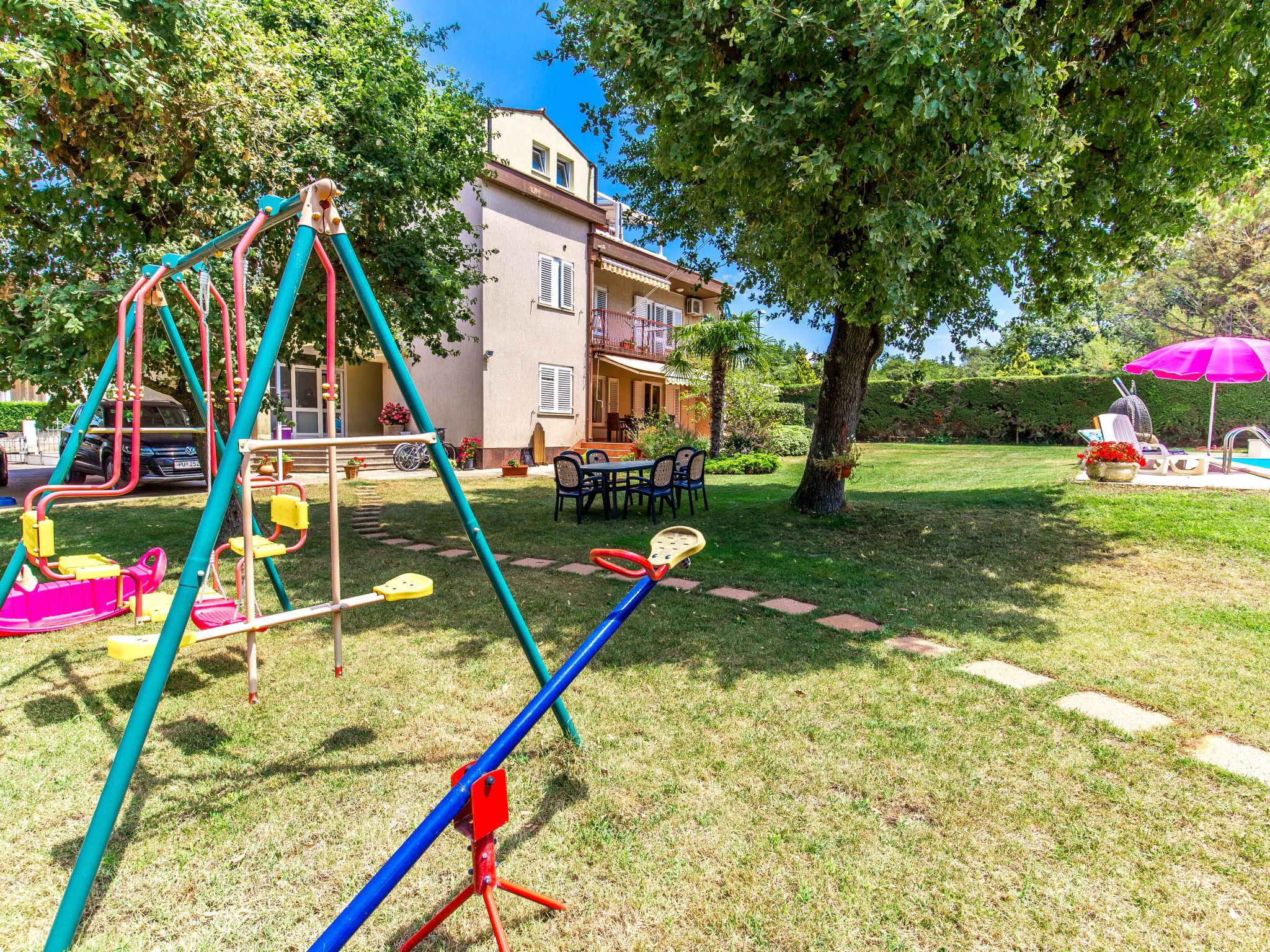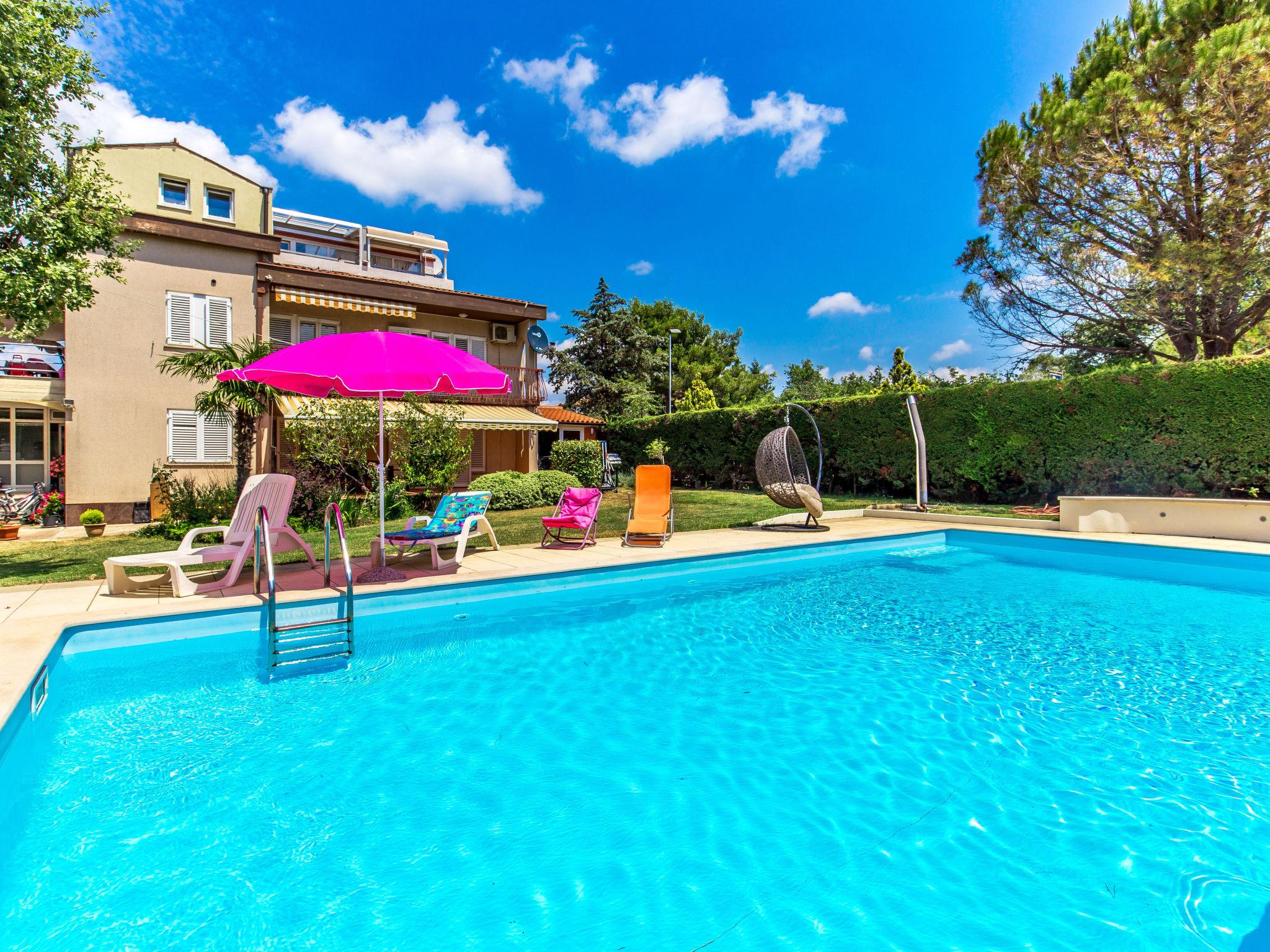 Beautiful 3-family house "Silva". 350 m from the centre of Peroj, 2 km from the centre of Fažana, in a sunny position, 800 m from the sea, 800 m from the beach. For shared use: property 1'000 m2 (fenced). Private: beautiful garden 600 m2 with lawn and wildlife garden, swimming pool angular (10 x 5 m, depth 140 cm, seasonal availability: 27.Apr. - 12.Oct.) with internal staircase. Outdoor shower, garden furniture (swing). In the house: internet access. Available: bicycles (3). Roofed, parking at the house on the premises. Shop 300 m, restaurant 500 m, bus stop 40 m, pebble beach, rocky beach 800 m. Golf course (18 hole) 2 km, tennis 3 km, riding stable 3 km, walking paths from the house 500 m, cycle lane 550 m. Nearby attractions: NP Brijuni 2 km, Amphitheater 13 km.