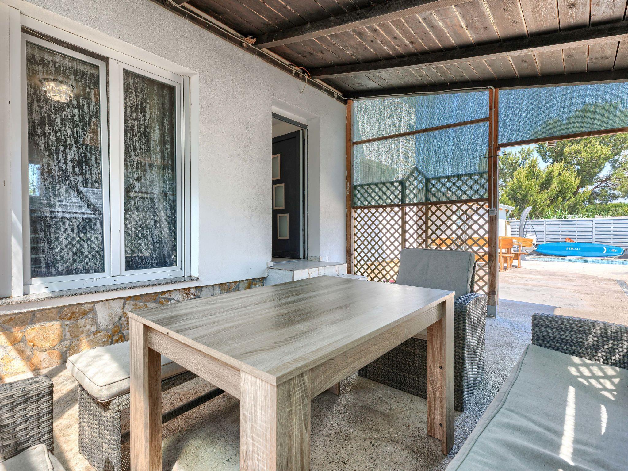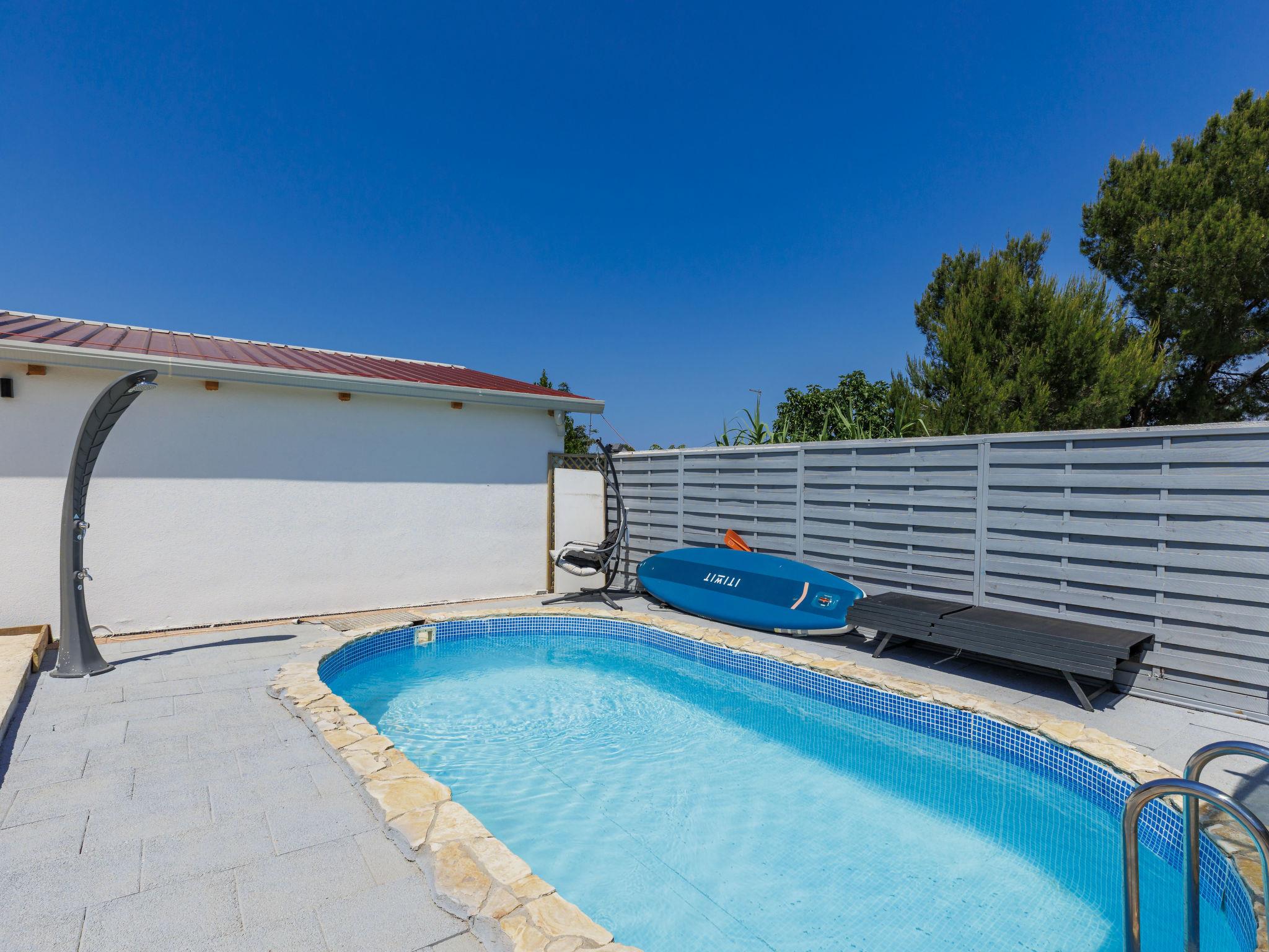 2-family house "Sabo". 1.7 km from the centre of Peroj, 3 km from the centre of Fažana, 8 km from the centre of Vodnjan, in a sunny position, 300 m from the sea, 300 m from the beach. For shared use: property 150 m2 (fenced), swimming pool angular (5 x 3 m, depth 140 cm, seasonal availability: 01.Apr. - 01.Nov.) with internal staircase. Outdoor shower. In the house: internet access. Motor access (500 m via unmade road). Parking at the house on the premises. Shop 1 km, supermarket 3 km, restaurant 1.5 km, bus stop 900 m, pebble beach 1 km, rocky beach 300 m. Please note: the owner lives on the same property. The owner has a dog.