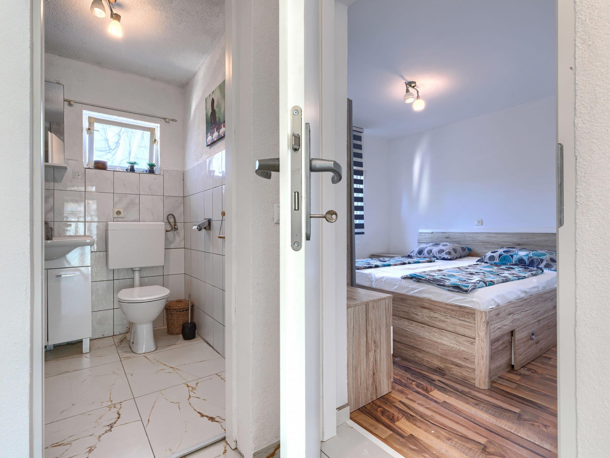 "Sabo 2", 3-room apartment 50 m2, on the ground floor. Living/dining room with 1 sofabed (160 cm, length 200 cm), satellite TV (flat screen), air conditioning. Exit to the terrace. 2 rooms, each room with 1 french bed (160 cm, length 200 cm). Open kitchen (oven, dishwasher, 4 ceramic glass hob hotplates, toaster, kettle, freezer, electric coffee machine). Shower/WC. No heating option. Terrace 15 m2. Facilities: washing machine. Internet (WiFi, free). Maximum 3 pets/ dogs allowed.