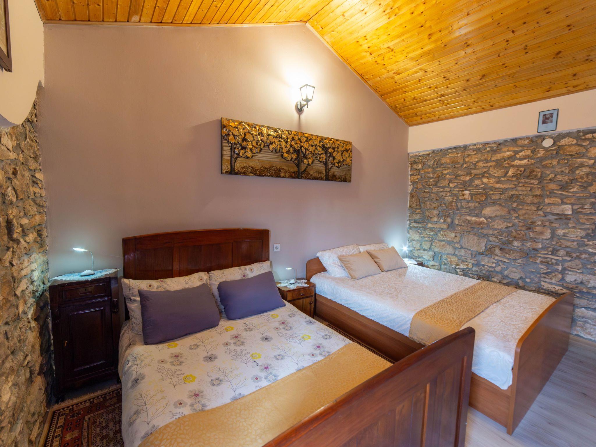 The house has been renovated and is on one level. A small staircase leads to the entrance of the mezzanine level. It has three bedrooms: one large with two double beds and two with one double bed each (bed size 160x190cm). The kitchen-dining room is rustic and comfortably furnished. It has a dining table, a fireplace, a TV with satellite channels, a kitchen with a gas and electric cooker, an oven, a coffee machine, a toaster, a microwave and a refrigerator. The bathroom is equipped with a shower cubicle. The house is air-conditioned and offers free Wi-Fi internet access. There is a washing machine.