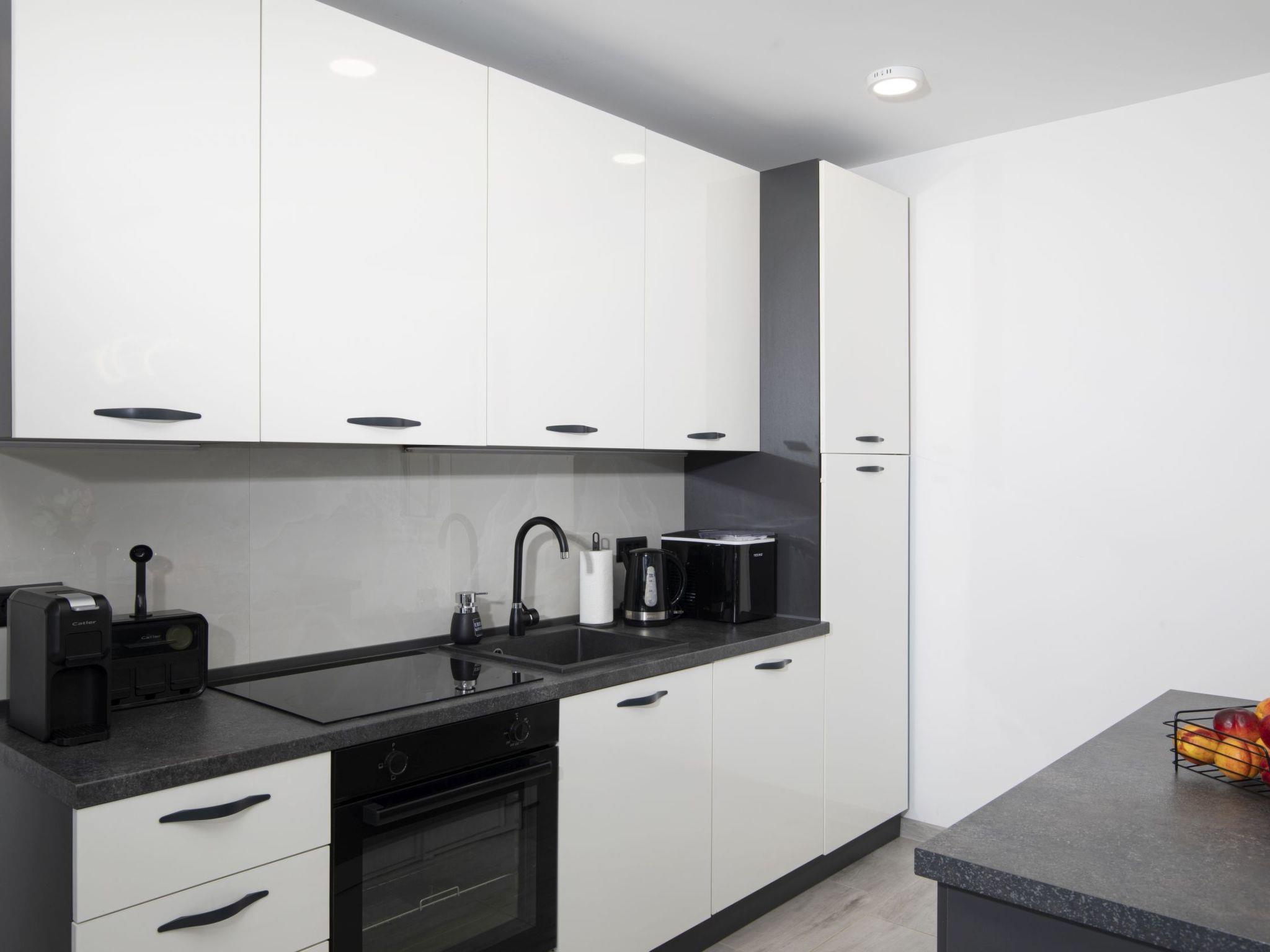 The kitchen is fully equipped with everything you need, including an espresso machine, coffee capsules, a microwave, a toaster, a stove, and an ice maker.