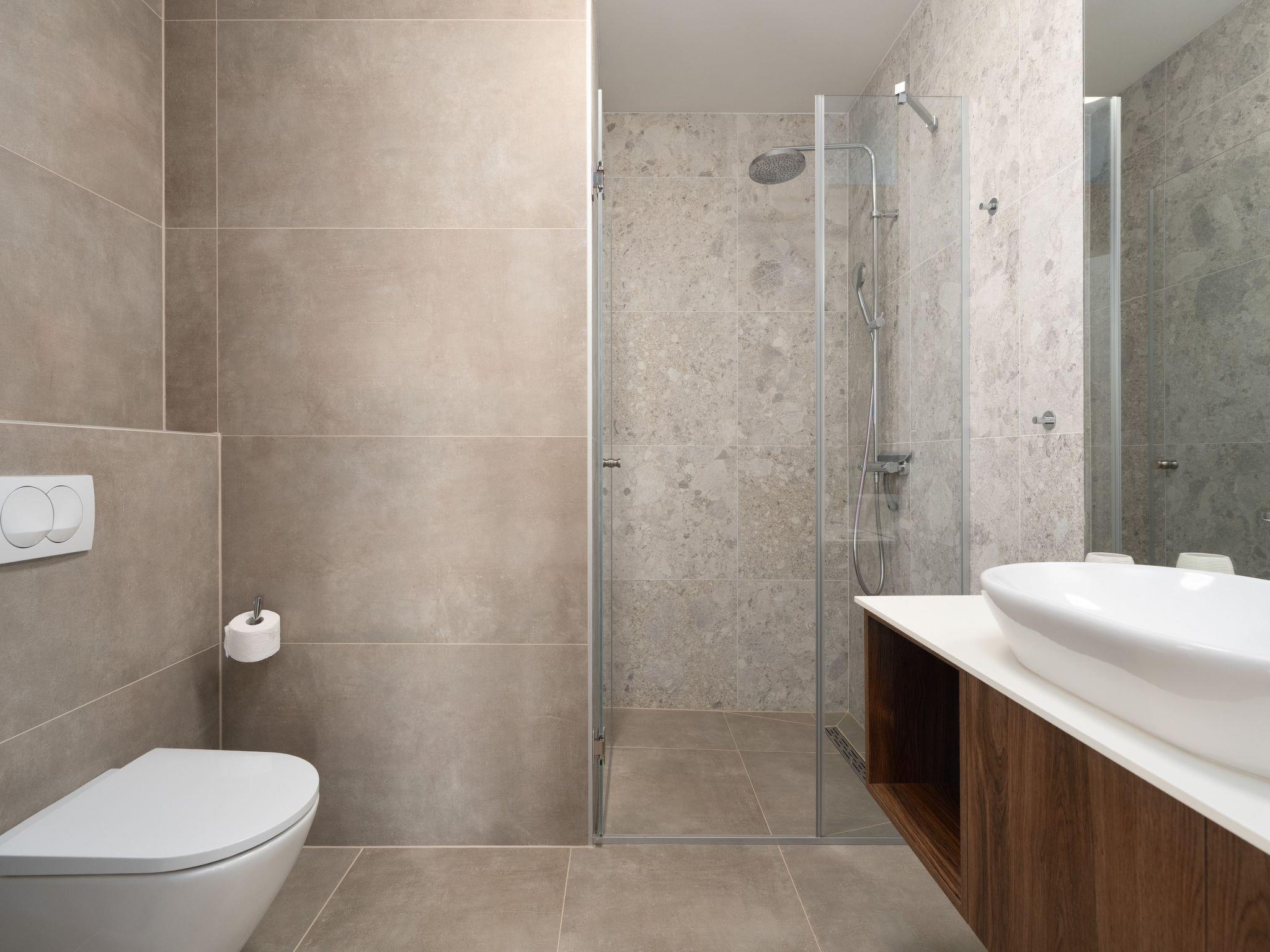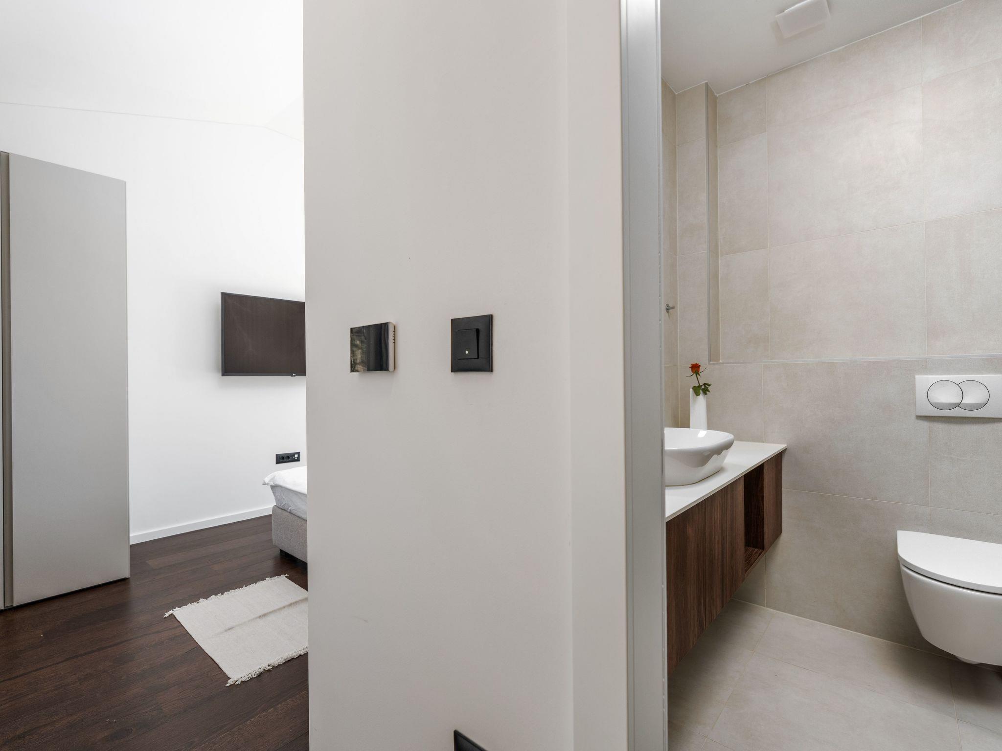 Outside, true relaxation awaits you on a fully fenced plot of 849 m2 on the edge of the forest. The 40 m2 pool with the option of heating on request, sun loungers for relaxing hours, a well-tended lawn, a covered terrace with barbecue by the pool and 2 parking spaces complete the offer. Here your children can play carefree in a safe environment.