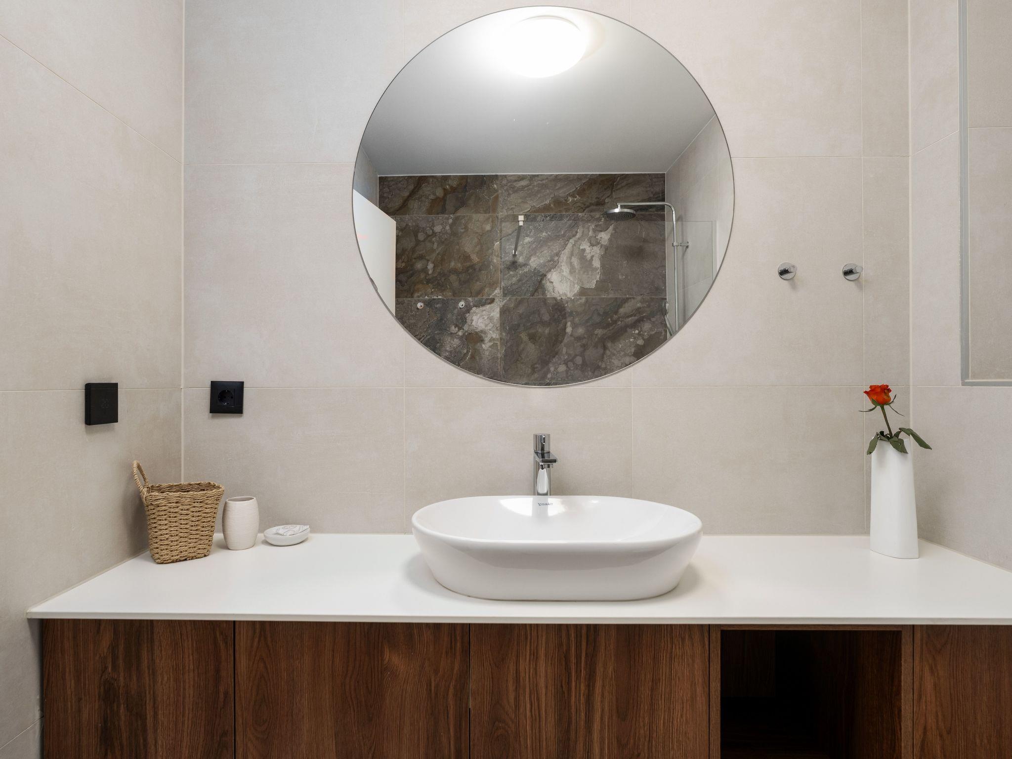 The interior of Villa Casa Venus leaves nothing to be desired. On a generous living area of 160 square metres, spread over two floors, there is a spacious living-dining room with direct access to the terrace, pool and garden, as well as a fully equipped kitchen on the ground floor. A bedroom with en suite bathroom and terrace access as well as a separate WC complete the space on offer. The upper floor accommodates two further spacious bedrooms, both with en suite bathrooms and breathtaking panoramic sea views. Air conditioning in all rooms ensures your comfort, complemented by strong Starlink internet.