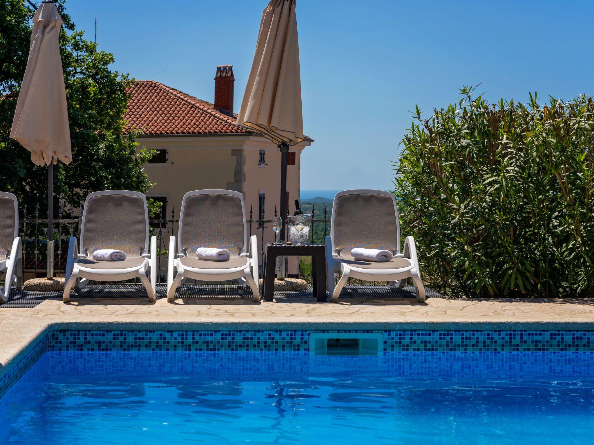Villa Bellavista Poletti is suitable for 6 people with a living space of 130m2. The house is equipped with modern furniture and consists of a living area with fully equipped kitchen, dining table, living room with beautiful panoramic sea views and access to a covered terrace and pool. Next to the living area is a bedroom with a double bed, en-suite bathroom and access to the terrace, as well as a separate WC. On the mezzanine floor there is a spacious bedroom with access to the terrace with garden furniture and beautiful views, a bathroom with shower/WC and a bedroom with separate beds and en-suite bathroom.