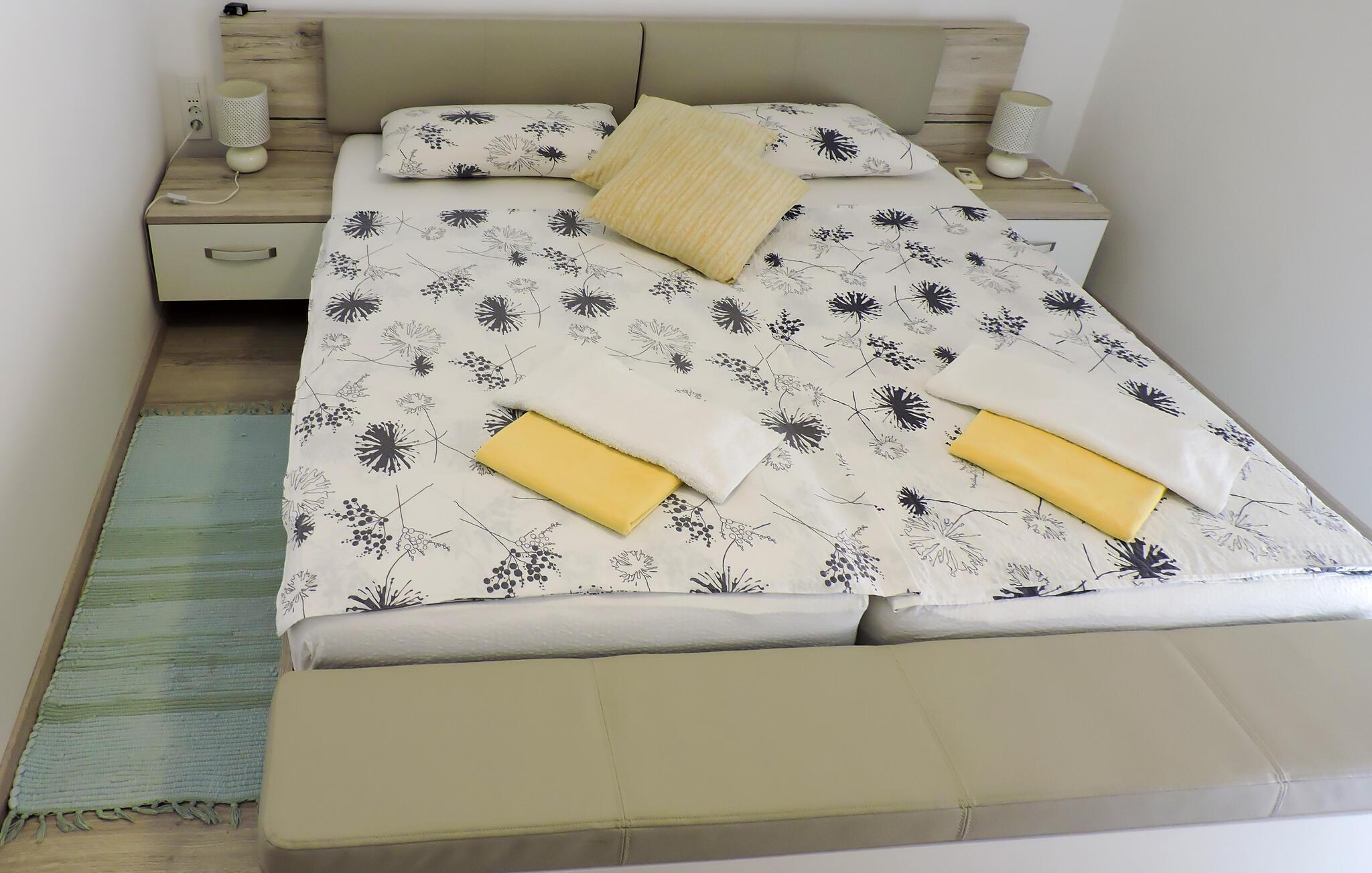 Denne lyse og indbydende lejlighed byder jer velkommen i fredelige omgivelser og lægger op til en afslappende ferie med familien. Tilbered kroatiske retter og find sammen omkring det indbydende spisebord. Planlæg jeres aktiviteter og nyd en hyggelig spilleaften efter en begivenhedsrig dag.