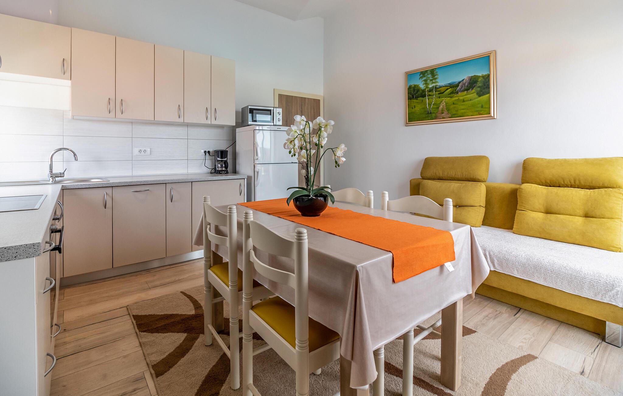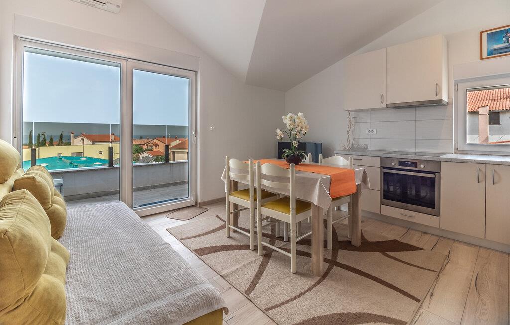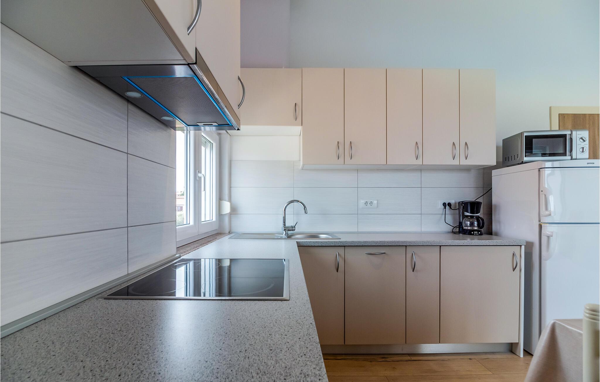 Oplev afslappende dage i denne moderne ferielejlighed med havudsigt og adgang til poolen. Denne velholdte lejlighed byder jer velkommen til fredelige omgivelser og inviterer jer til en afslappende pause fra hverdagen. Tilbered jeres yndlingsmåltider og slap af i den lyse opholdsstue. Planlæg jeres aktiviteter og nyd en hyggelig spilleaften efter en begivenhedsrig dag. Forfrisk jer i den fælles pool, lad batterierne op på en liggestol og tryl lækre retter frem på grillen. Tag en bådtur til Brijuni-øerne, slentr gennem de charmerende kystbyer Pula og Rovinj, og nyd regionale specialiteter i lokale taverner. Solbad på de idylliske strande i Valovine eller Punta Verudela og oplev skjulte bugter i kajak. Fordyb jer i regionens pulserende kultur, besøg markeder og lokale vingårde, og oplev kroatisk livsglæde på første hånd.