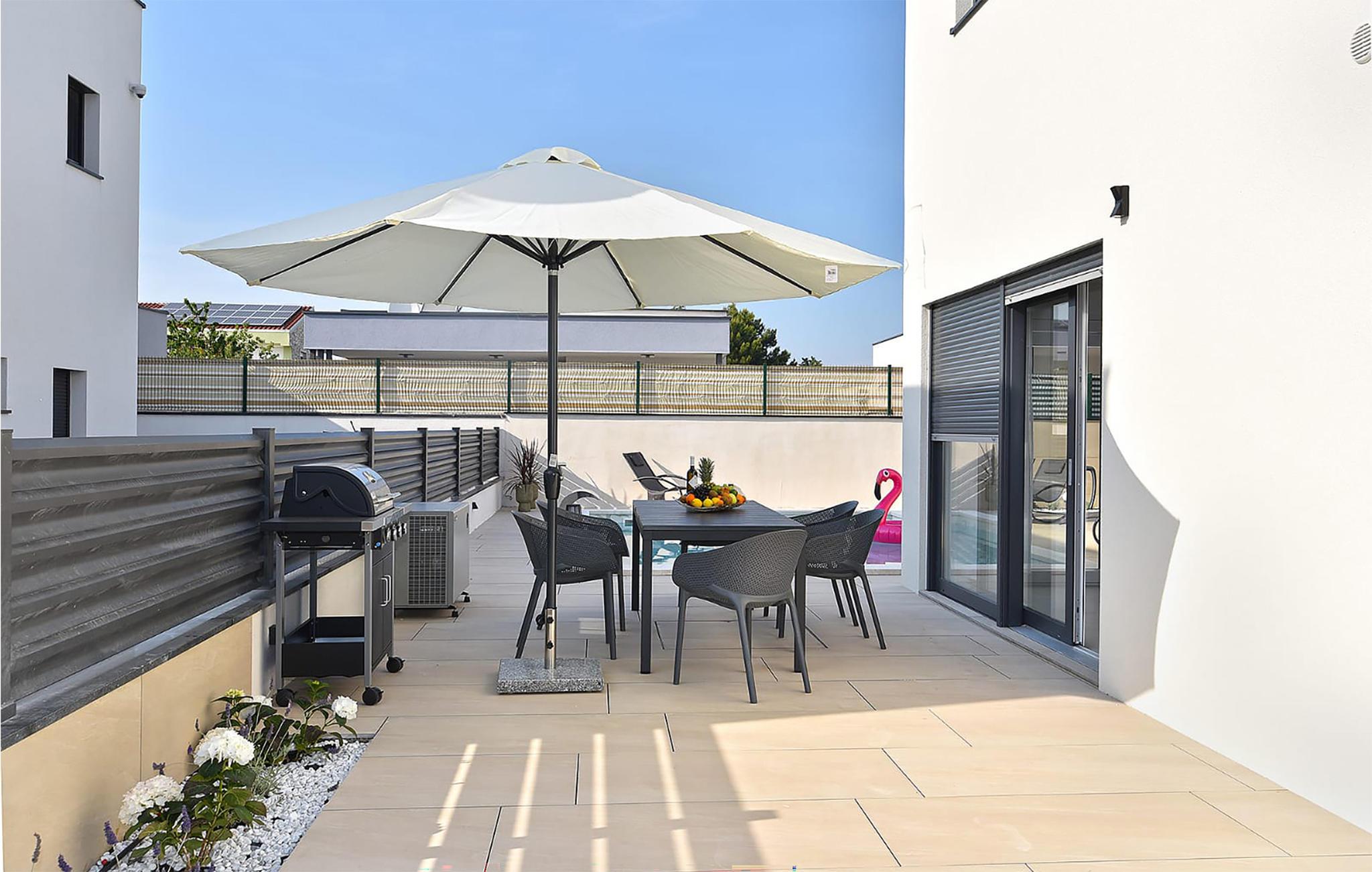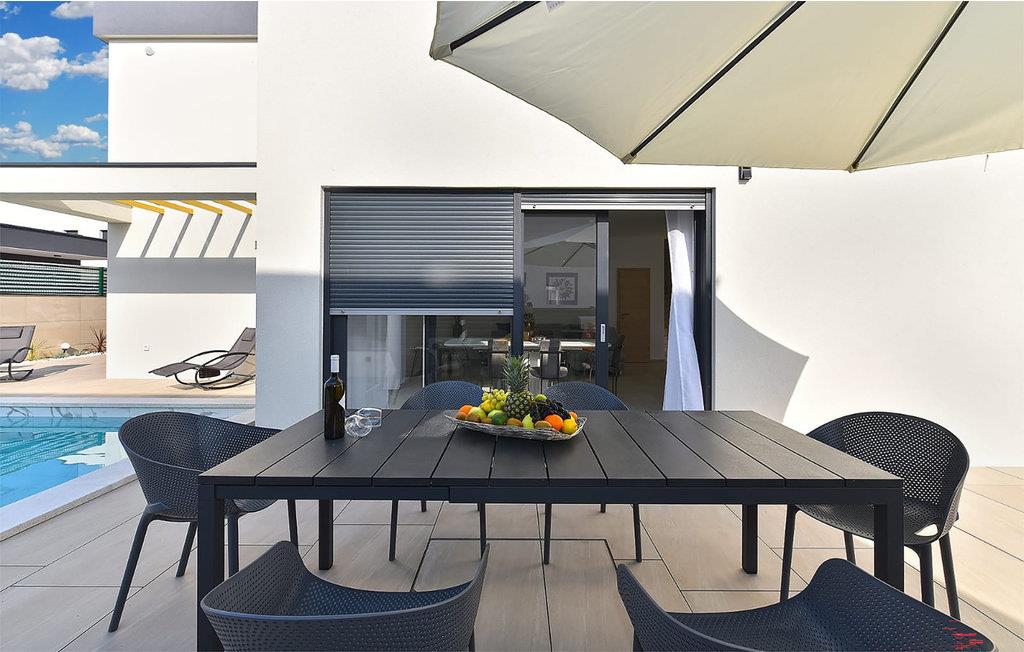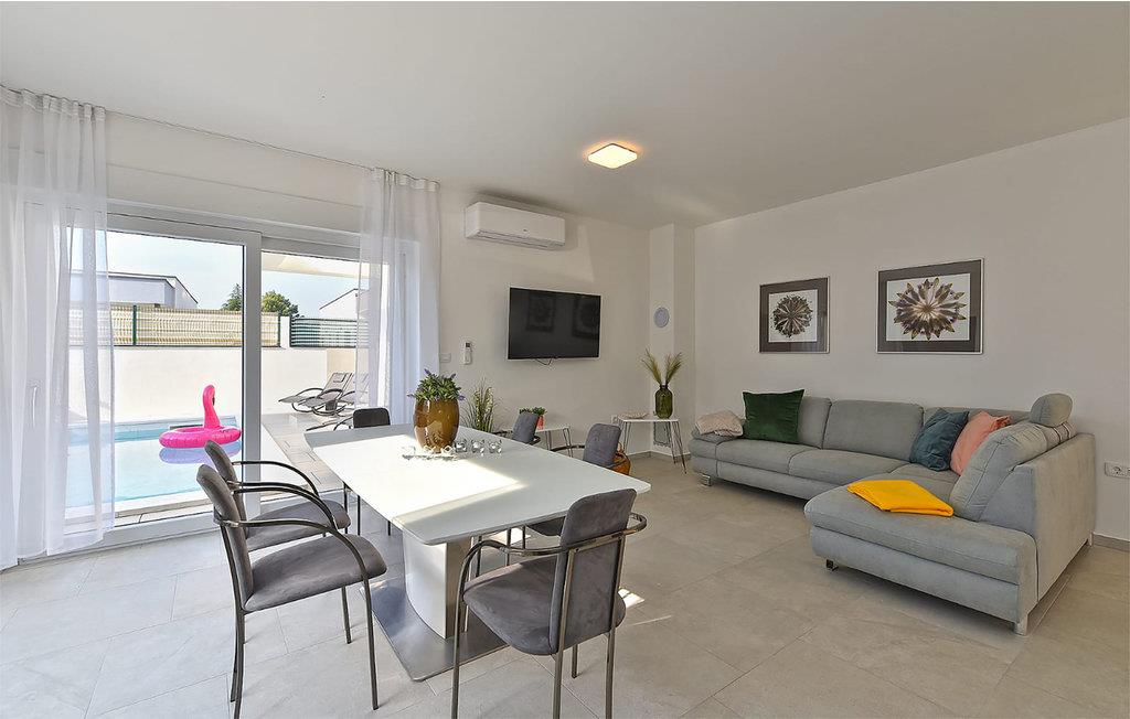 Dette moderne feriehus med pool ligger i centrum af Peroj. Tilbring en afslappende ferie med jeres familie i dette smukke feriehus. Det er et dobbelthus, hvor nabodelen også kan lejes afhængig af ledighed, og derfor er der intet, der står i vejen for en stor familieferie eller en ferie med familier, der er venner. Nyd de komfortable rum, hvor I kan føle jer hjemme, slap af i sofaen, mens I ser en film eller fremtryll lækre måltider i køkkenet. Drik jeres hvile på balkonen om morgenen eller kom sammen på terrassen til morgenmad og svøm derefter i poolen. Ud over poolen inviterer den store strand i Peroj jer til at bade og blive hængende. Her kan I tilbringe dejlige ferier med badning, afslapning, vandsport og gåture. Istrien er en ideel region for mange interessante steder, fra de maleriske istriske byer Svetvincenat, Zminj, Motovun til rigtige turistperler som Rovinj og Porec. Den historiske by Pula er mindre end en halv time væk. Her kan I besøge seværdigheder fra oldtiden til moderne tid. Gå ikke glip af Pula Amfiteater, som blev bygget under kejser Augustus og også er byens symbol. Brijuni National Park med sine mange smukke øer er også en rigtig oplevelse!