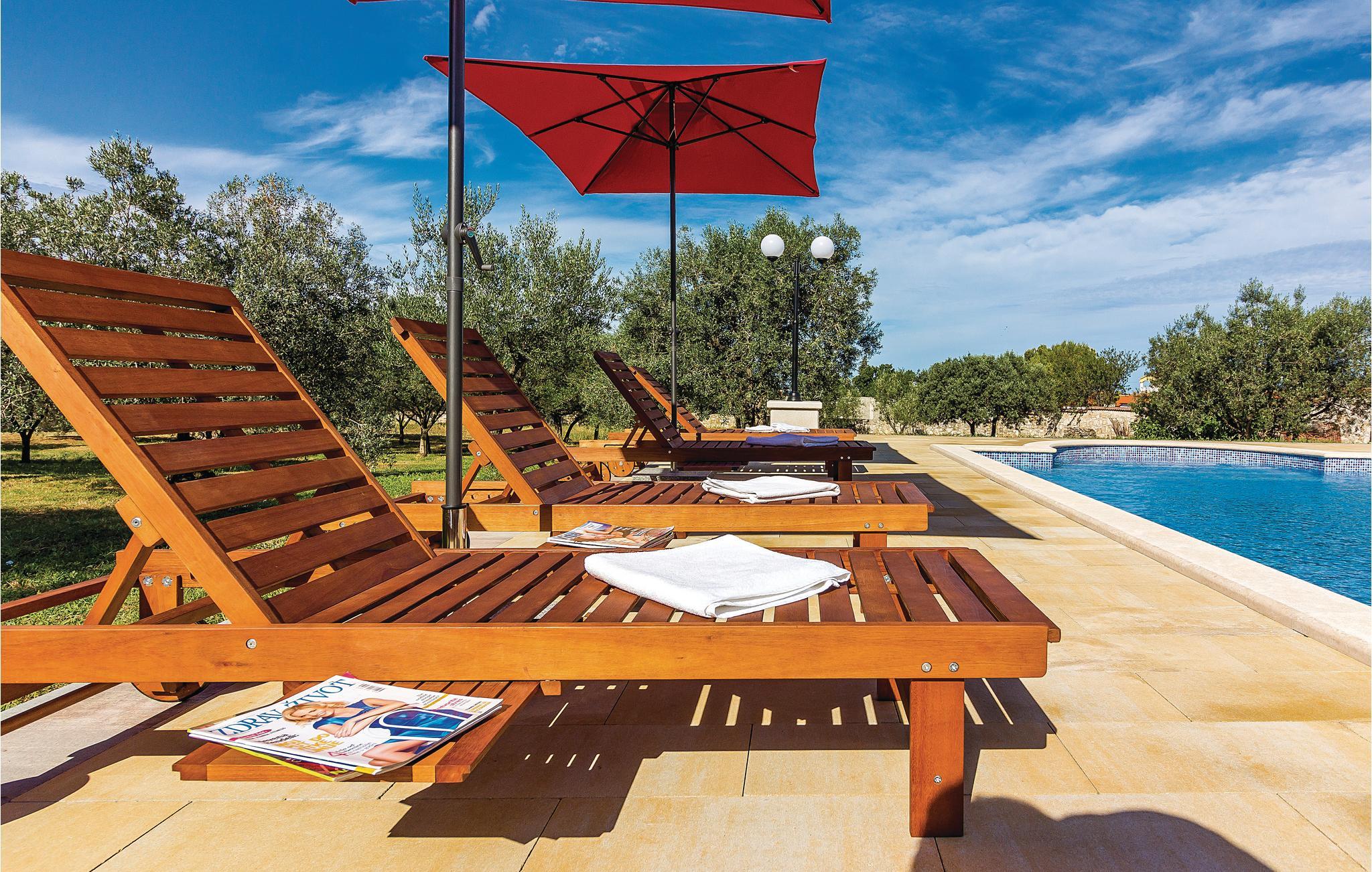 Hold jeres velfortjente og afslappede ferie i en af disse enkelt og indbydende indrettede ferielejligheder der ligger i en ejendom i rolige omgivelser. De mindre lejligheder CIF167 og CIF168 ligger i stueplan, det ene soveværelse i CIK167 er et gennemgangsrum. Den lidt større og mere komfortable lejlighed CIF577 strækker sig over første sal og har en skøn havudsigt fra terrassen. Gæsterne har fælles adgang til den store pool i haven. Besøg den pittoreske fiskerby Fazana, den romerske by Pula eller præsidentøen Brijuni. De sidste 80 m op til huset er en grusvej.