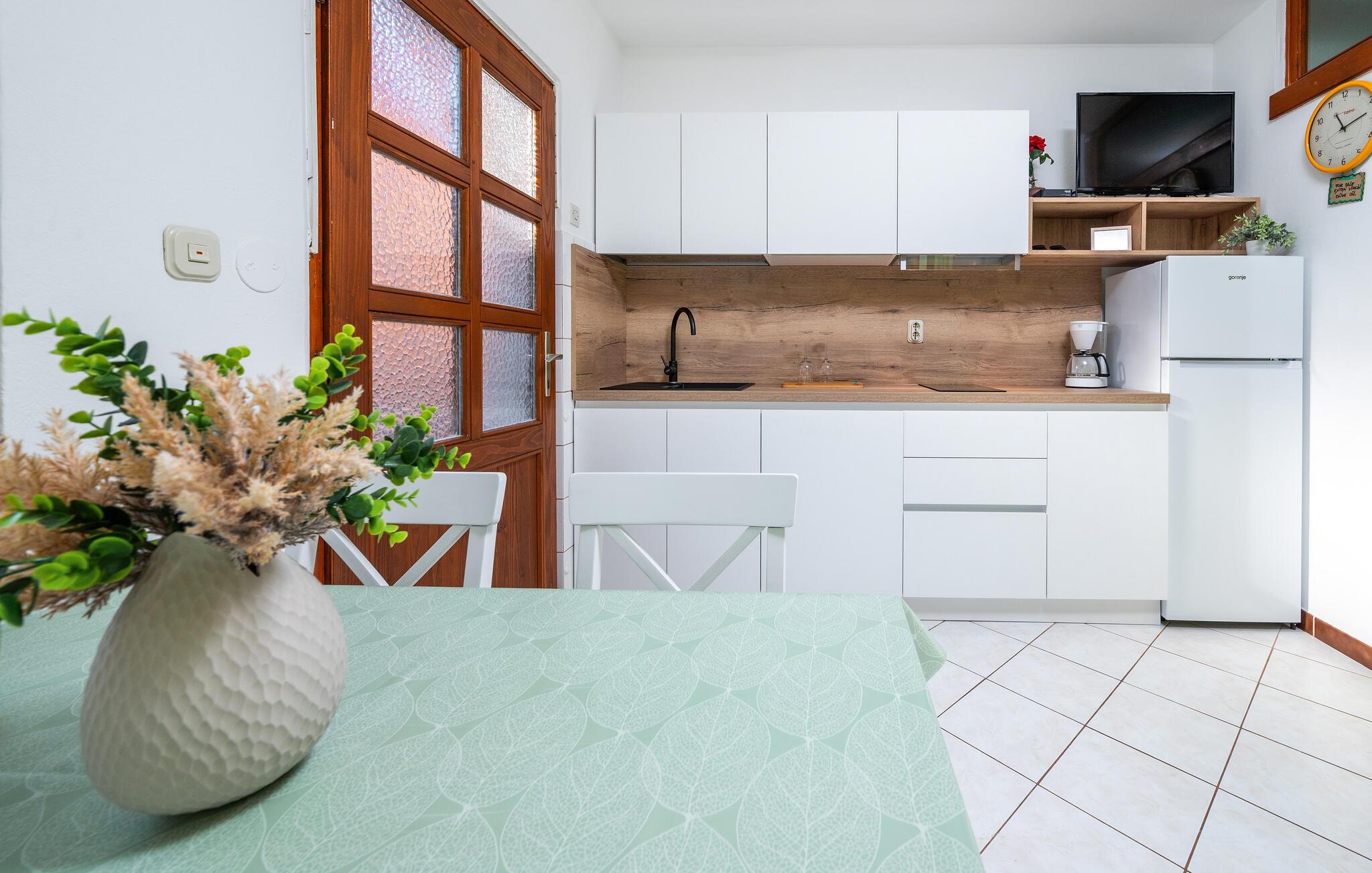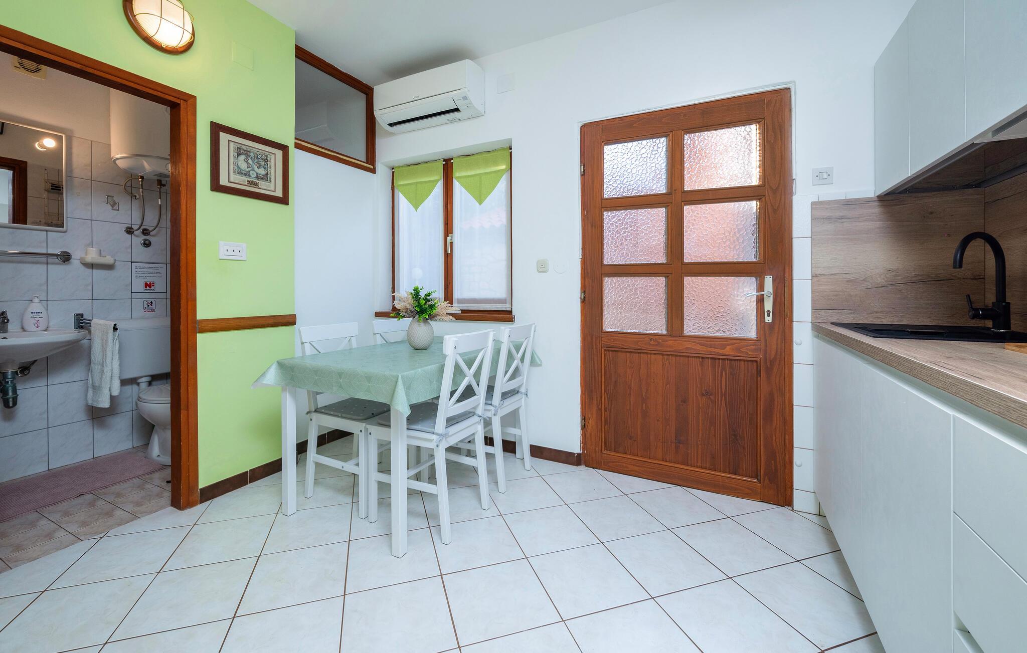 Hold jeres velfortjente og afslappede ferie i en af disse enkelt og indbydende indrettede ferielejligheder der ligger i en ejendom i rolige omgivelser. De mindre lejligheder CIF167 og CIF168 ligger i stueplan, det ene soveværelse i CIK167 er et gennemgangsrum. Den lidt større og mere komfortable lejlighed CIF577 strækker sig over første sal og har en skøn havudsigt fra terrassen. Gæsterne har fælles adgang til den store pool i haven. Besøg den pittoreske fiskerby Fazana, den romerske by Pula eller præsidentøen Brijuni. De sidste 80 m op til huset er en grusvej.
