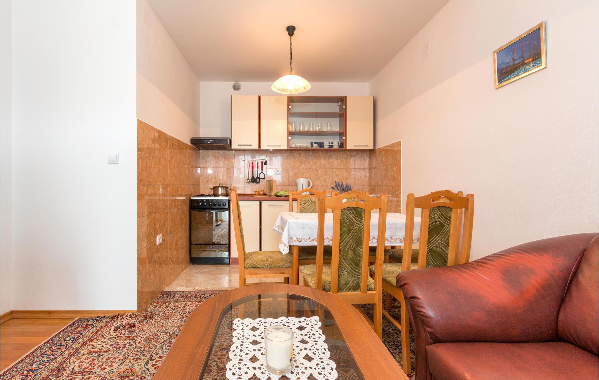 På første sal i en privat ejendom i den lille by Peroj, ligger denne enkelt og praktisk indrettede ferielejlighed. Den rummer tre soveværelser, et badeværelse og et køkken med stue. Nyd morgenkaffen på terrassen med en skøn udsigt over havet og omgivelserne. I bor ikke langt fra en hovedvej, en perfekt beliggenhed når I vil tage på tur i de smukke landskaber. Det tager kun få minutter at køre til stranden og havet. . Smut en tur til den nærliggende lille fiskerby Fazana, hvorfra der går både til den betagende naturskønne nationalpark Brijuni-øerne. Et must er også at spise lækre istriske specialiteter på et af de mange spisesteder, der også har fisk og skaldyr på menukortet.