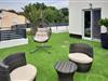 Oplev ren ferieafslapning på den overdækkede terrasse i stueetagen, på taget er der også en stor terrasse med en fantastisk udsigt over havet. Udenfor er der legeredskaber til børn samt dart og grill.