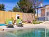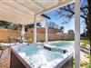Feriehuset ligger på en lukket grund med god plads til at slappe af og bade i den private pool. Slap af her på den overdækkede terrasse med et glas vin om aftenen, benyt spabadet eller tilbered lækre retter på grillen. Da grunden er indhegnet, er den oplagt til en ferie med et kæledyr.