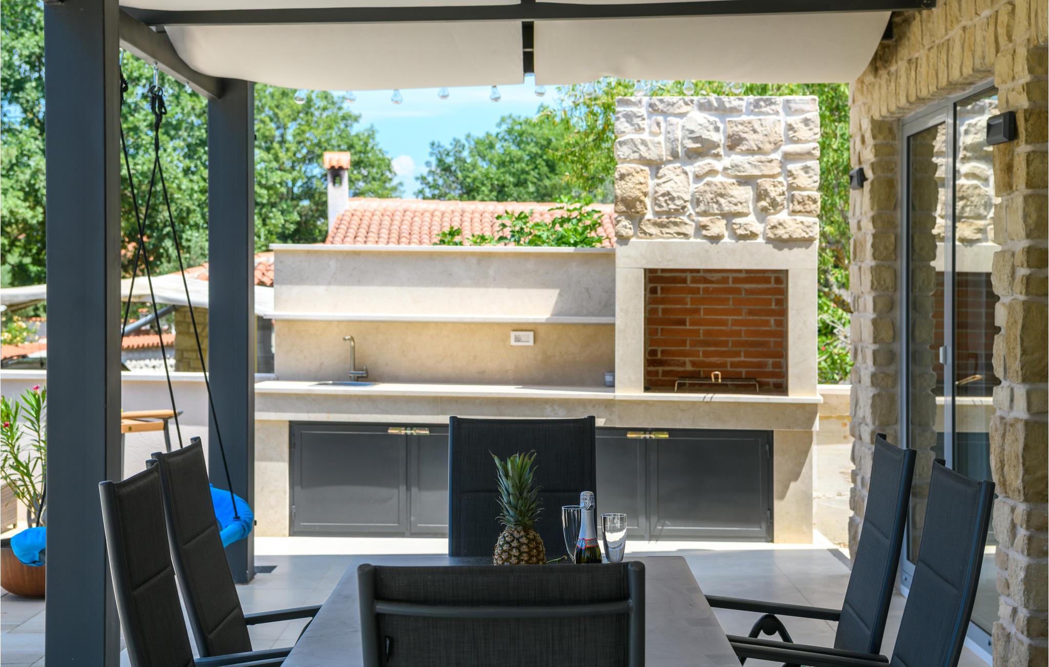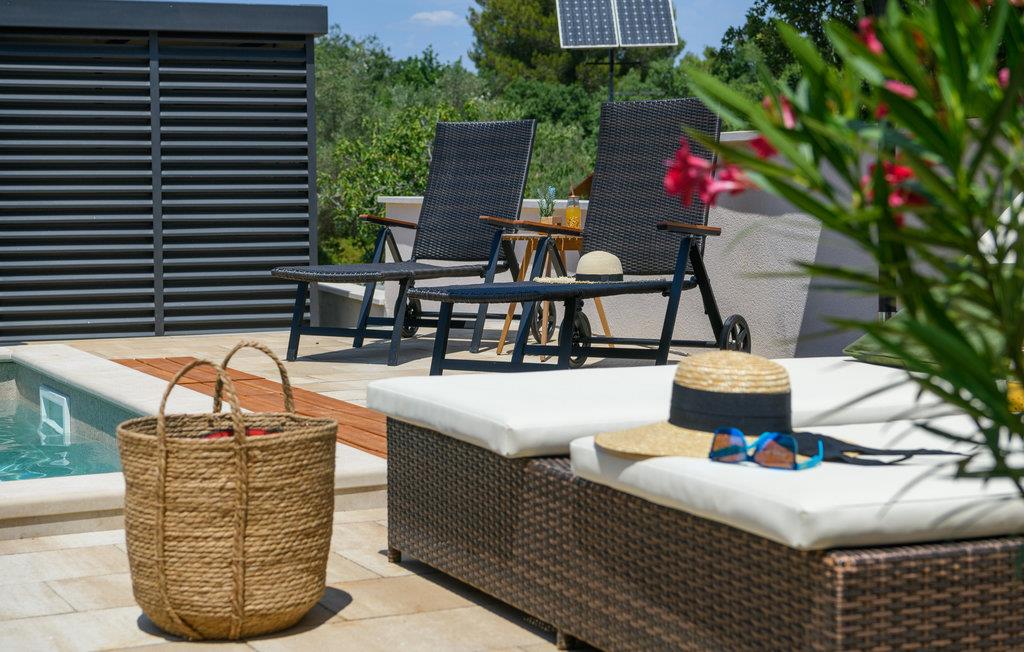 Her vil hele familien tilbringe en vidunderlig ferie. Det moderne feriehus tilbyder jer al den komfort, I kunne drømme om. Efter jeres afslappende nætter kan I træde direkte ud på terrassen og svømme de første baner i swimmingpoolen. Bagefter kan I lave jeres morgenkaffe i det skønne køkkenalrum og nyde den på terrassen. Oplev jeres indhegnede have fra liggestolen eller mens I leger. Her kan I simpelthen komme helt ned i gear. Udekøkkenet med grill giver jer den særlige madlavningsoplevelse, som alle kan deltage i.