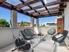 Der er også glimrende faciliteter udendørs med swimmingpool i haven og en stor terrasse på første sal, som I også kan nå via en udendørs trappe. Her kan I bare slappe af og læse en god bog, eller I kan nyde udsigten over havet, mens I træner. Om aftenen kan I lade en skøn feriedag gå på hæld med en fælles grillaften.