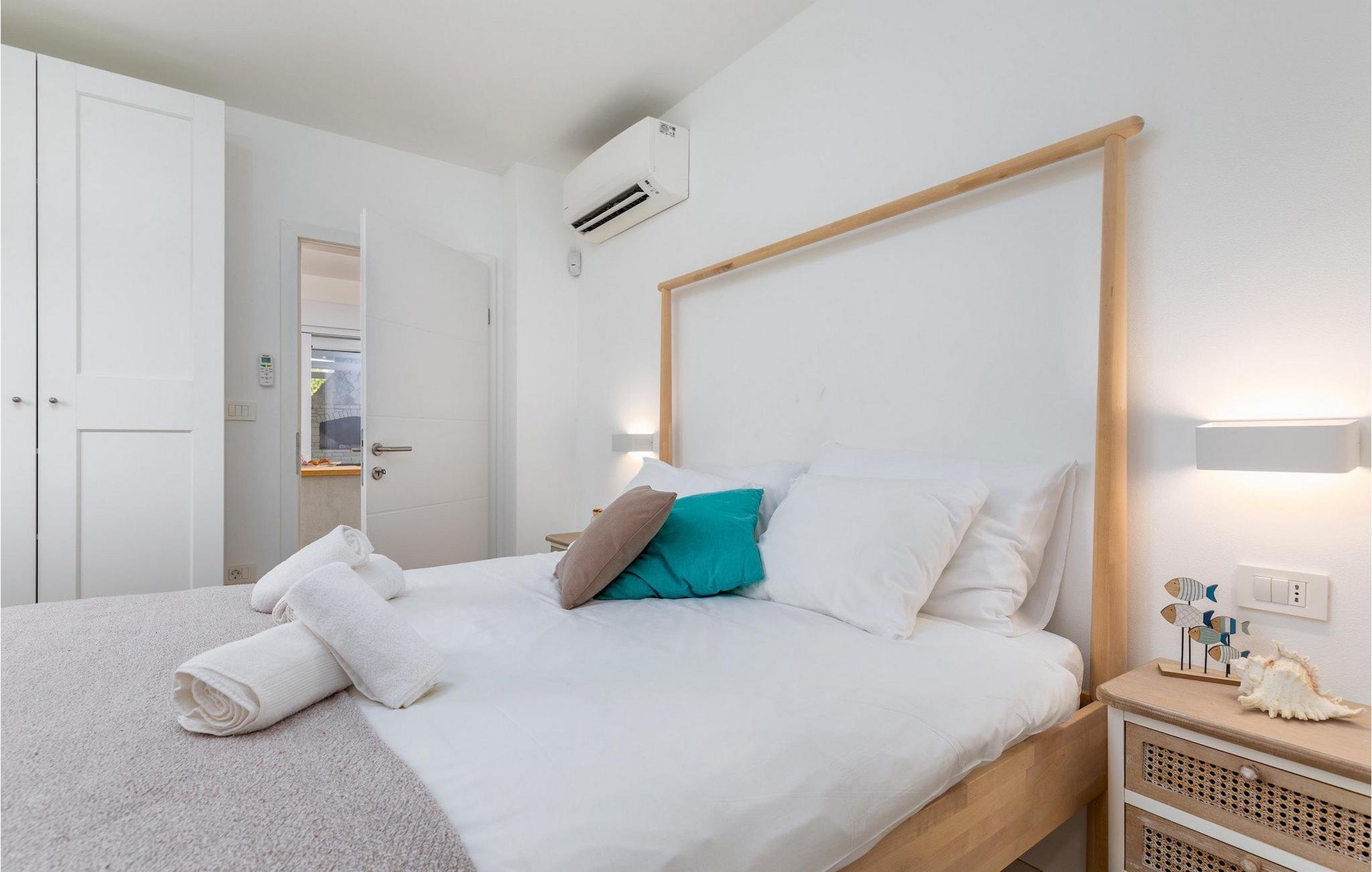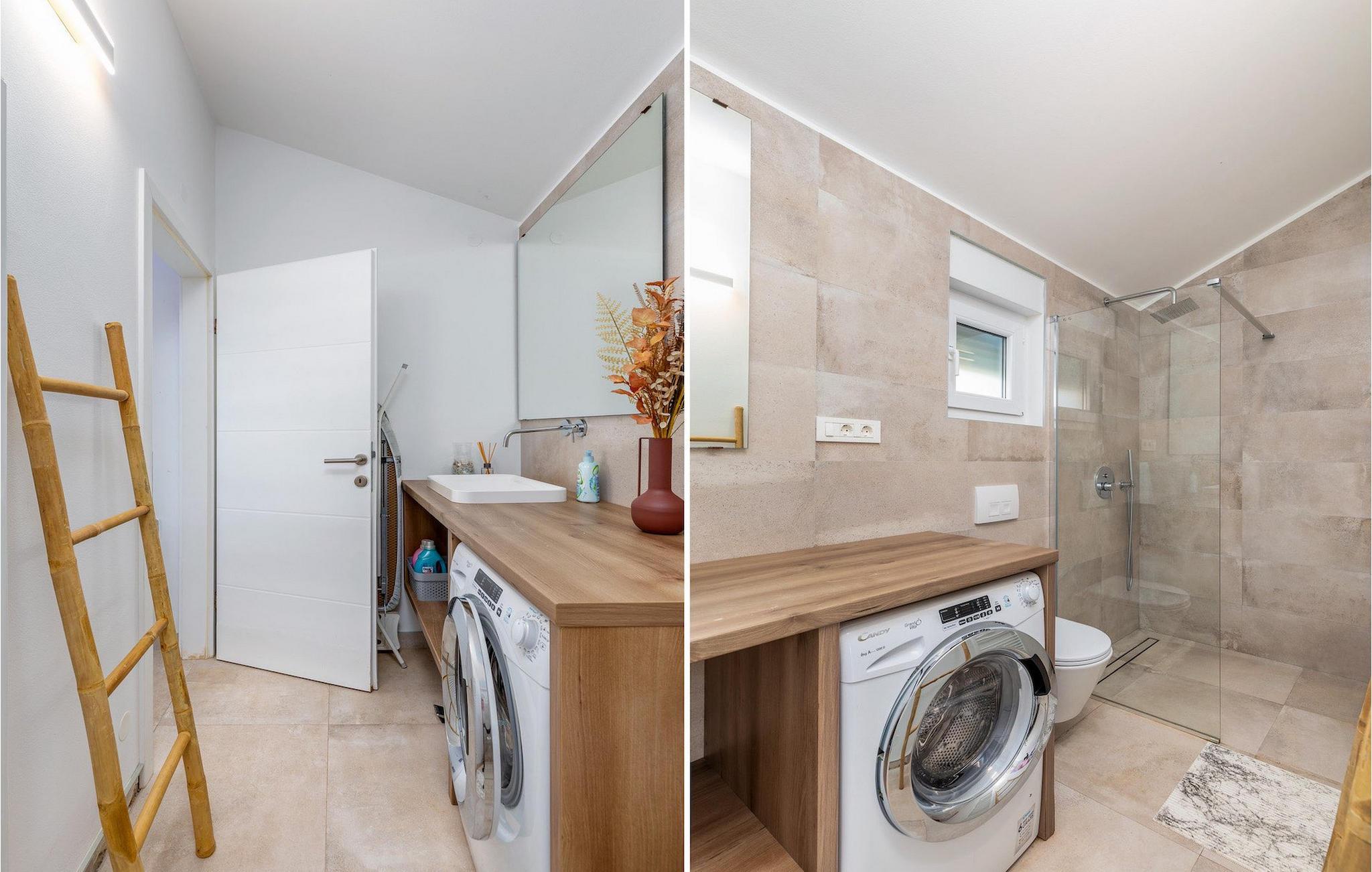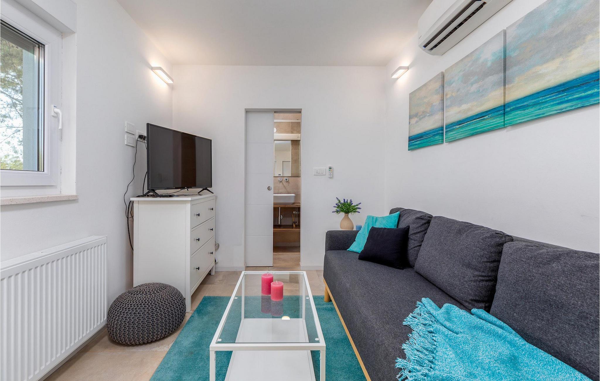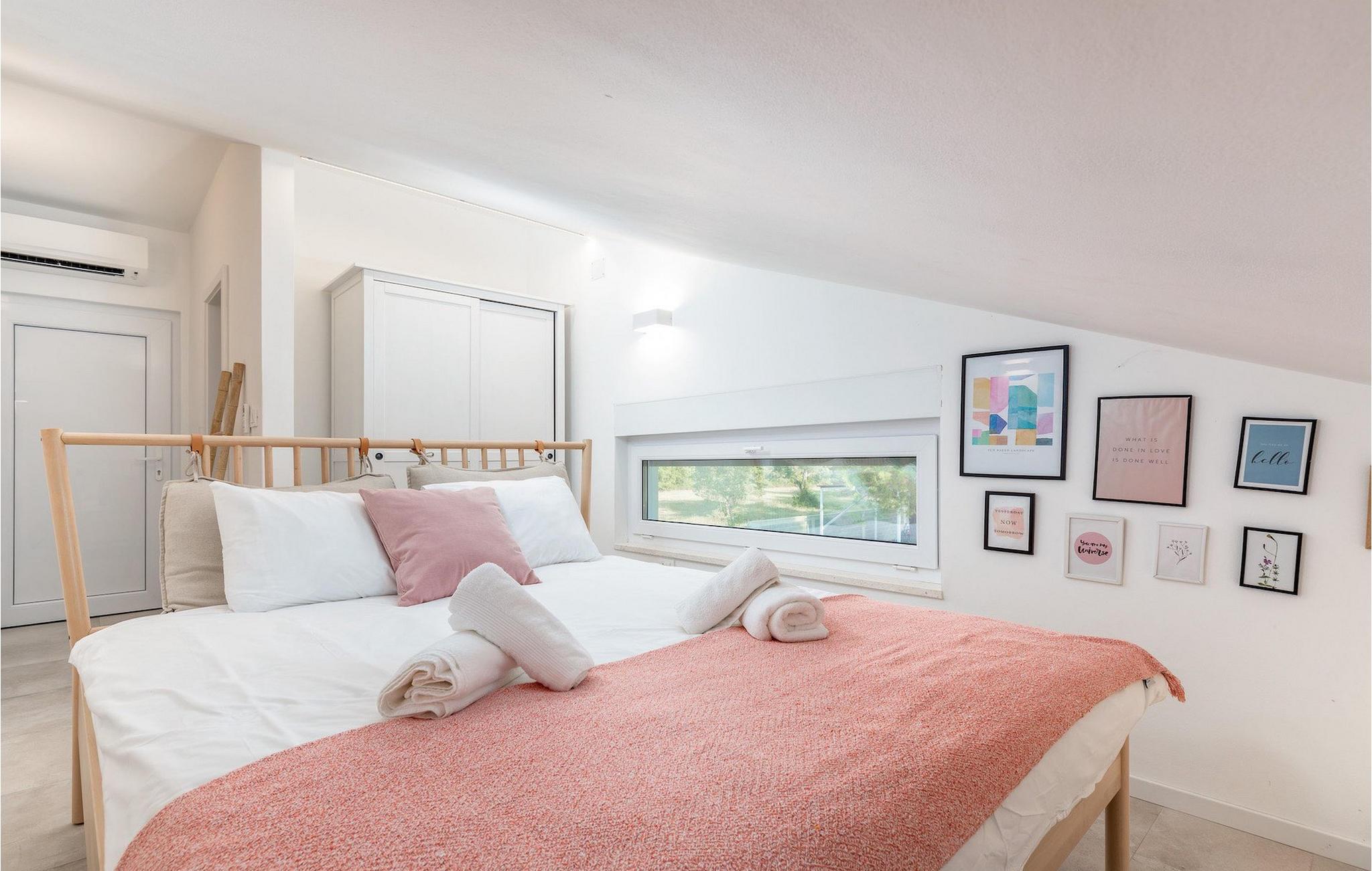Den smukke, moderne Villa Shimunelka ligger i den lille kystlandsby Peroj, kun få minutters kørsel fra Pula. Denne to-etagers villa er beliggende på en 4000m2 stor grund omgivet af fyrretræer. Den åbne stueetage består af et moderne, fuldt udstyret køkken, en hyggelig opholds- og spisestue, et badeværelse og et smukt dekoreret soveværelse med eget badeværelse. På øverste etage finder du to mere komfortable soveværelser med private badeværelser. Alle værelser har dobbeltseng og aircondition. Ved siden af huset er der et overdækket wellnessområde med jacuzzi og badeværelse. Fra wellnessområdet har du direkte adgang til den store græsplæne. På Villa Shimunelka er der cykler til rådighed, så du kan udforske og udforske omgivelserne. Det specielle ved denne villa er den menneskelige bordfodbold! Tilbring en underholdende tid med dine venner og familie, mens du spiller dette ekstraordinære spil. Selvom villaen ikke har en pool, er vi sikre på, at du vil nyde de nærliggende strande.