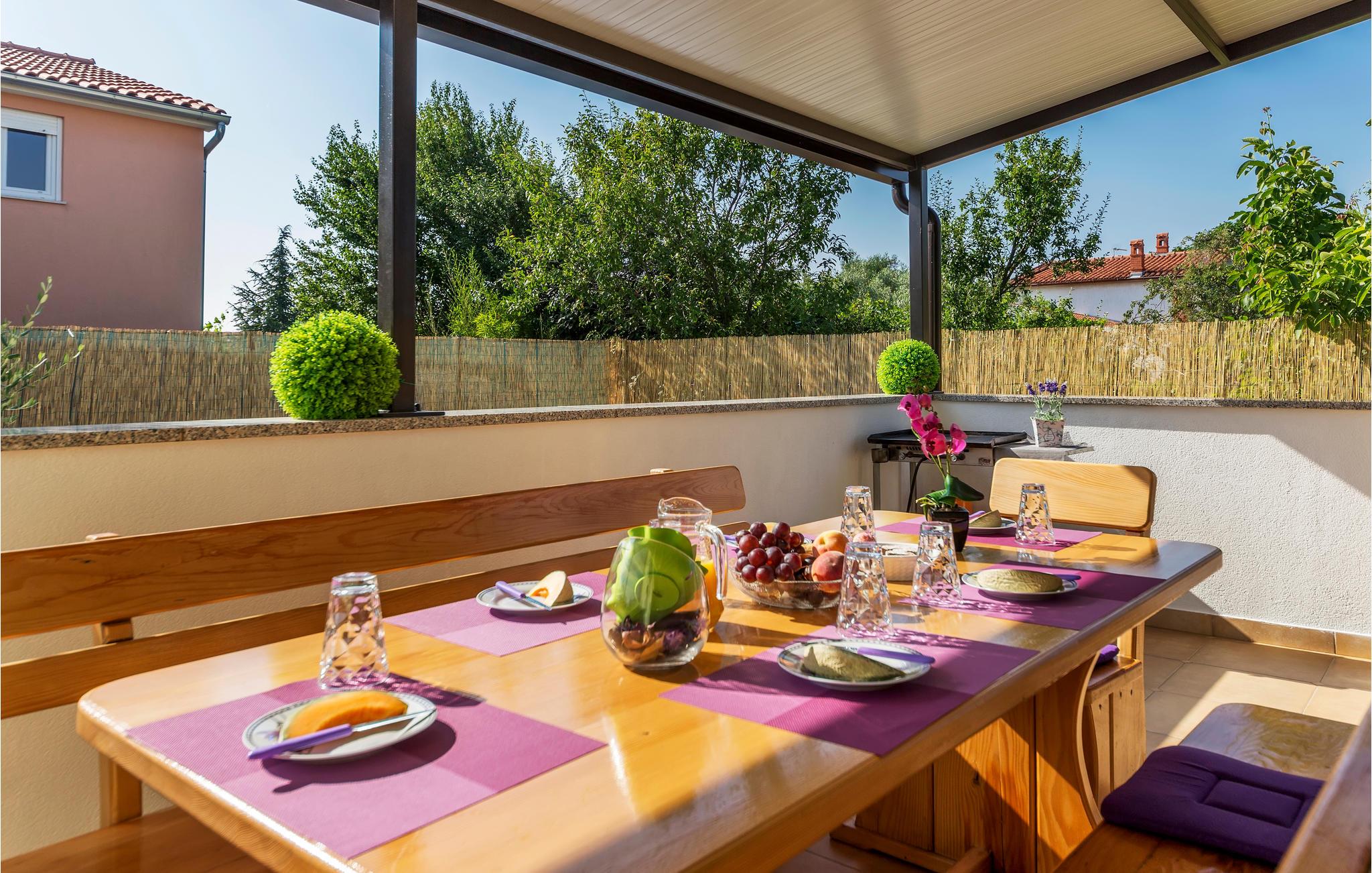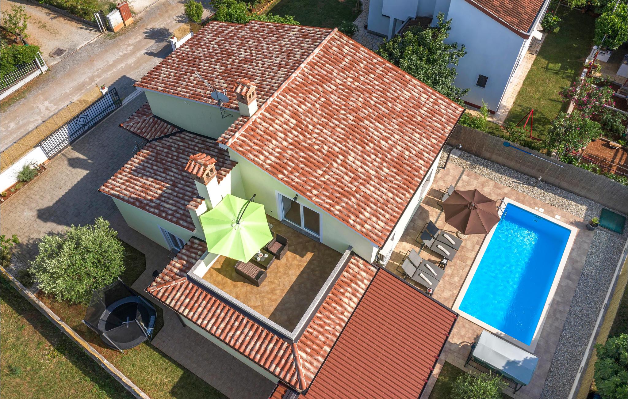 Dette feriehus med pool ligger i den lille og fredelige landsby Valbandon omgivet af familiehuse. Det består af to boenheder, der er forbundet med interne trapper og er derfor ideel til to familier eller vennegrupper, der holder ferie sammen. I stueetagen er der et køkken og spiseplads, stue og to soveværelser. På 1. sal er der yderligere to soveværelser og et lille køkken-spisestue. Ejendommen er helt indhegnet. Hver etage har en terrasse eller balkon, hvor du kan slappe af med en kop kaffe om morgenen. På varme sommerdage kan du tage en dukkert i poolen, solbade eller fordybe dig i en god bog.