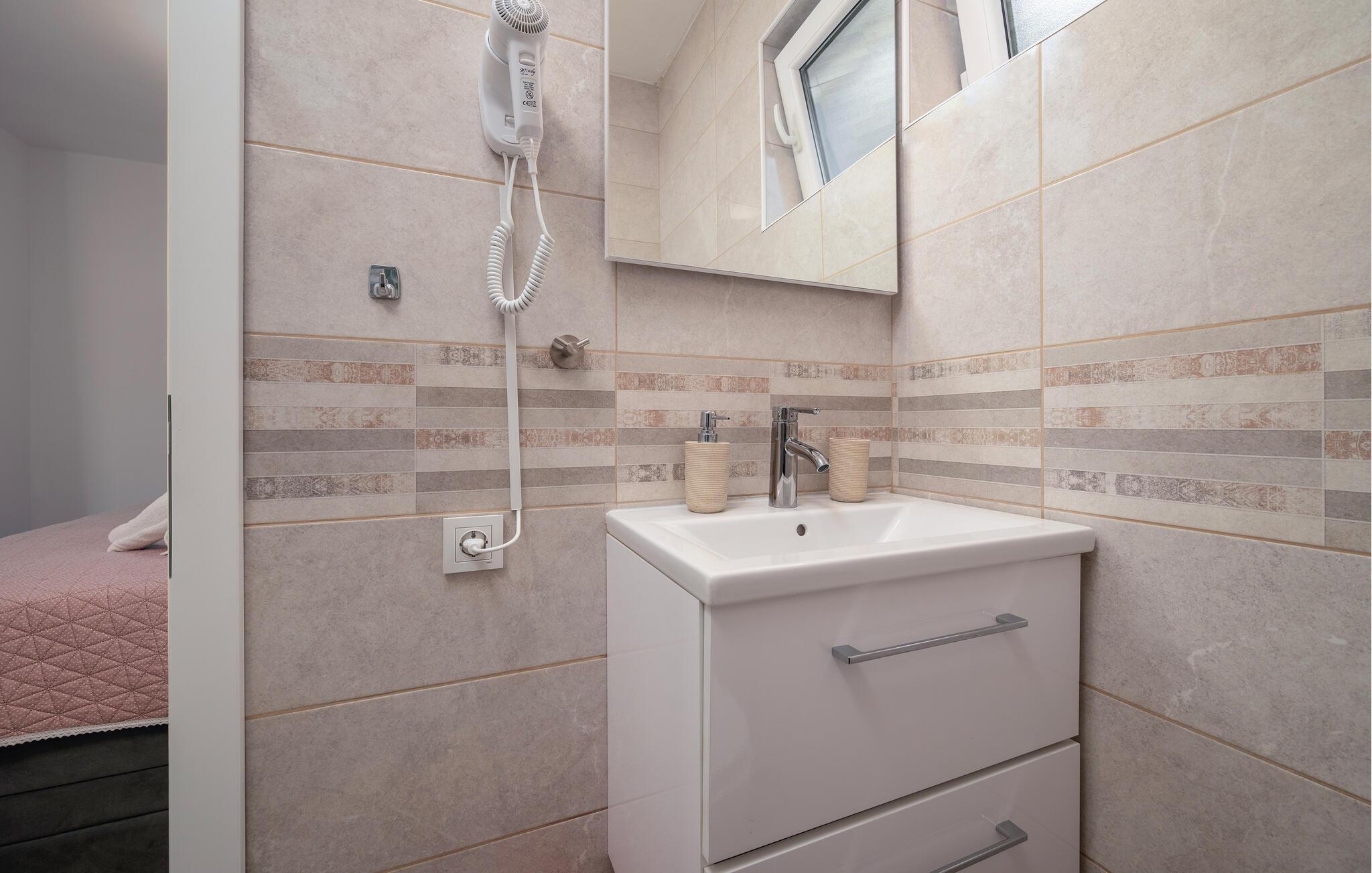 Badeværelse 4m2 (nr. 1) - WC. Varmt og koldt vand. Bruser