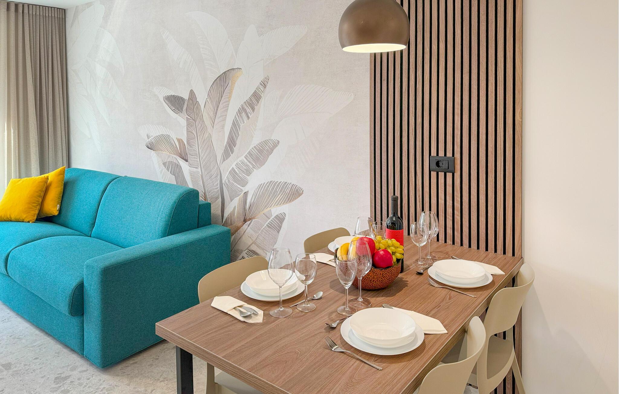 Tilbring en solrig ferie i denne moderne og stilfulde ferielejlighed med adgang til poolen.