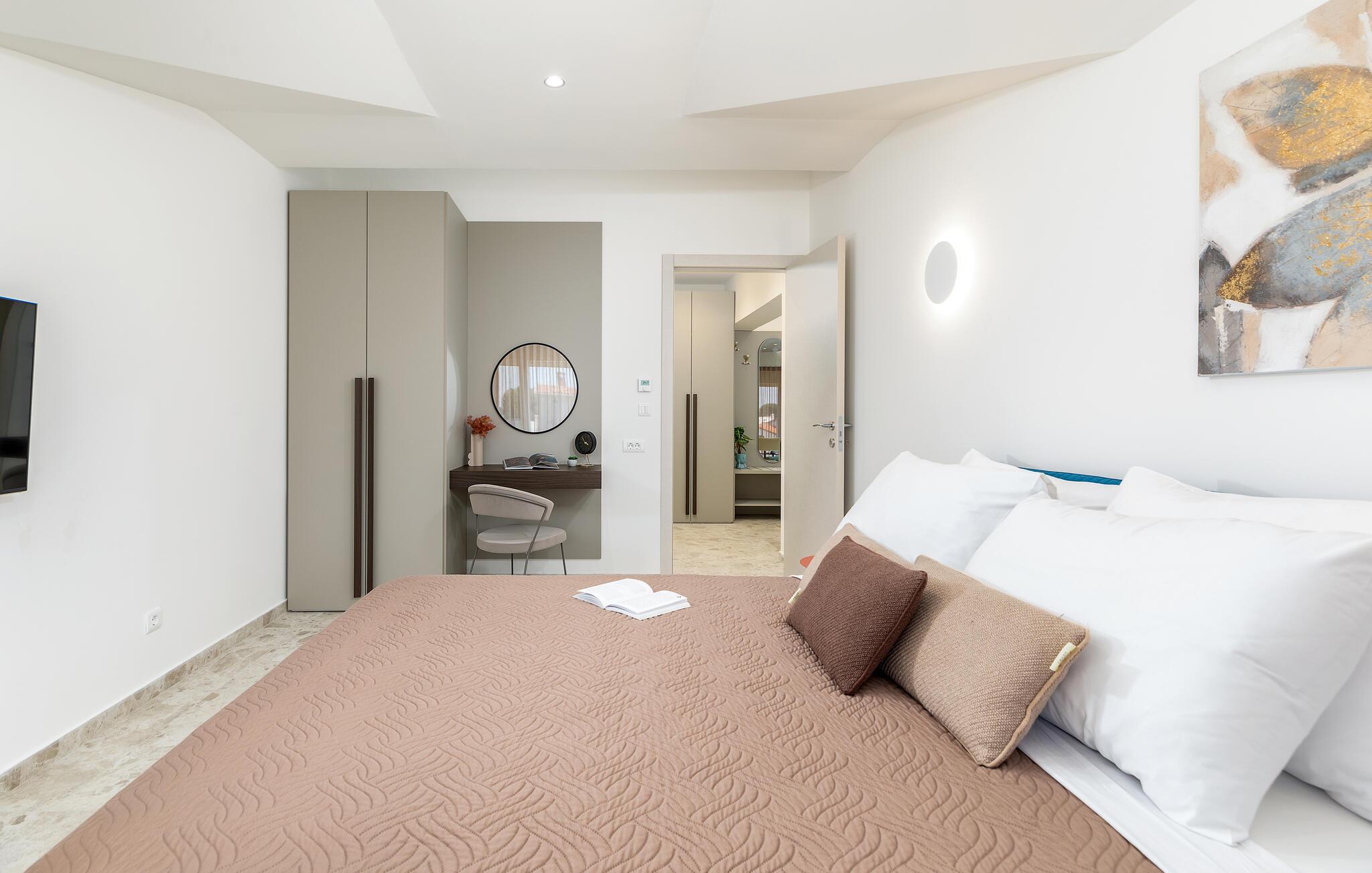 Forkæl jer selv med en komfortabel ferie i denne stilfulde ferielejlighed med adgang til poolen.